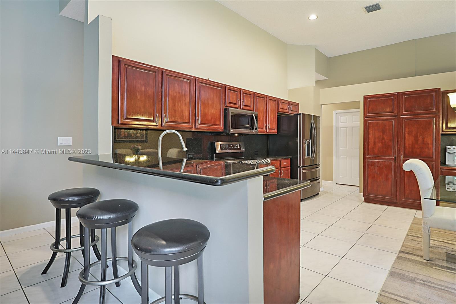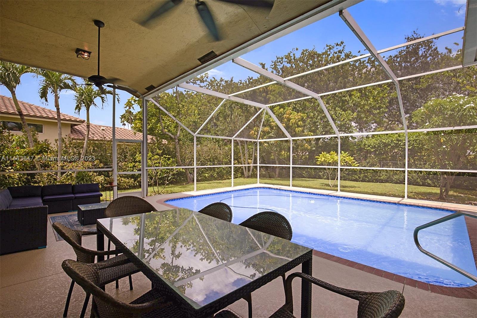 Located in the highly desired community of Kensington Commons this expansive 4/3 + office (that can be a 5th bedroom) & 3 car garage has the perfect triple spit floor plan. Once you enter through the double glass doors you are greeted by the natural light & views out the pool. Neutral tile throughout & new flooring in all bedrooms (2021), Large owners suite w/ volume ceiling, dual walk-in closets and en-suite bath attached. Large open kitchen w/ built-in pantry & breakfast bar over look the family room & breakfast nook. Sitting on a spacious 10,577 lot w/ fruit trees. New Roof & Gutters (2019), Freshly painted in & out (2021), AC (2018), Pool resurfaced/new tiles/ & color changing light (2023), WH (2023), Pool deck re-finished (2023). Great location walkable to schools, parks & much more!
