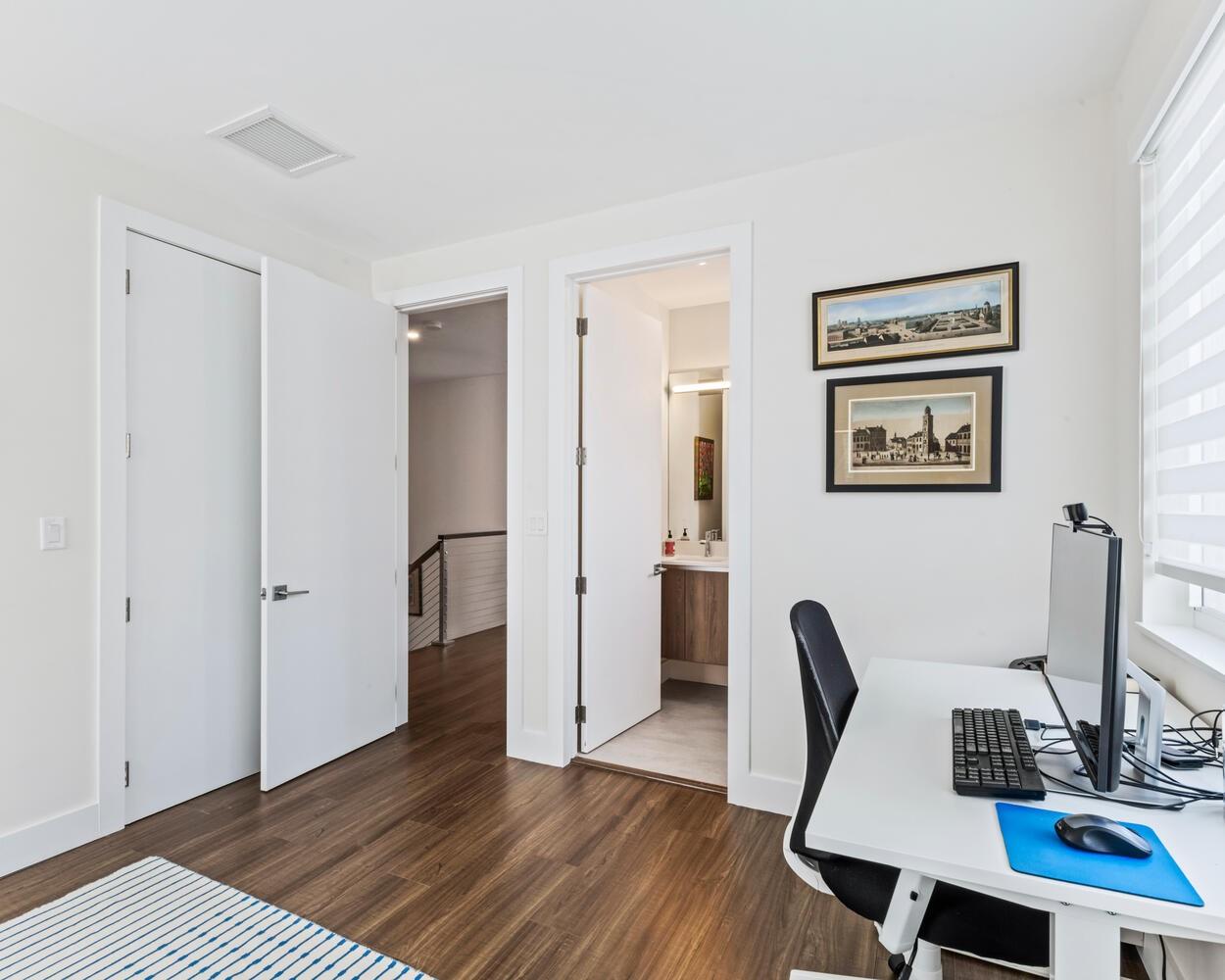 Modern 2 story fee simple townhouse with luxury design & finishes. European cabinets, quartz countertop, premium appliances, porcelain tile, 9' ceilings. Open floor plan overlooking pool & garden-fantastic for entertaining. 2nd floor Primary Suite, with flush shower, dual sinks, free standing tub. All bedrooms are en-suite with walk-in closets designed by California Closets. Loft area/den. Window treatments throughout. Heated pool & completely fenced for privacy. First Showings begin 9/12/2023.