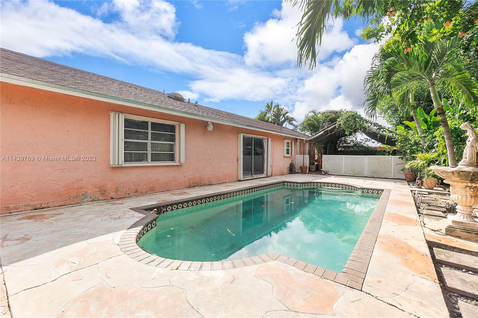 Rarely Available! Stunning 4/3 Home with Pool in Country Lakes Manor in Miami! With tiled flooring throughout, an expansive kitchen, and a converted garage turned bonus room with attached bathroom, this home has so much to offer! Enjoy the pool, fenced-in yard, ample outdoor space, and 2 bedrooms with private entrances for potential efficiencies/income. Includes an outdoor built-in shed for additional storage, and the community has a beautiful lake and playground.  Embrace this unique opportunity and book your showing today! (Seller states square footage is 2,500 sq ft. The information contained herein has been obtained through sources deemed reliable but cannot be guaranteed as to its accuracy. Any information of special interest should be obtained through independent verification.)