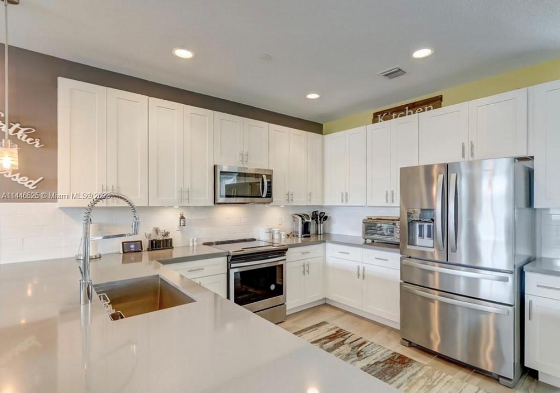 A rare find! Welcome home to this newer construction with over 2700 sf end unit!! 3 bedroom plus 3.5 baths and a 2 car garage fee simple townhome in sought after South Middle River located adjacent to the park. All impact doors and windows, designer and upgraded amenities throughout: wood plank porcelain floors, custom light fixture, paneled doors. Kitchen is a cooks dream with oversized snack bar, quartz counters, open concept and high end SS appliances. Guest bedroom is a ensuite with private bathroom. Primary suite has double door entrance and custom closet organizers. Downstairs is a 3rd bedroom ensuite that's perfect for live-work. Low HOA! Close to beaches/downtown. Photos were taken when Seller purchased.