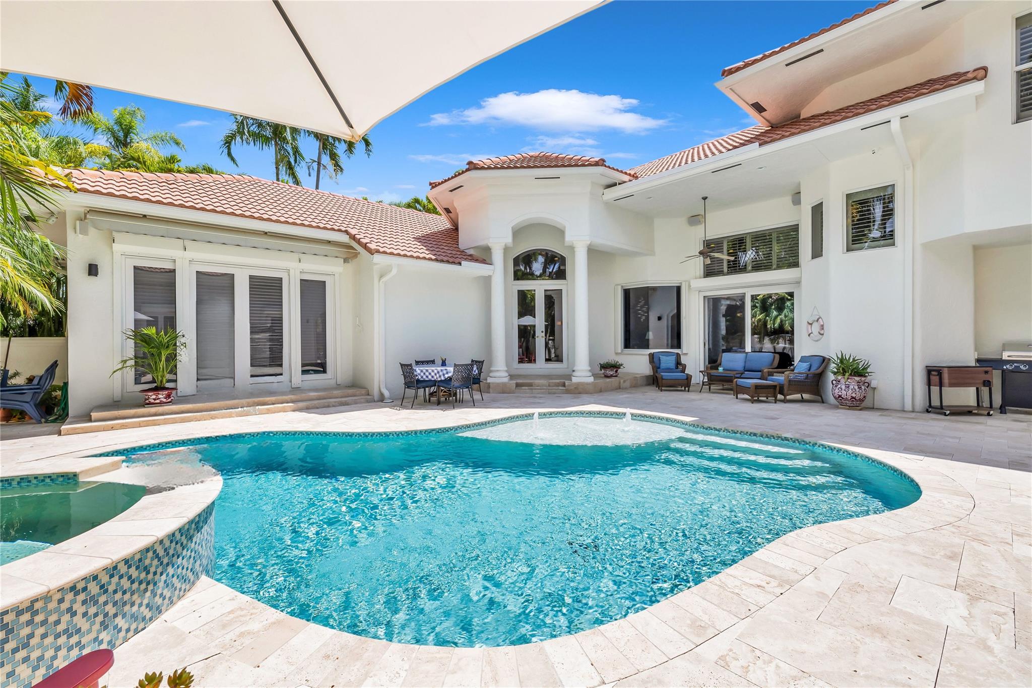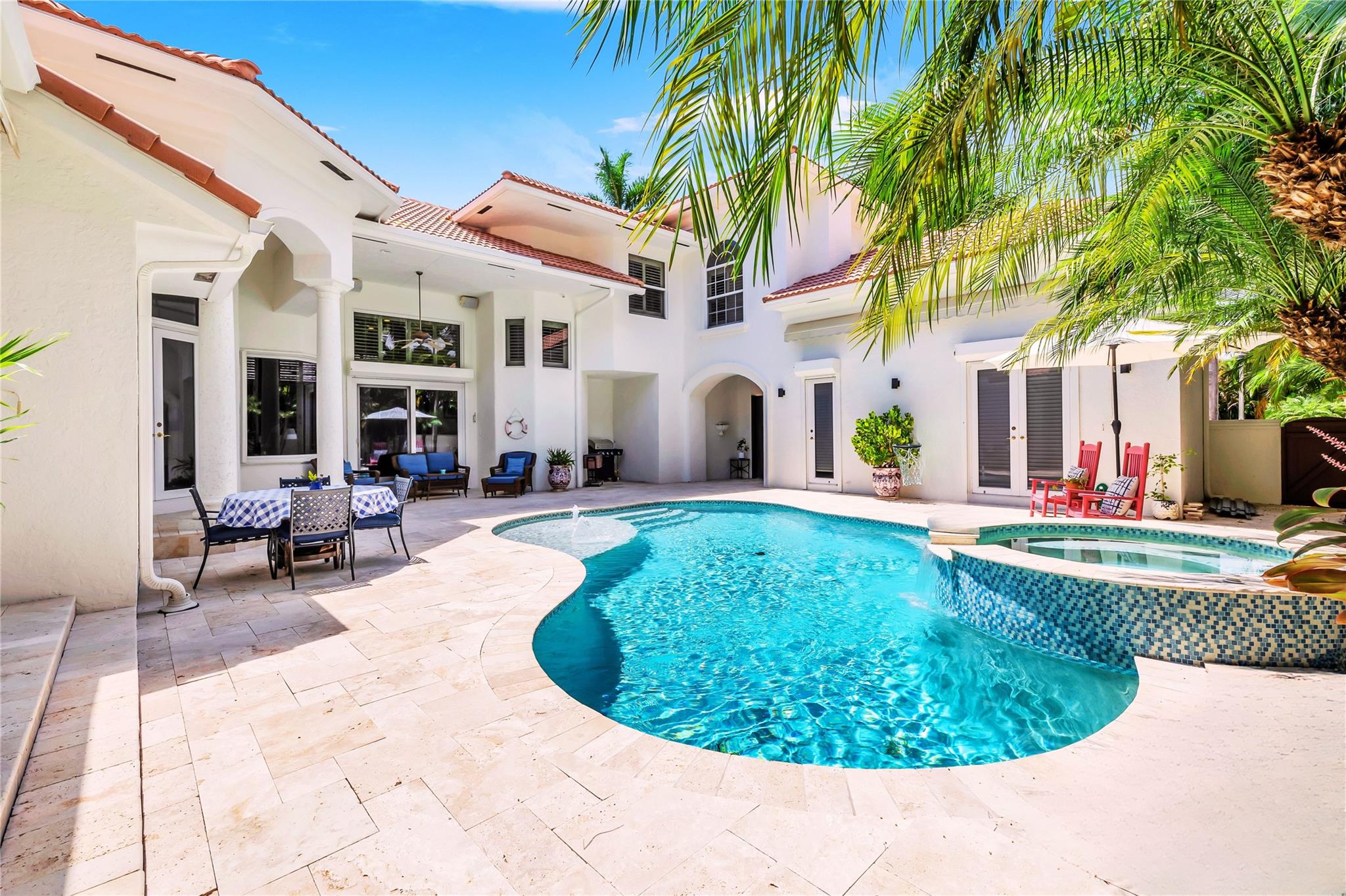EXPERIENCE UNPARALLELED LUXURY in this 5 Bedroom - 4.5-bath Courtyard Home with a separate Guest Suite in a prestigious gated community in Plantation. Custom-built to perfection, 3 new AC units, a master suite w/ dual walk-in closets, dual vanities, roman jacuzzi tub, plantation shutters and triple tray ceilings. Entertainment areas feature travertine marble, custom accents, and soffit ceilings. All-solid wood core doors exude quality, while high ceilings adorn every room, including the kitchen, showcasing GE Monogram series appliances & triple-stack cabinets. The second floor offers Jack and Jill suite & a second primary residence. With a 3-car garage, Partial Impact Windows, an entire home Marantz surround sound system, & an entertainer's pool and spa, this home epitomizes luxury living.