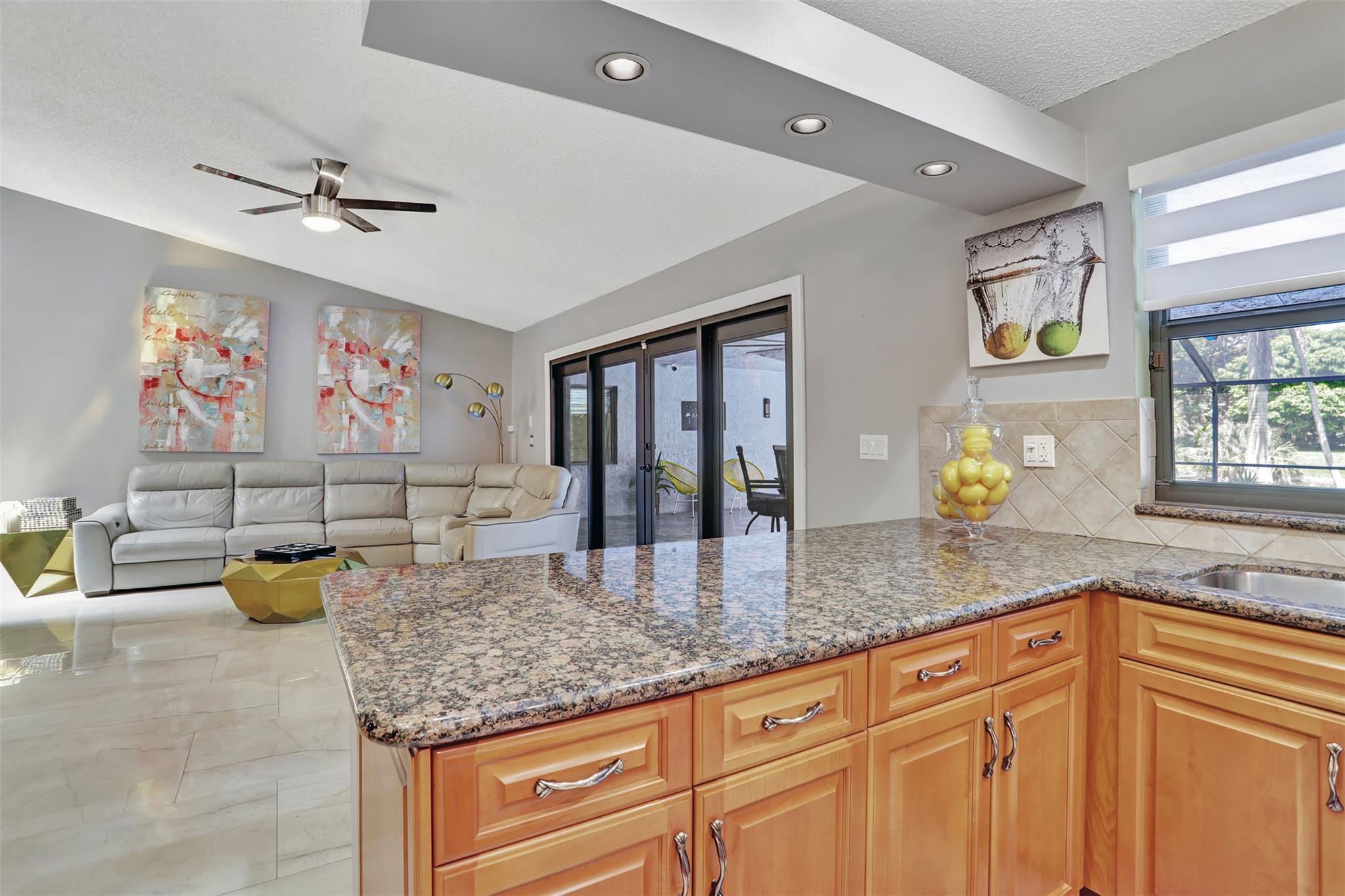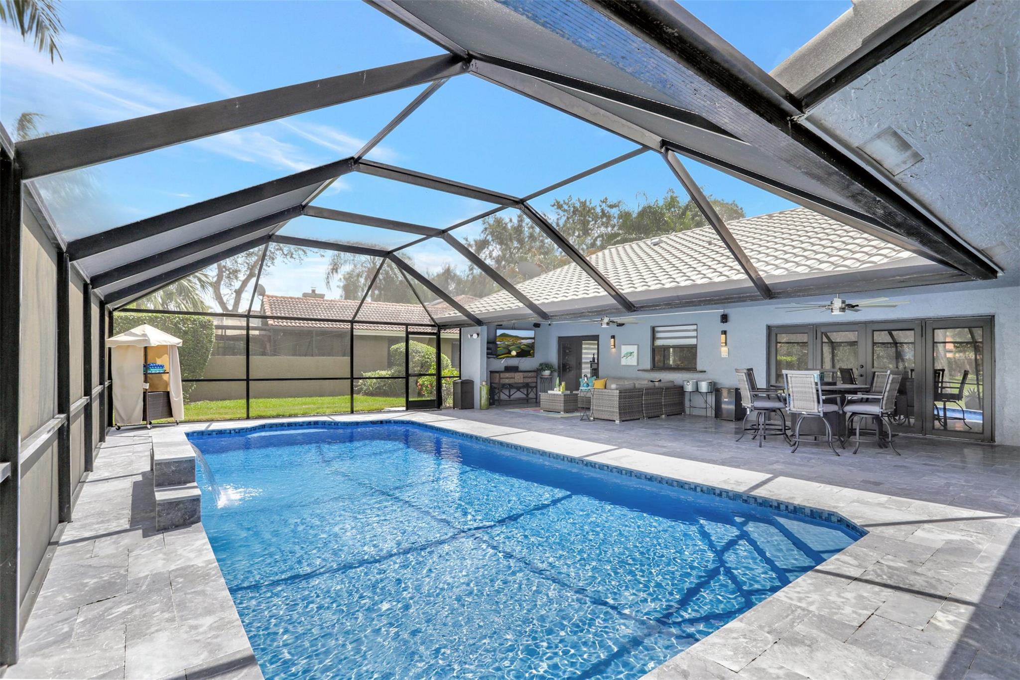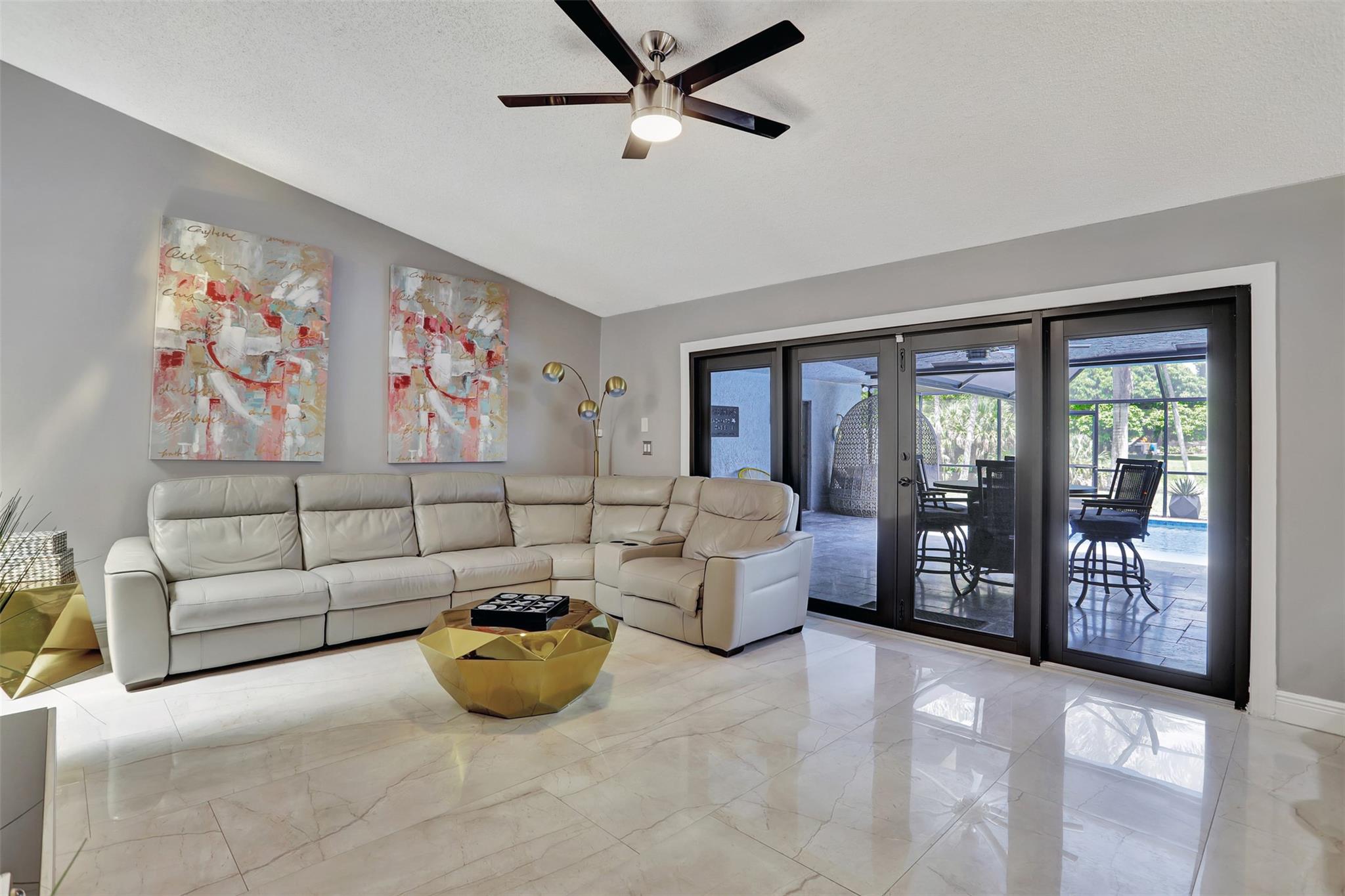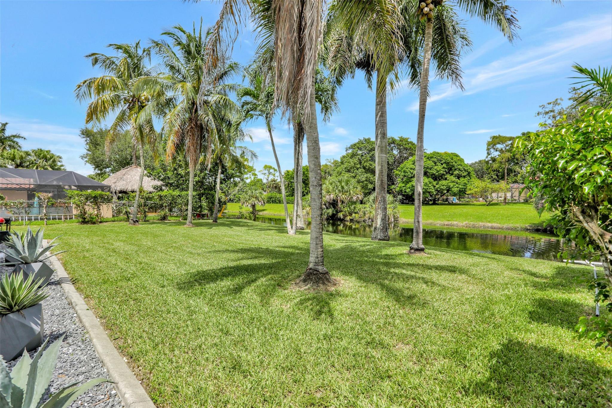 Brilliantly Remodeled Waterfront Home with Private Pool! Tucked away in an established community just moments from Coral Park Elementary, this 4BR/2.5BA residence emanates upscale vibes with tropical landscaping, a beautiful brick façade, vaulted ceilings, attractive wood and porcelain flooring, an elegant formal dining room, an expansive living room w/feature wall, and an entertainment-friendly kitchen boasting granite counters, built-in wine refrigerator, breakfast nook, and an adjoining family room. Host outdoor soirees with a screened-in pool, covered lanai, and serene water views. Retire to the oversized primary bedroom, which dazzles with dual walk-in closets and a spa-like en suite. Other features: 2-car garage, half-circle driveway, laundry room, near shops, and more!