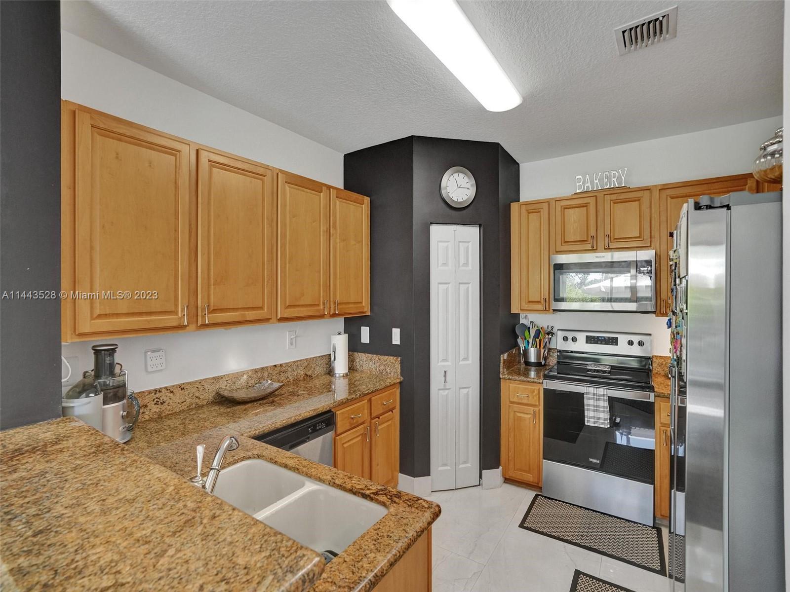 RARELY available 3-bed, 3-bath corner home in the sought-after St. Lucia at Doral, a charming gated community with only 55 residences. This meticulously maintained property offers a fantastic floor plan, including a convenient first-floor bedroom and full bathroom. Enjoy the luxury of new porcelain floors throughout the home's interior and exterior. The kitchen features gorgeous granite countertops, sturdy hardwood cabinets, and stainless steel appliances complemented by a huge pantry. The first floor features a cozy family room, and the second floor has a spacious den for extra flexibility and elegant wood floors. Step outside to an upgraded fenced backyard overlooking a breathtakingly serene lake, perfect for relaxation and entertaining!