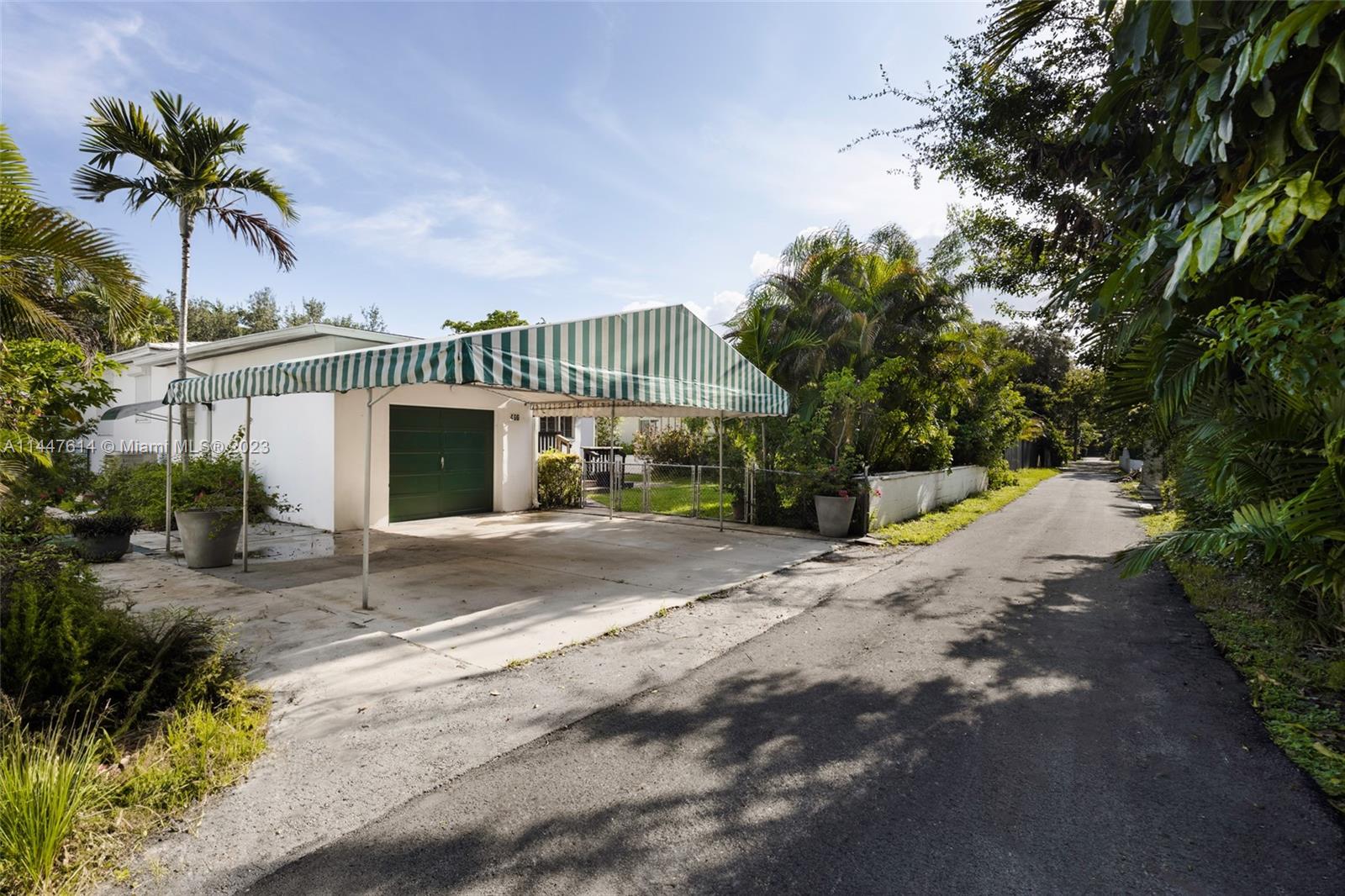 Lovely mid-century home on a quiet, tree-lined street in Miami Shores- a lush residential neighborhood just minutes north of Downtown Miami. Light-filled living spaces feature wood & Cuban tile flooring. Spacious formal living with brick fireplace + formal dining and family rooms. Additional home features include: large kitchen/ w snack bar, laundry room, 1 car garage + 2 car carport & complete storm protection (impact + shutters). Expansive, fenced back yard (8625 SF lot) with wood deck, ideal for outdoor living & dining. Ample room to expand or add a pool. Walking distance to shopping & dining in the Miami Shores Village district with quaint churches, library & tranquil parks.