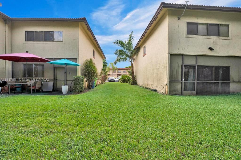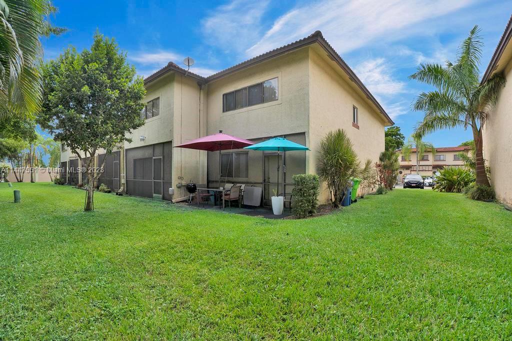 The wait is over to call this beautifully well kept 3 bedroom, 2.5 bathroom with a den/office which could be used as a 4th bedroom townhome centrally located in the heart of Sunrise.... This rare opportunity WILL NOT LAST LONG. All the bedrooms are on the second floor. The second level offers an oversized owner suite with plenty of windows for natural lighting and views of the grass field, a large walk in closet and bathroom. It has a custom beautiful patio with a peaceful and private view. Two assigned parking spots and plenty of guest parking. Community pool, club house and recreational area for children.