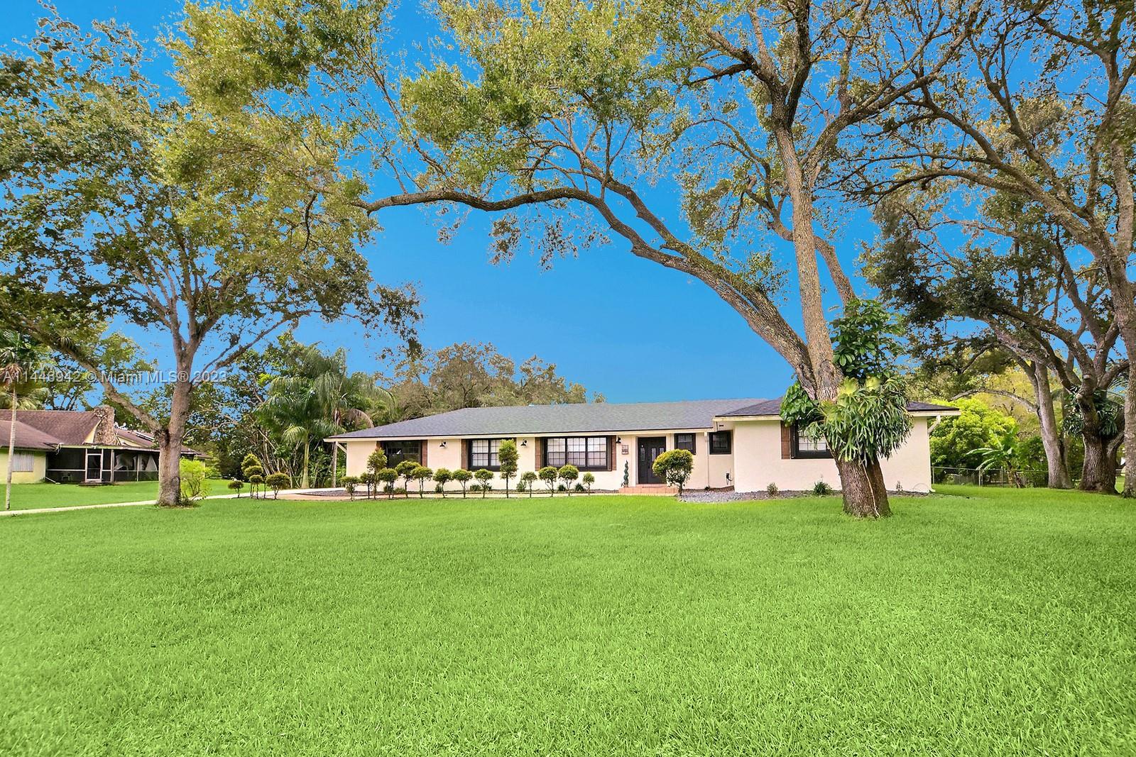 WELCOME TO THE UNIQUE EQUESTRIAN FRIENDLY TOWN OF SOUTHWEST RANCHES FEATURING THIS LOVELY RANCH STYLE HOME FEATURES 4 BEDS, 2 BATHS & 2 CAR GARAGE SET AMID A SPRAWLING 35,531 SQ FT OF LAND. ENJOY A MODERN FARMHOUSE AESTHETIC COMPLETE W GORGEOUS PLANK FLOORS, SHIPLAP ACCENT WALLS & ELEGANT FIXTURES. OPEN CONCEPT LAYOUT HAS KITCHEN PERFECTLY POSITIONED IN THE CENTER OF SOCIAL AREAS. SPACIOUS PRIMARY SUITE HAS AN ENSUITE BATH W HUGE WALK-IN SHOWER. OVERSIZED SCREENED PATIO IS PERFECT FOR OUTDOOR DINING & ENTERTAINING WHILE TAKING-IN THE DELIGHTFUL VIEWS OF THE GROUNDS. YOUR HORSES & FARM ANIMALS WILL FEEL RIGHT AT HOME IN THEIR 2-STALL BARN. LIVE YOUR BEST LIFE IN THIS TRULY SPECIAL PRIVATE RETREAT W NEW ROOF, SOLAR PANELS & GENERATOR-READY. LARGE LAUNDRY ROOM. NO HOA, BRING YOUR BOAT & RV.
