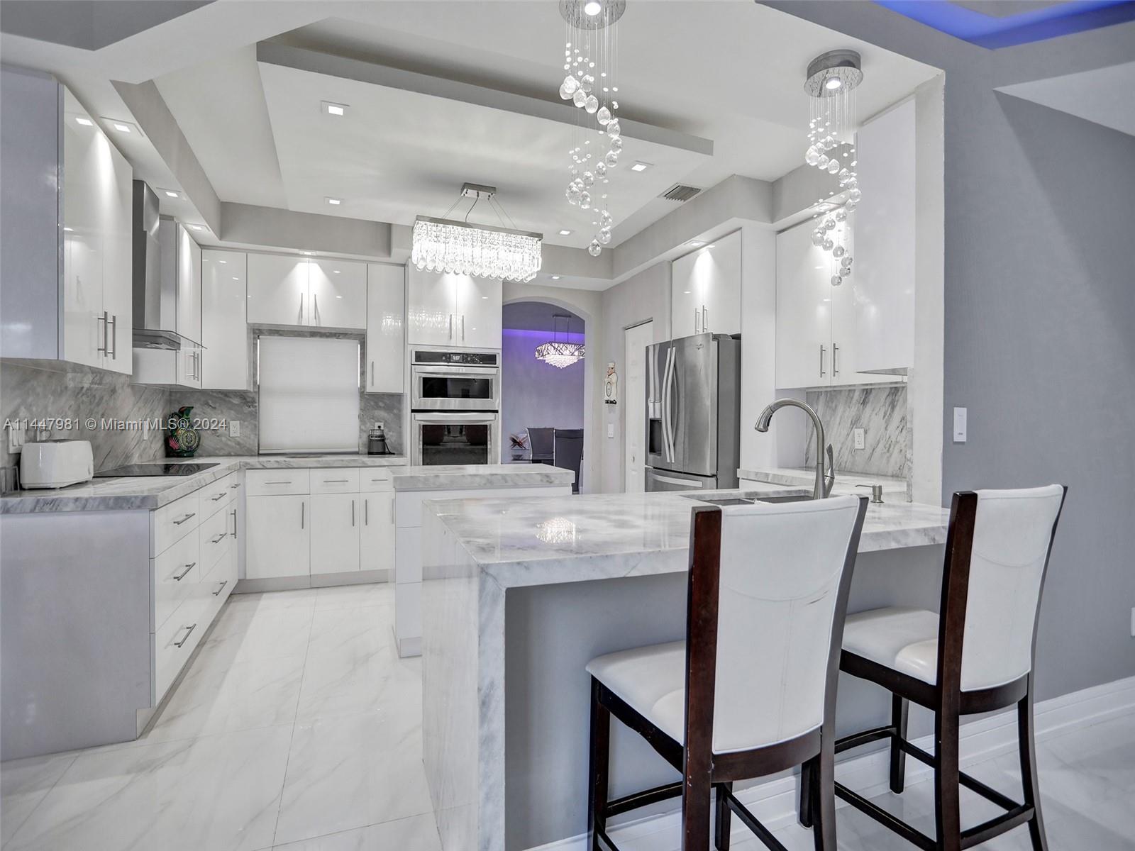 This 5-bed, 4-bath home seamlessly blends luxury and space with a renovated interior. The main level boasts gleaming floors, a guest bedroom with en-suite bath, and custom lighting throughout. The primary suite on the upper level is a retreat with a marble bathroom, oversized shower, double vanities, a sitting area, and a custom walk-in closet. The second level offers a spacious loft for play or movies. The family room is perfect for gatherings with custom lighting, surround sound, and electronic shades. The eat-in kitchen features stainless steel appliances, an in-wall oven, microwave, and flat-top stove. Outside, imagine your private pool in the expansive backyard. Don't miss the chance to own this exceptional home!