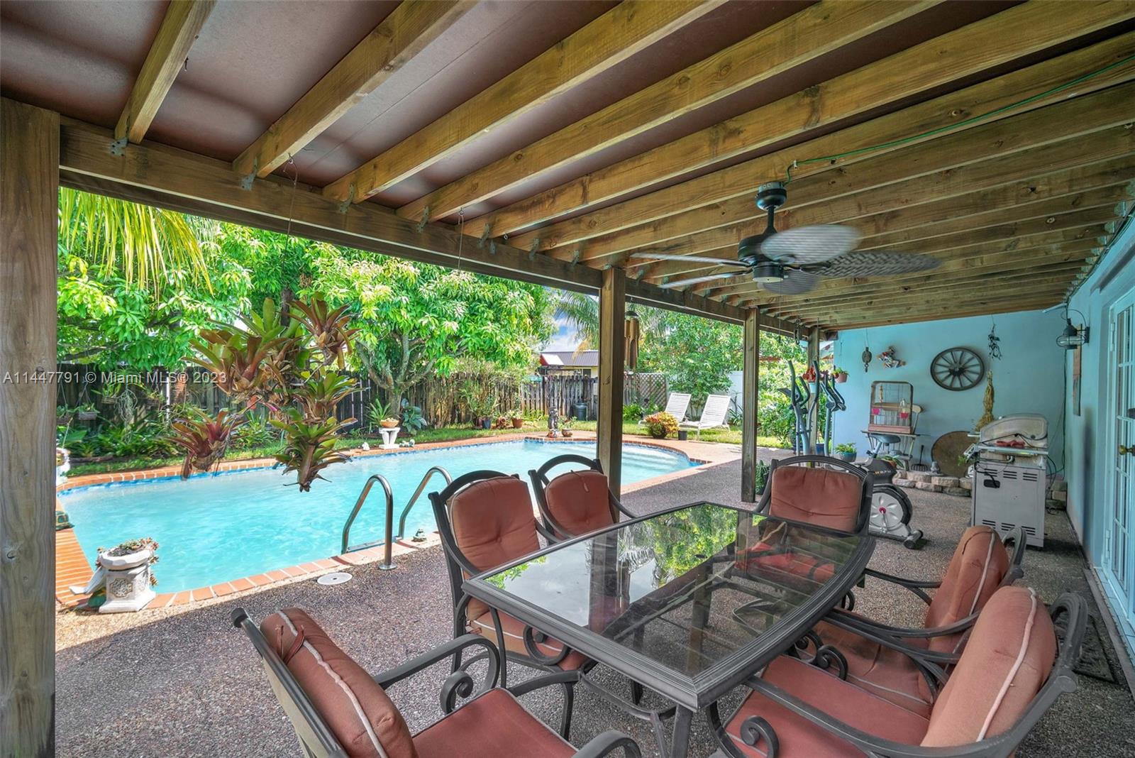 This gorgeous home is located in the desirable Hollywood Hills, offering three bedrooms, two bathrooms, a family room, NEW CENTRAL AIR (2024), and a spacious 328 SQFT great room with a working fireplace. The kitchen has been recently updated with beautiful white cabinets, granite countertops, and stainless steel appliances, providing a modern and sleek look. Additional features include a laundry-utility room, over 250 SQFT of covered patio, privacy fence, and two-car garage. The home has impact windows and a tile roof, making it storm-ready. The location is very convenient, within walking distance of schools, shops, and restaurants. You will be just minutes away from the beach and Hard Rock Hotel. This home is perfect for a buyer who appreciates spaciousness, comfort, and modern amenities.