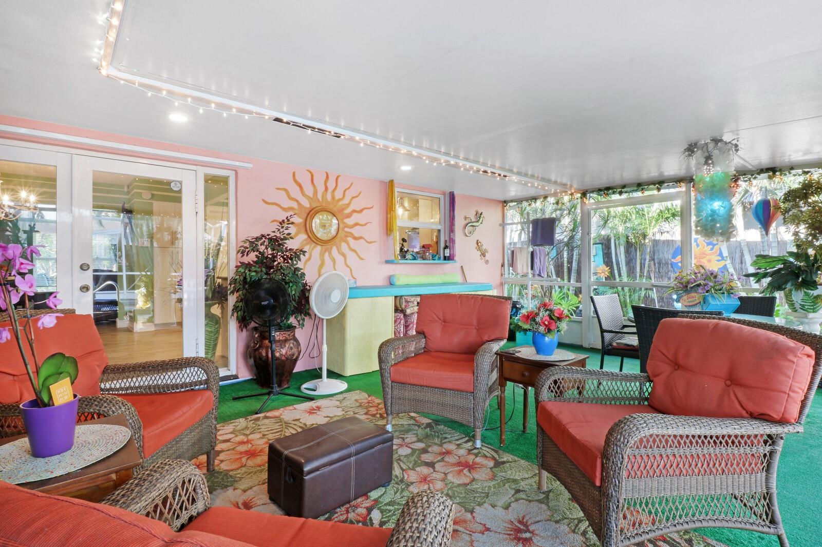 A True Key West Artist's Retreat Vibe with a casual elegance awaits you in the Palm Aire Village Home. Beach house feel without the beach price. From top to bottom recent renovations have completed making this a desirable home. Roof in '18. Sewer Lining '17, Newer Kitchen, Newer Solar Water Heater, A/C 5 years old, and that's just the beginning. Split bedroom plan with your Primary suite in the rear adjacent to the screened in heated salt water pool and spa. Designer kitchen with movable island, complete pull outs for ease of storage and soft close drawers. One car garage with built in storage as well as additional storage shed outside. Beautiful tropical landscape takes you on a metal break from the city to relaxing in the keys. Close to major roads and the city's largest employers.