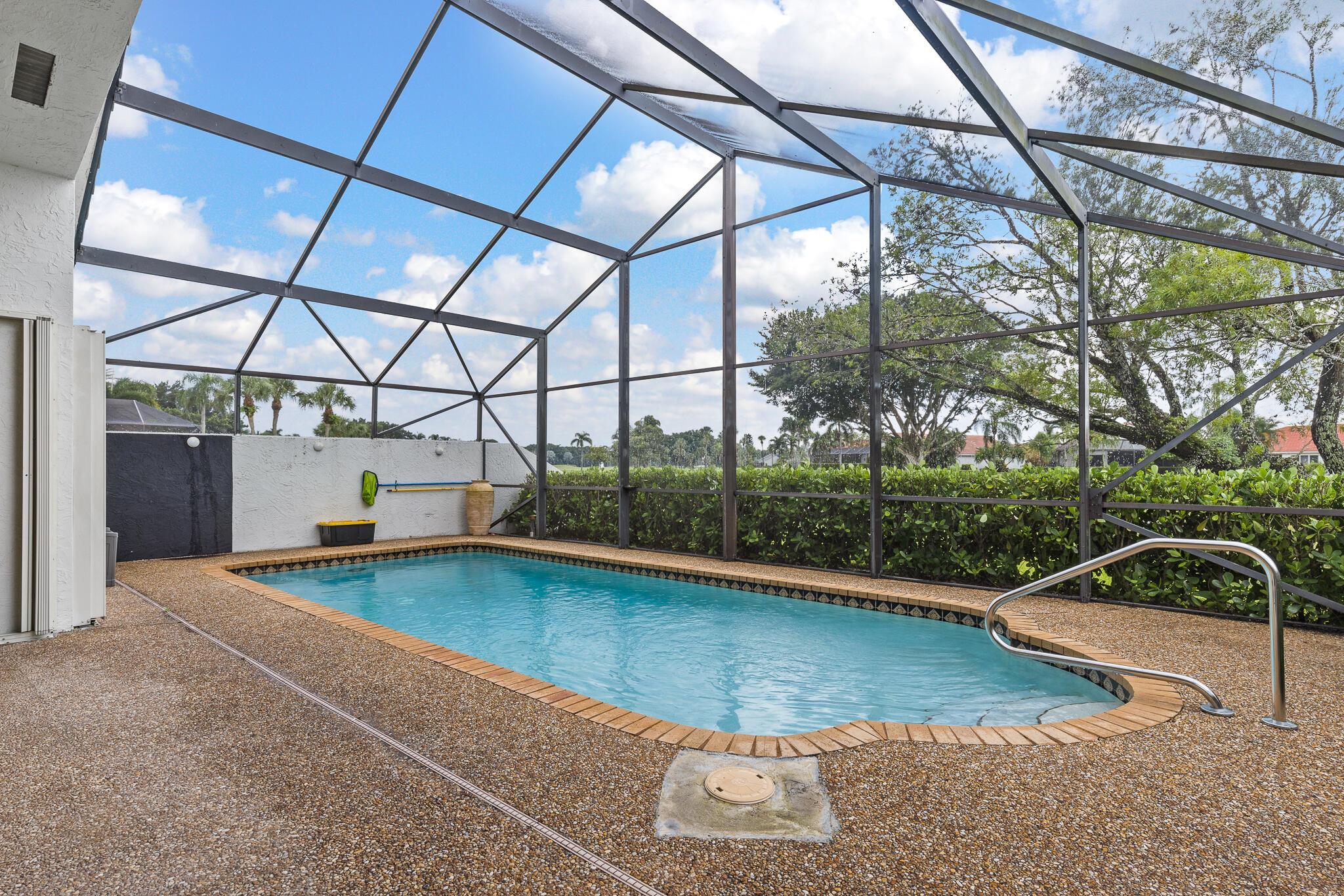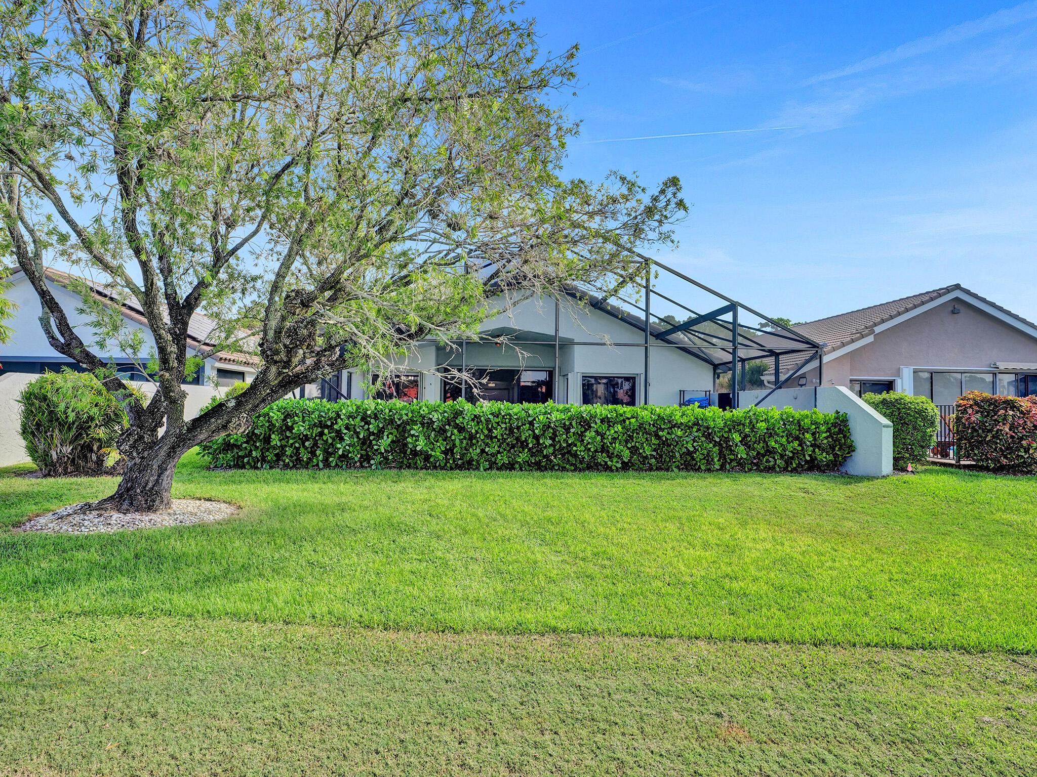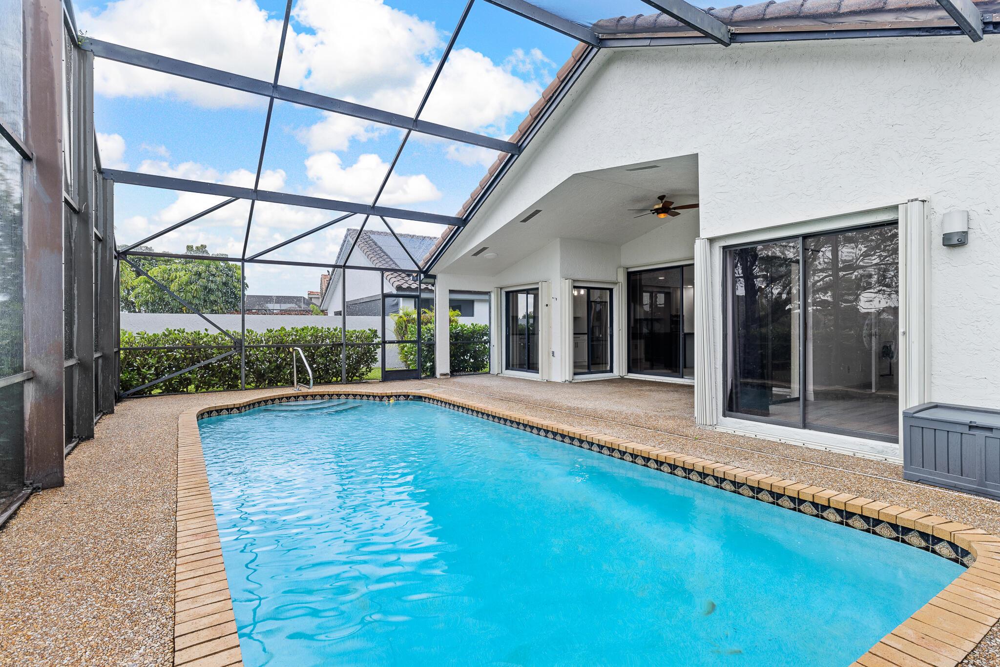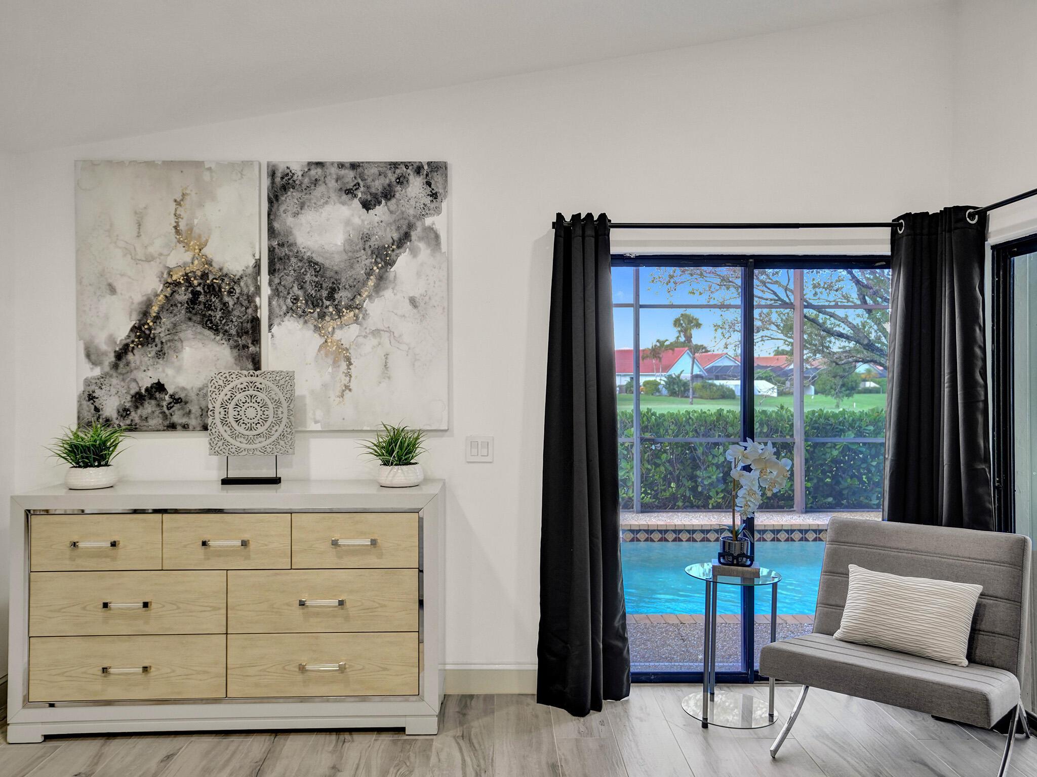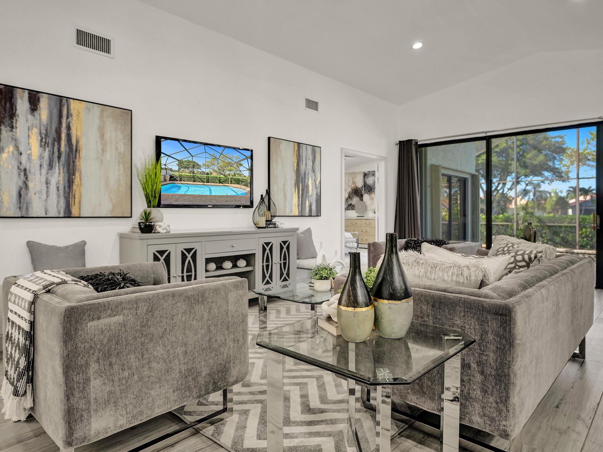 Stunning 2 bedroom PLUS den with golf view in prestigious Boca Woods Country Club. Elegantly remodeled with sleek and bright finishes. 11.5' ceilings in the great room and atrium. Natural light is abundant. Gourmet kitchen features stainless steel appliances, gorgeous white cabinets with gray quartz countertops, a large 9' x 3' island with enough seating for 4 at the bar plus a breakfast area. Master suite with a view of the pool has 2 completely outfitted walk-in closets and a luxury bath with skylight, large shower and vanity. Enjoy the view of your pool and the lush green golf course from your living room, kitchen, breakfast area and dining room. Seller is offering a $25,000 credit towards Boca Woods Golf Membership to enjoy the stunning newly renovated clubhouse and tennis courts.
