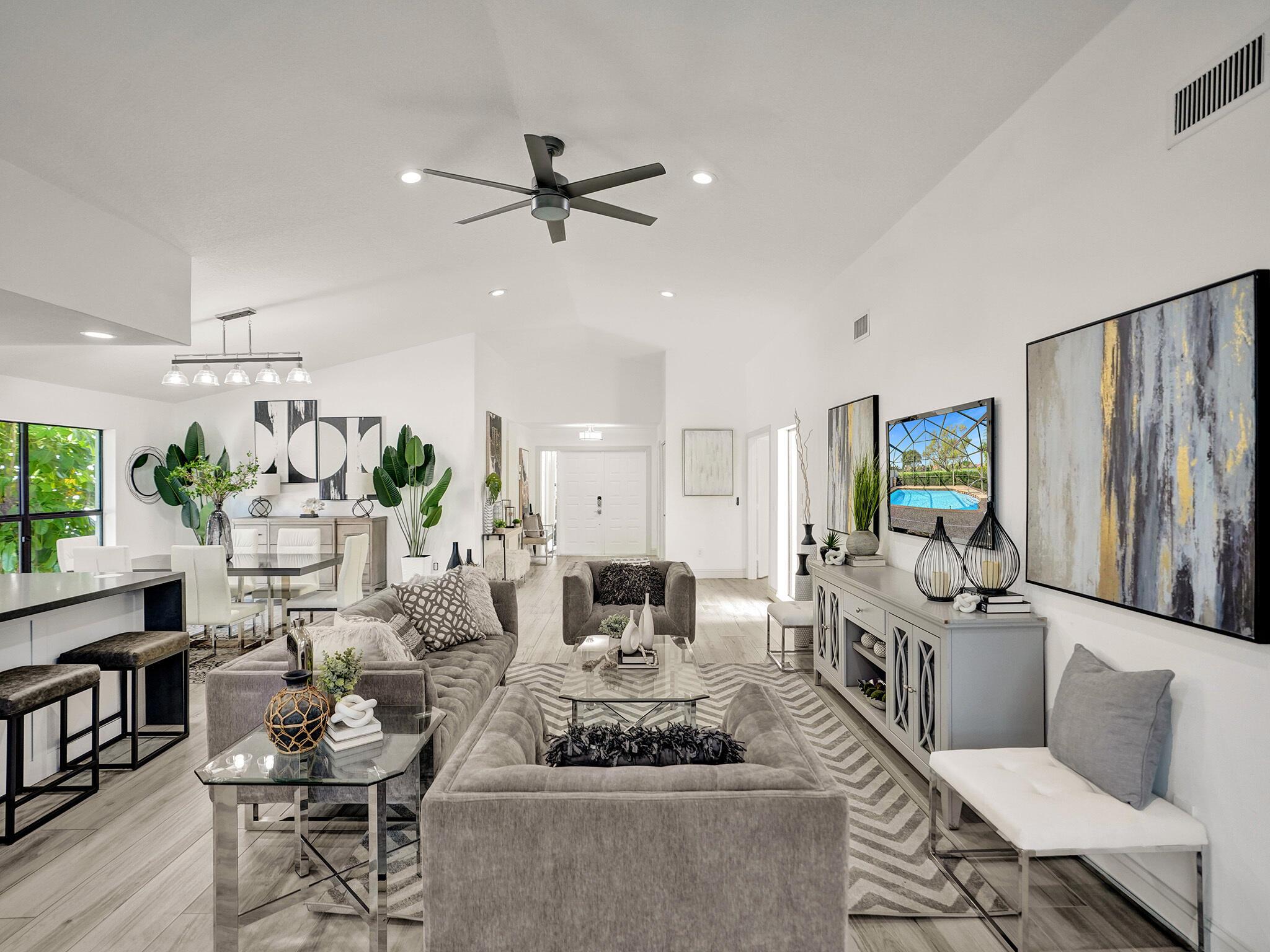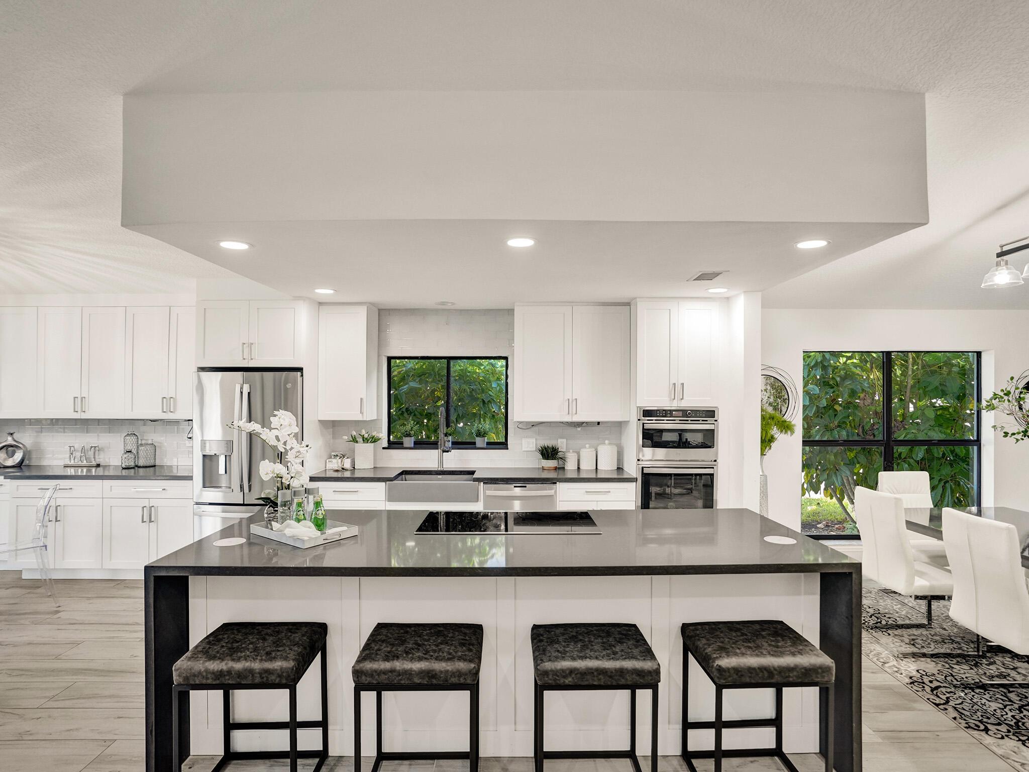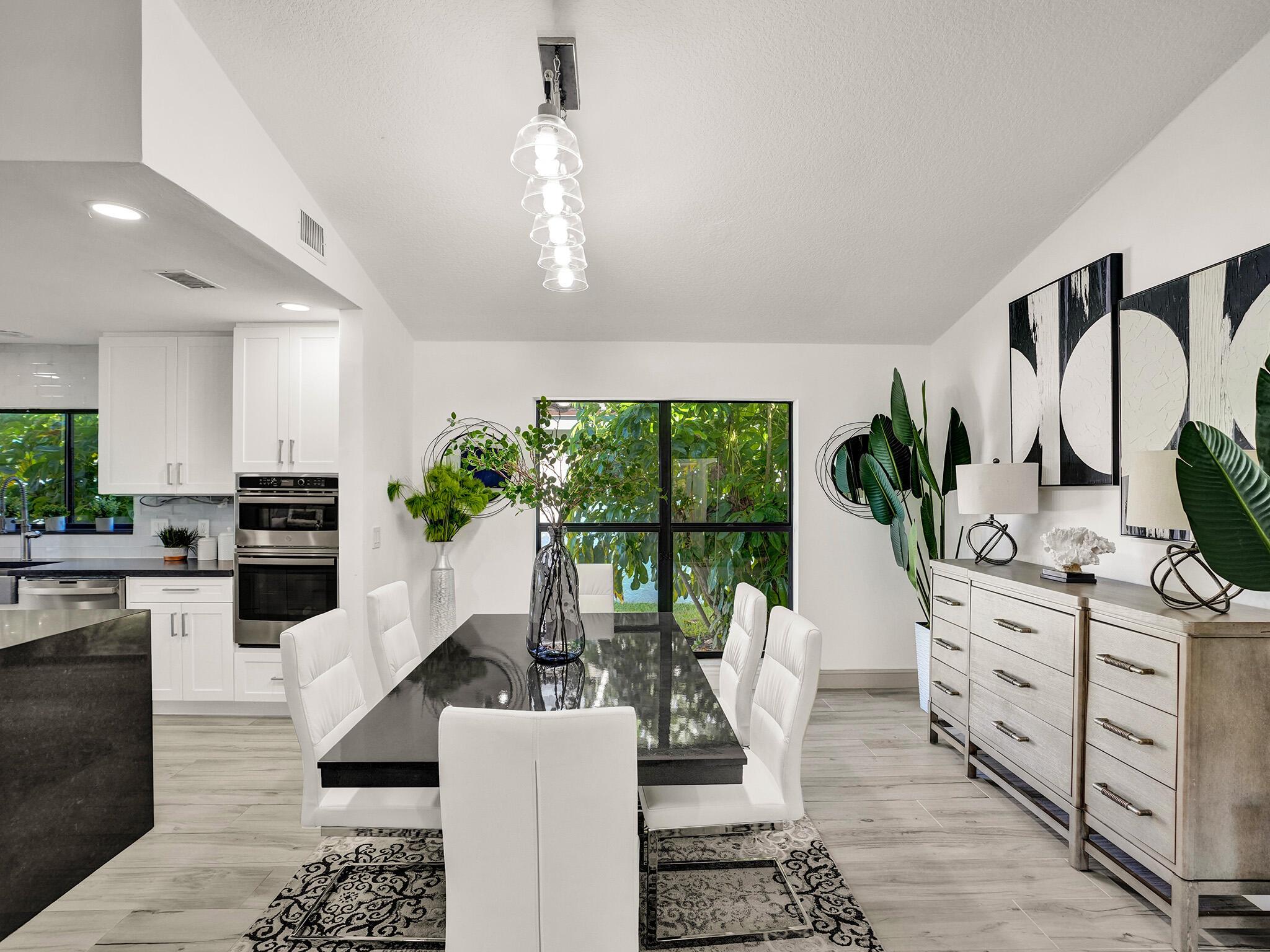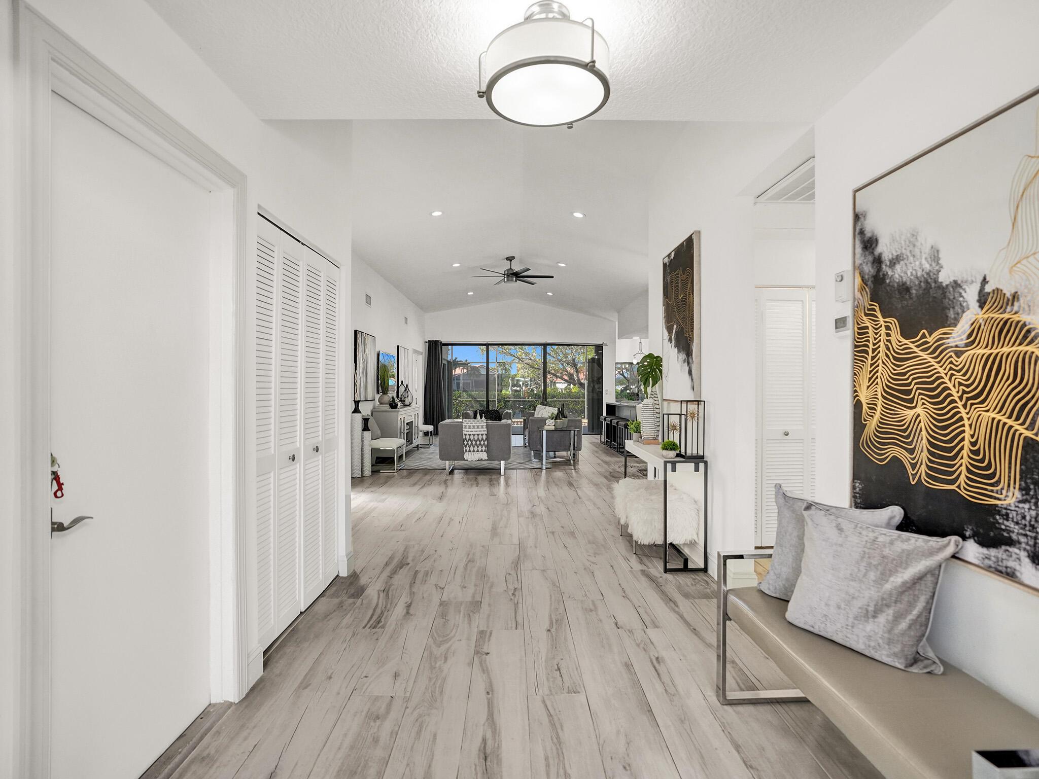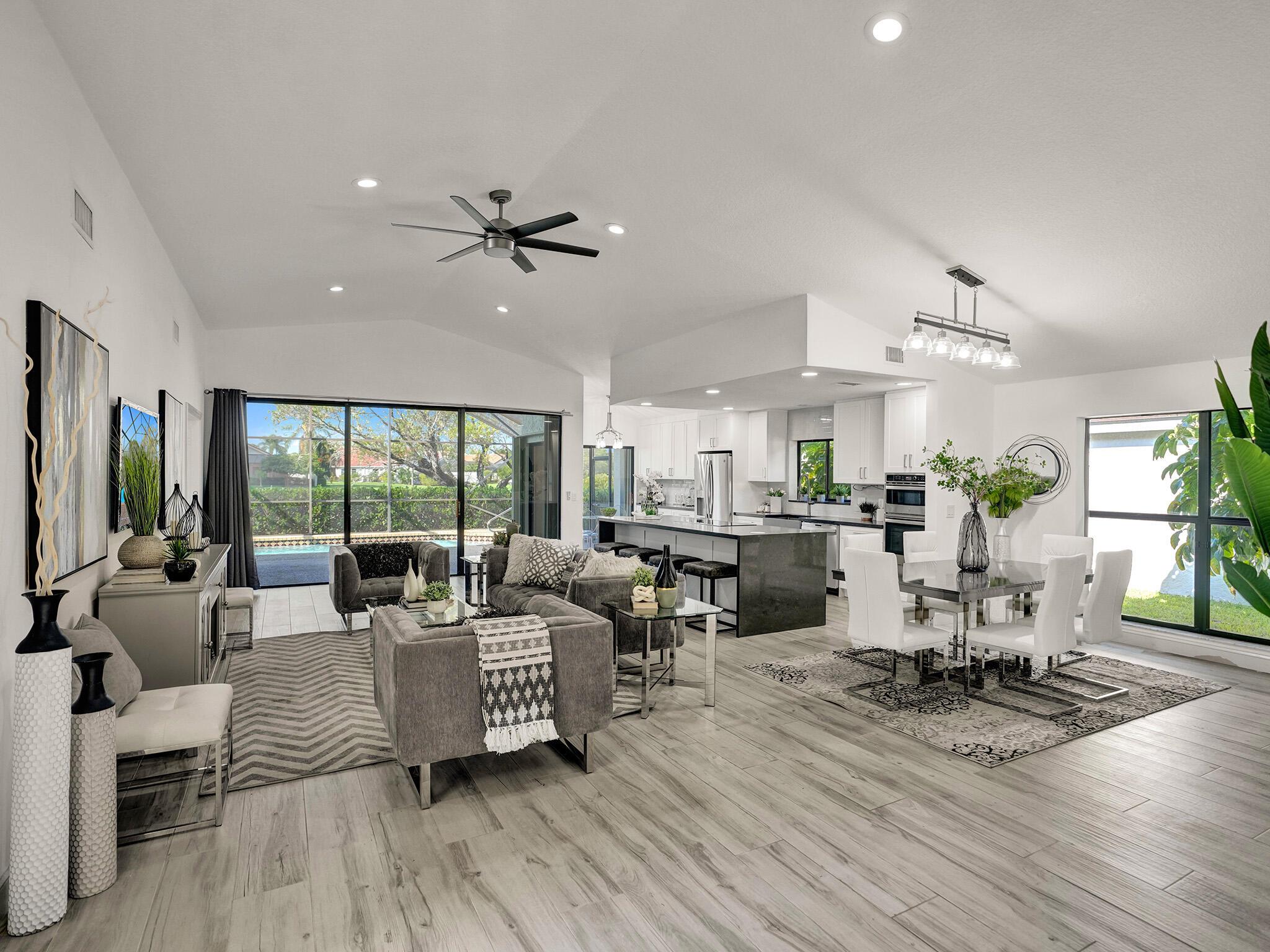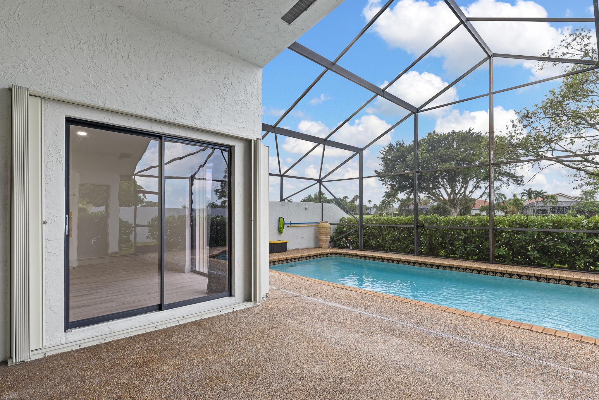 Stunning 2 bedroom PLUS den with golf view in prestigious Boca Woods Country Club. Elegantly remodeled with sleek and bright finishes. 11.5' ceilings in the great room and atrium. Natural light is abundant. Gourmet kitchen features stainless steel appliances, gorgeous white cabinets with gray quartz countertops, a large 9' x 3' island with enough seating for 4 at the bar plus a breakfast area. Master suite with a view of the pool has 2 completely outfitted walk-in closets and a luxury bath with skylight, large shower and vanity. Enjoy the view of your pool and the lush green golf course from your living room, kitchen, breakfast area and dining room. Seller is offering a $25,000 credit towards Boca Woods Golf Membership to enjoy the stunning newly renovated clubhouse and tennis courts.