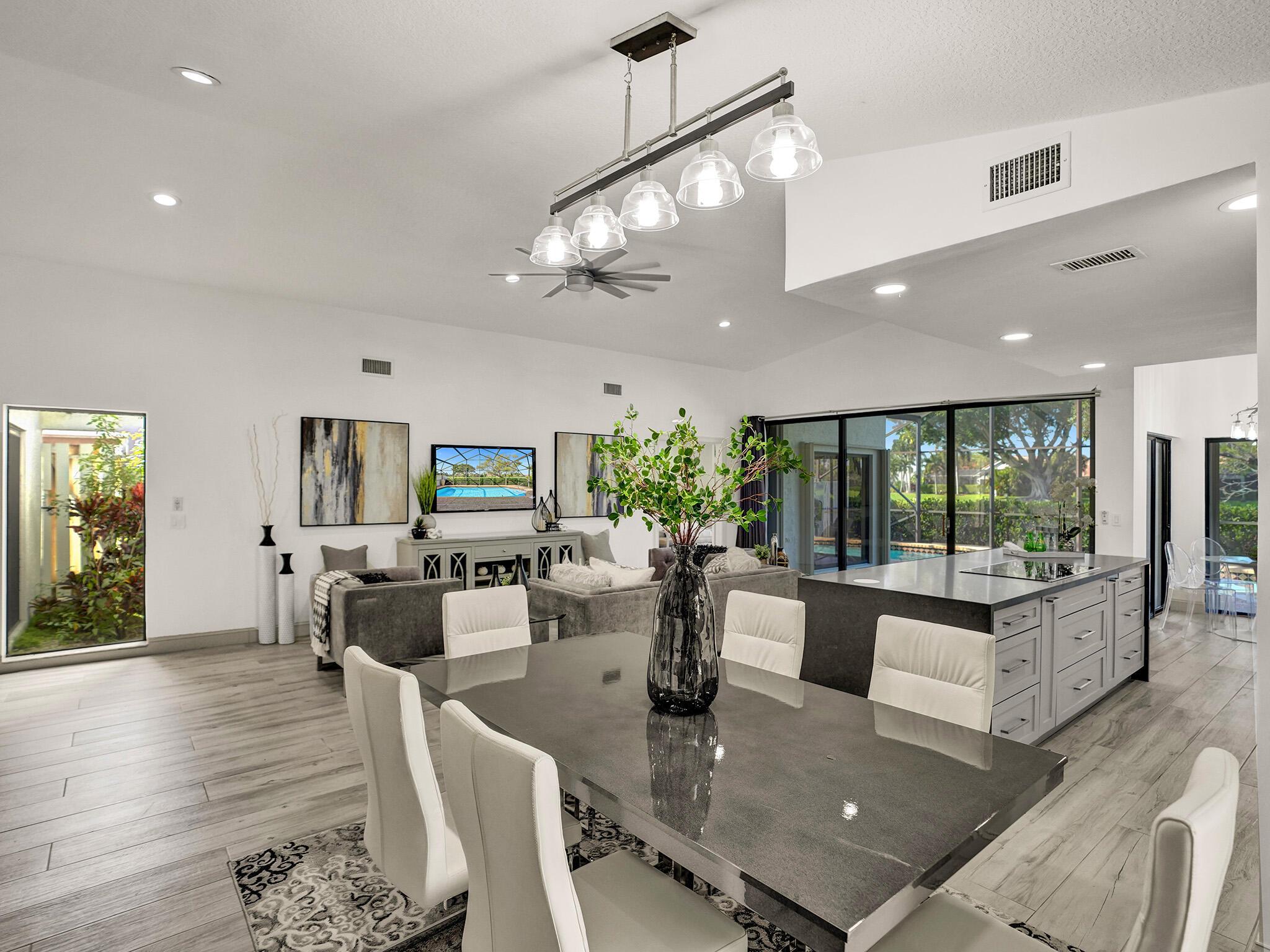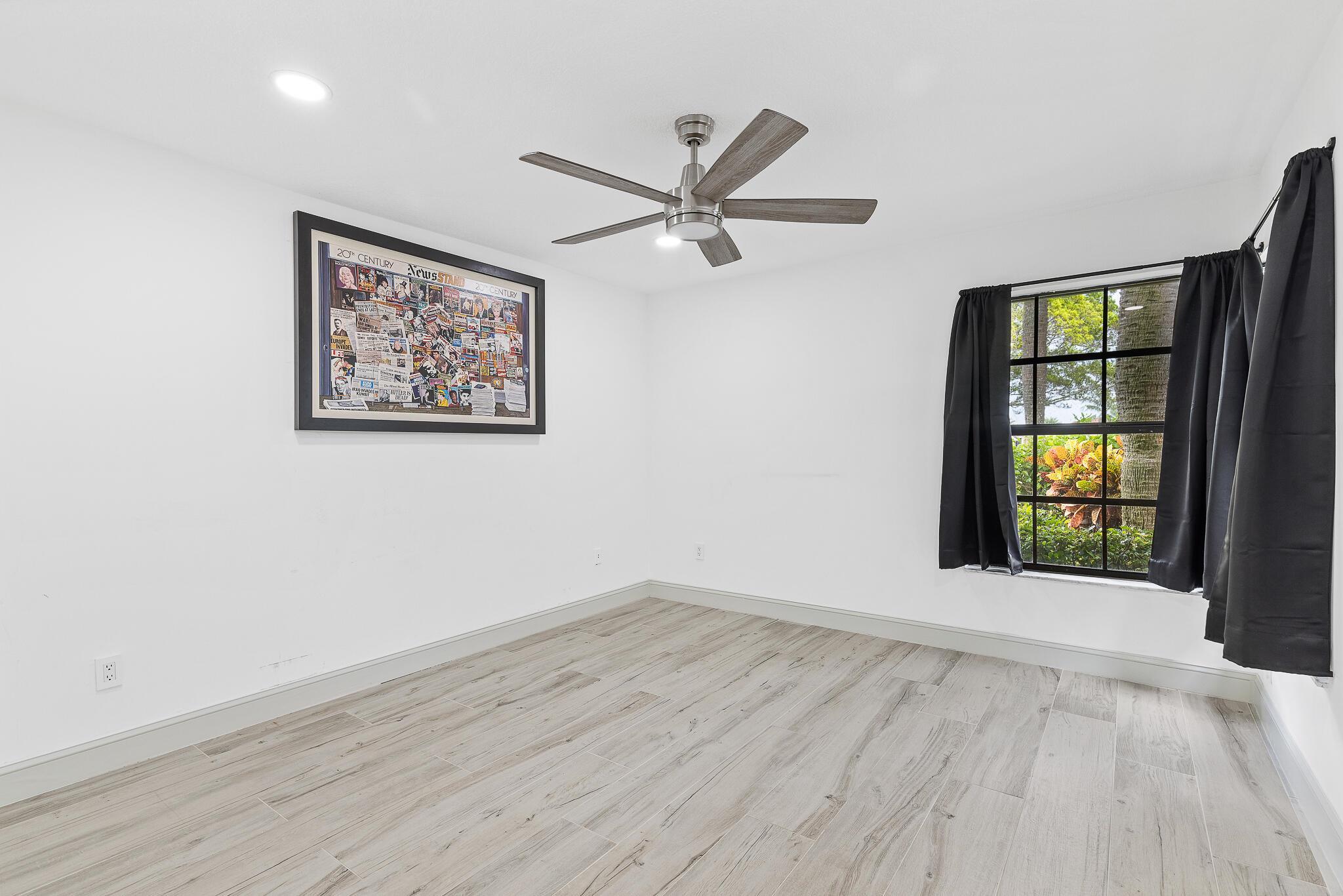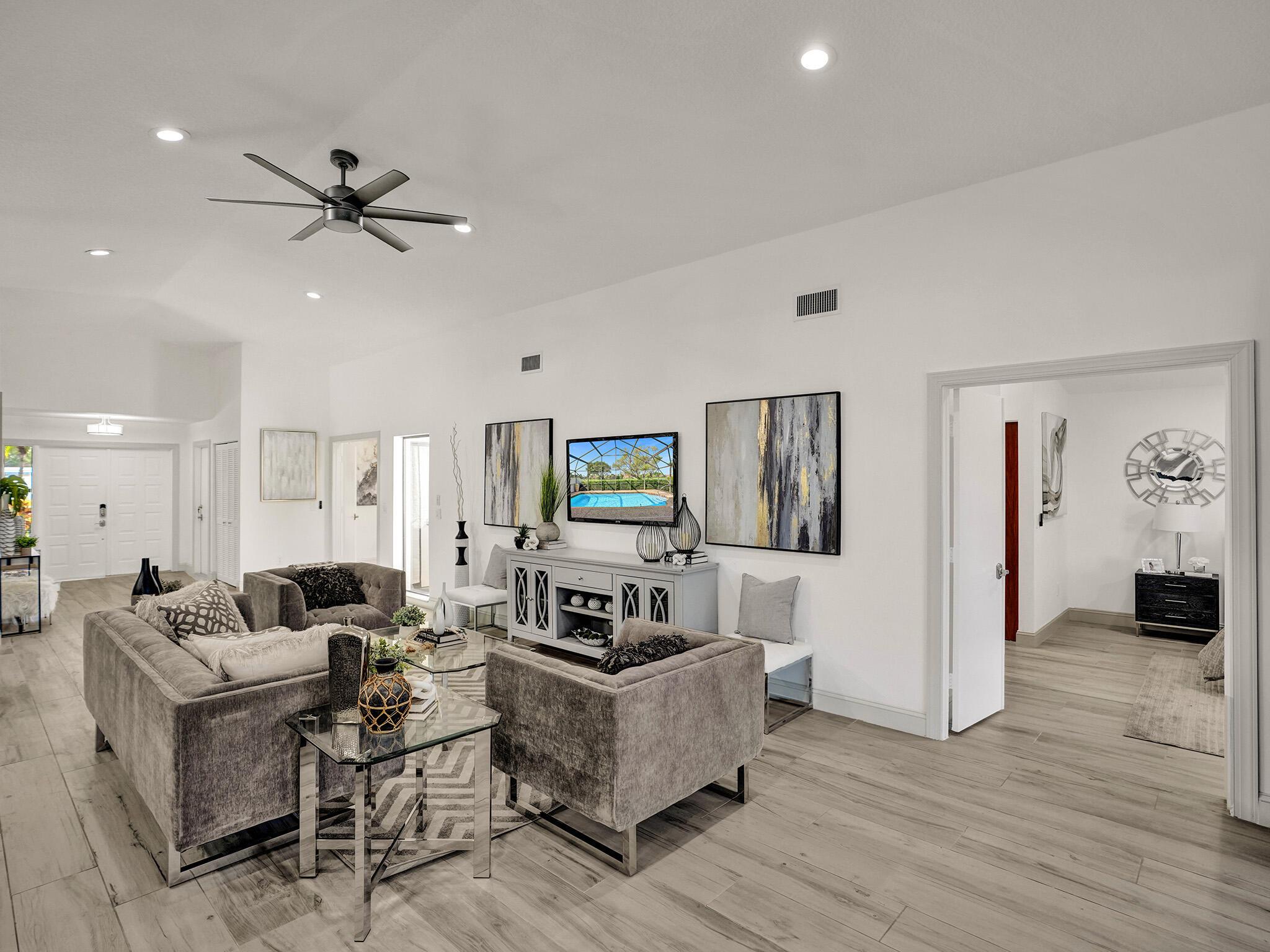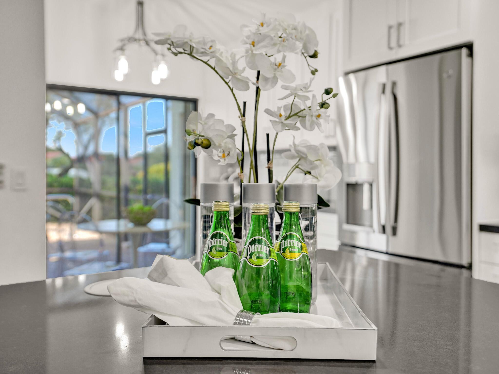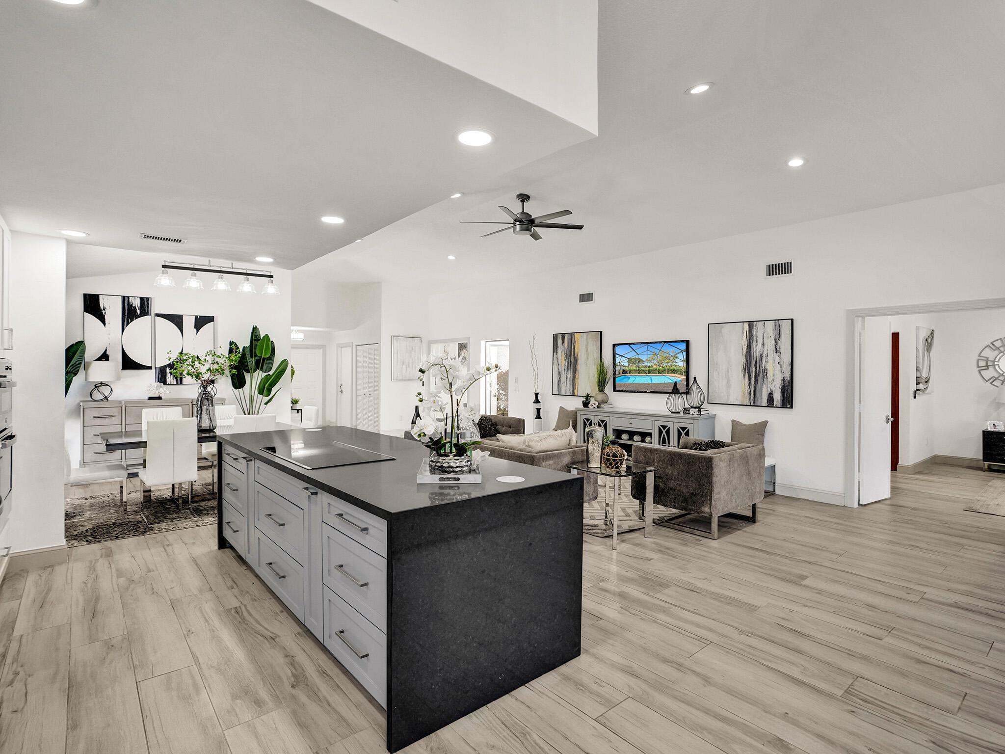 Stunning 2 bedroom PLUS den with golf view in prestigious Boca Woods Country Club. Elegantly remodeled with sleek and bright finishes. 11.5' ceilings in the great room and atrium. Natural light is abundant. Gourmet kitchen features stainless steel appliances, gorgeous white cabinets with gray quartz countertops, a large 9' x 3' island with enough seating for 4 at the bar plus a breakfast area. Master suite with a view of the pool has 2 completely outfitted walk-in closets and a luxury bath with skylight, large shower and vanity. Enjoy the view of your pool and the lush green golf course from your living room, kitchen, breakfast area and dining room. Seller is offering a $25,000 credit towards Boca Woods Golf Membership to enjoy the stunning newly renovated clubhouse and tennis courts.