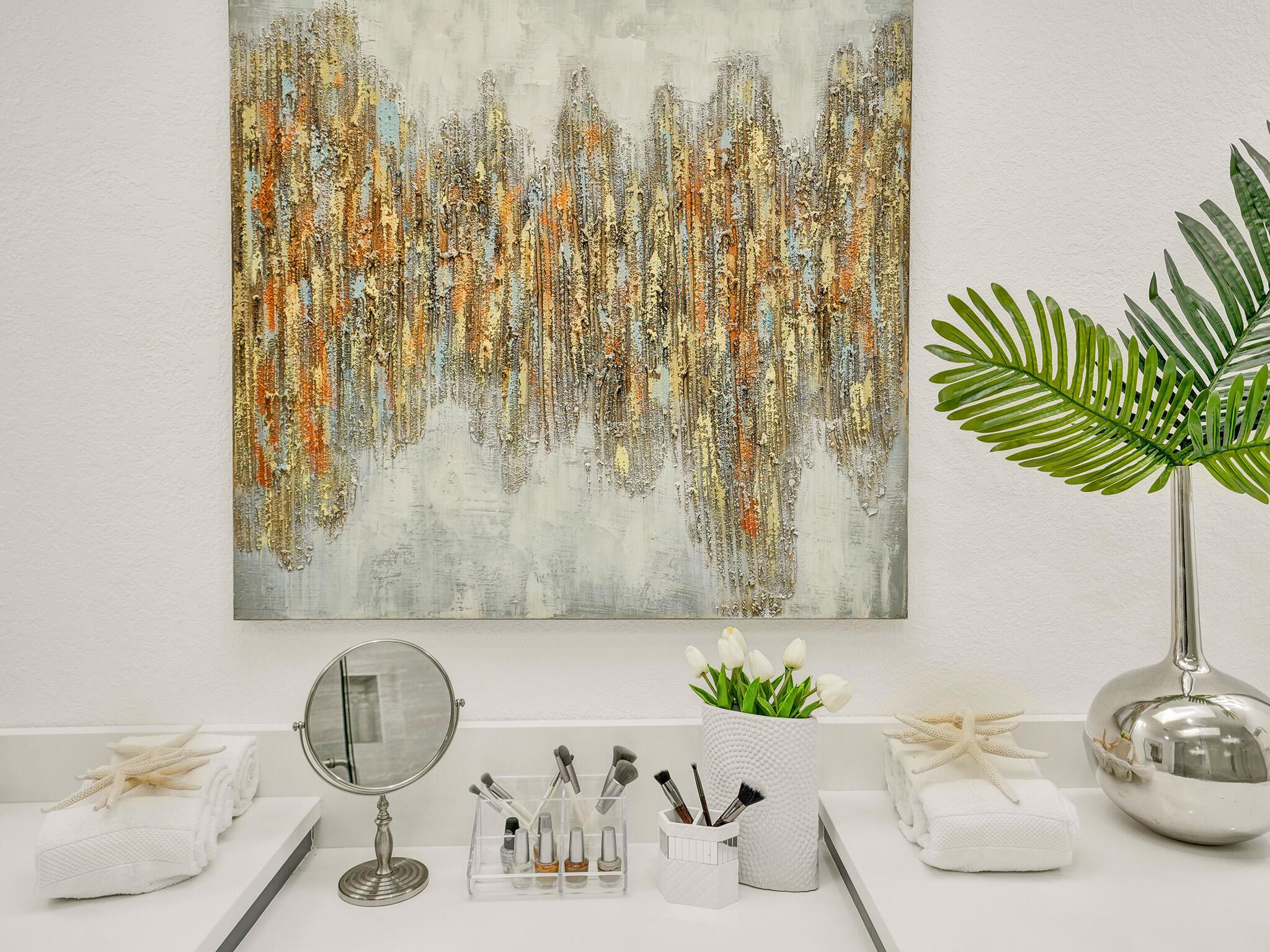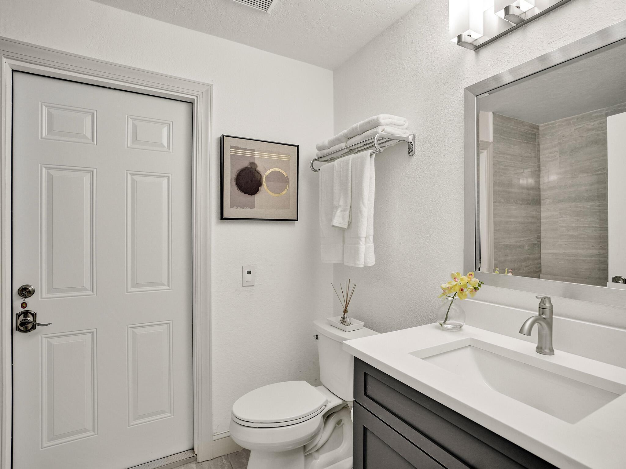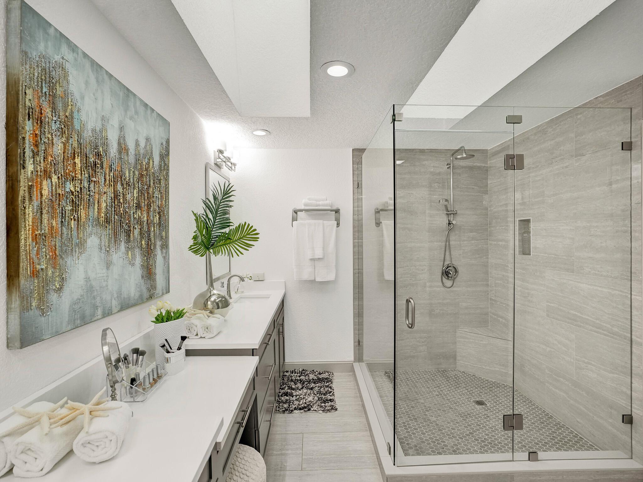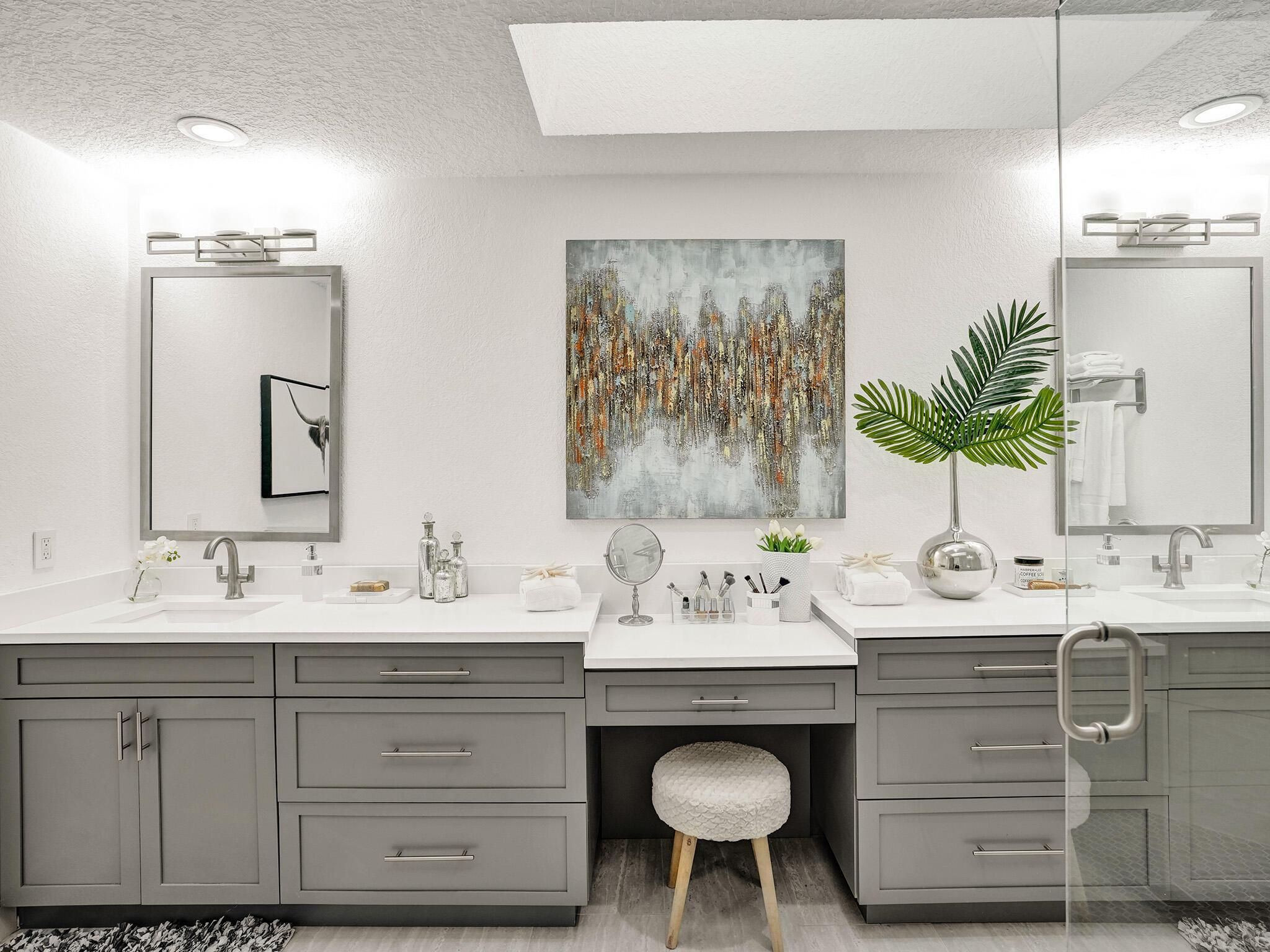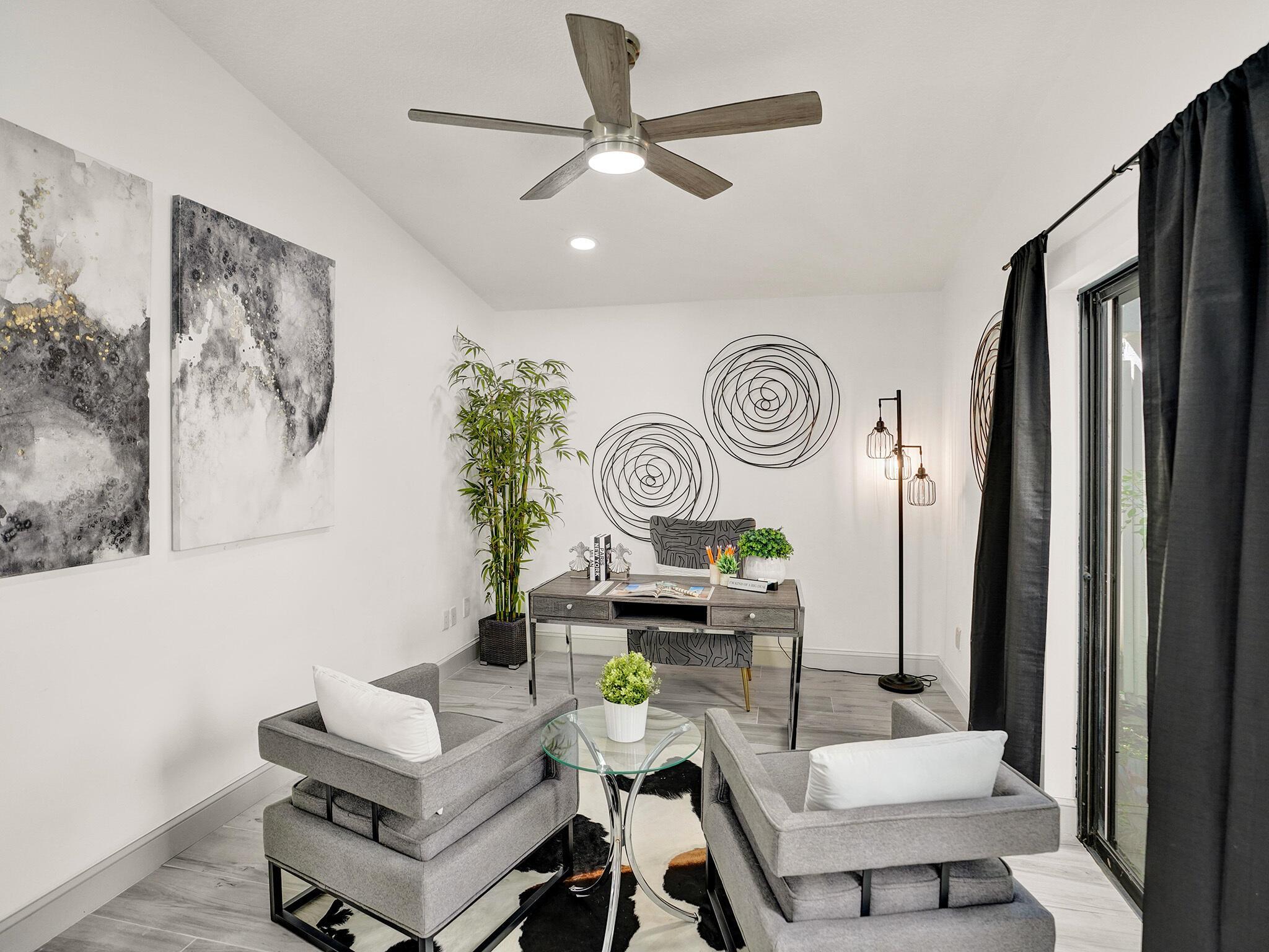 Stunning 2 bedroom PLUS den with golf view in prestigious Boca Woods Country Club. Elegantly remodeled with sleek and bright finishes. 11.5' ceilings in the great room and atrium. Natural light is abundant. Gourmet kitchen features stainless steel appliances, gorgeous white cabinets with gray quartz countertops, a large 9' x 3' island with enough seating for 4 at the bar plus a breakfast area. Master suite with a view of the pool has 2 completely outfitted walk-in closets and a luxury bath with skylight, large shower and vanity. Enjoy the view of your pool and the lush green golf course from your living room, kitchen, breakfast area and dining room. Seller is offering a $25,000 credit towards Boca Woods Golf Membership to enjoy the stunning newly renovated clubhouse and tennis courts.