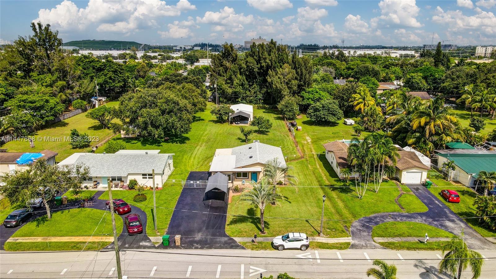 Renovated home on fenced 1/2 acre in Davie with detached 4 car garage, great for your toys and work area. Rarely available in this neighborhood. New Roof 2023, Accordion shutters, Kitchen & Appliances Renovated in 2020, new Baths 2020, New inside plumbing, new copper wiring, new Impact windows. Inspection already done and you can move right in, FHA/VA/Conv financing welcome. Great comps. Nice Floorplan, primary bedroom has ensuite bath, beds#2 and #3 share hall bath. All tile throughout. Move right in to this one with no work needed. Great location close to Turnpike, 441, Hard Rock, 595, all shopping, schools, entertainment. NO HOA.
