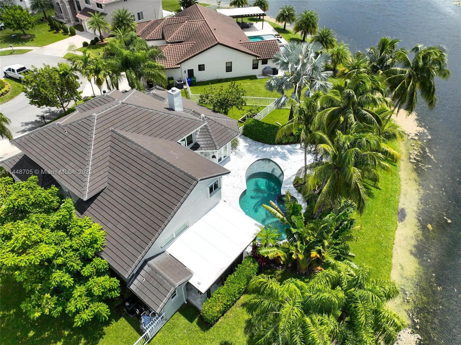 The search is over! Welcome to this exquisitely renovated 2 story dream house! Situated on a private prime lot cul-de-sac w/a beautiful lake! NEW ROOF! IMPACT WINDOWS + DOORS! NEW A/C! Enjoy South Fl living at its finest w/ new resurfaced salt water pool, serene lake views + NEW PERGOLA W/ LIGHTING! Prepare to be greeted by panoramic water views, natural lighting + high ceilings upon entry! Primary suite is on 1st floor and features his/her walk in closets, a fireplace & newly renovated bathroom! The open kitchen is also newly designed & upgraded! Complete w/ quartz countertops, SS appliances and brand new modern farmhouse cabinetry. 3 bedrooms are upstairs, along with another impressively upgraded bath! NEW ELECTRICAL PANEL + GENERATOR READY! Custom window treatments! GATED COMMUNITY!