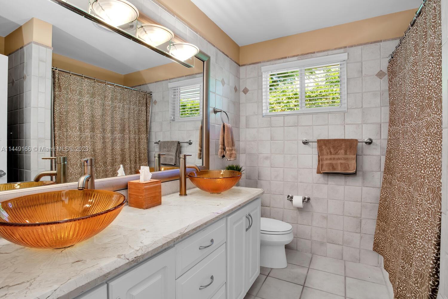 Lovely and LOWEST PRICED home in prestigious Gables-by-the-Sea, a quiet bayfront guard-gated community. Light filled, open-concept living spaces featuring Brazilian cherry wood flooring, modern-style kitchen renovated in 2016 w/wood cabinetry, granite countertops, 2023 appliances & breakfast bar. 4 large BR’s, including spacious primary suite w/walk-in closet & bath w/ glass-enclosed shower and bonus patio room accessible to pool. Impact glass throughout. French doors open to garden & pool which is fully fenced w/privacy hedge. Gables-by-the Sea is a golf-cart friendly neighborhood w/a neighborhood park & offers Coral Gables police roving security + voluntary HOA. Located in the highly rated Pinecrest school district & walking distance to Gulliver Academy.