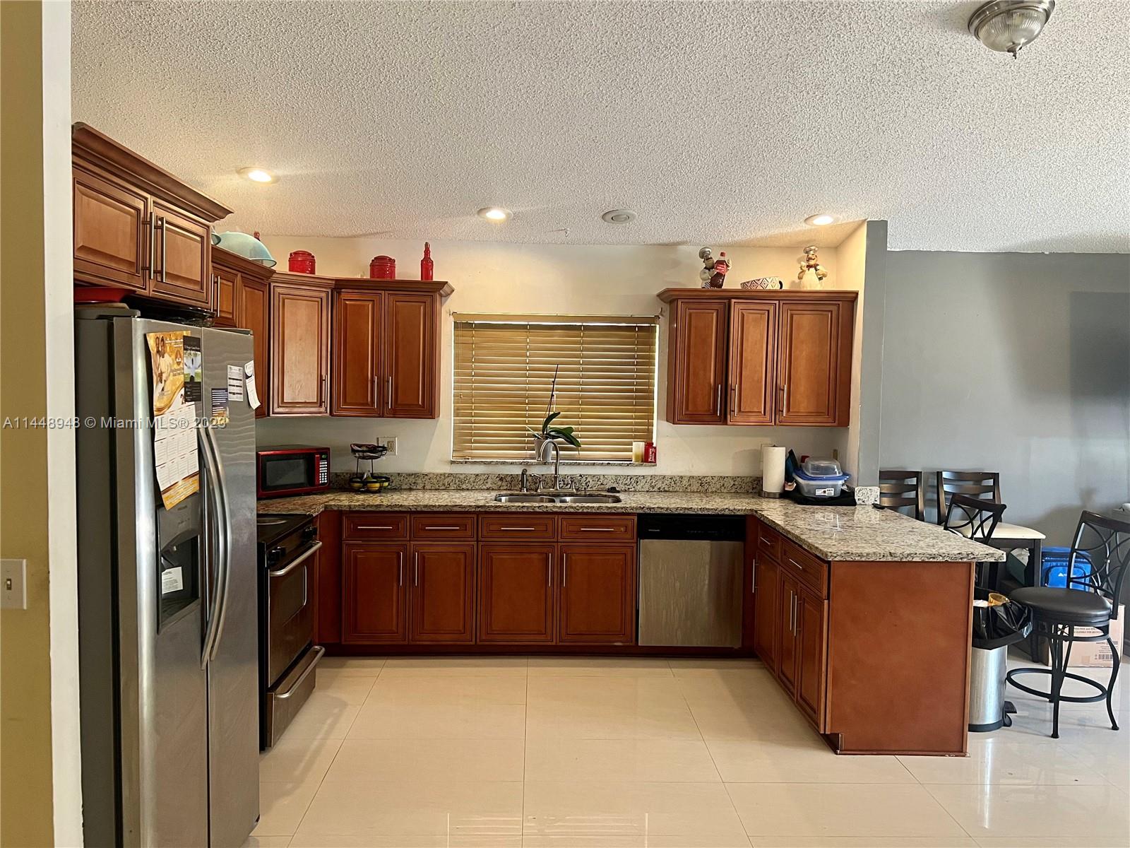 Beautiful updated one-story Lakefront Home in River Run! Home features 3 bedrooms & 2 baths and 2-car garage with well over 1,900 SQFT. Newer Roof(2018) Porcelain tile flooring in main living area and wood flooring in formal areas and in all the bedrooms. Home has a great open floor plan perfect for entertaining with volume ceilings and separate formal Living and dining rooms and a huge family room. The eat-in kitchen has been fully remodeled (2018) with upgraded new wood cabinets, granite countertops and stainless-steel appliances. Large backyard with beautiful water views perfect for get togethers. This home is centrally located near good schools, shopping malls, highway, park, and quick access to Miami and Fort Lauderdale airports and Beaches. A great opportunity make it yours!