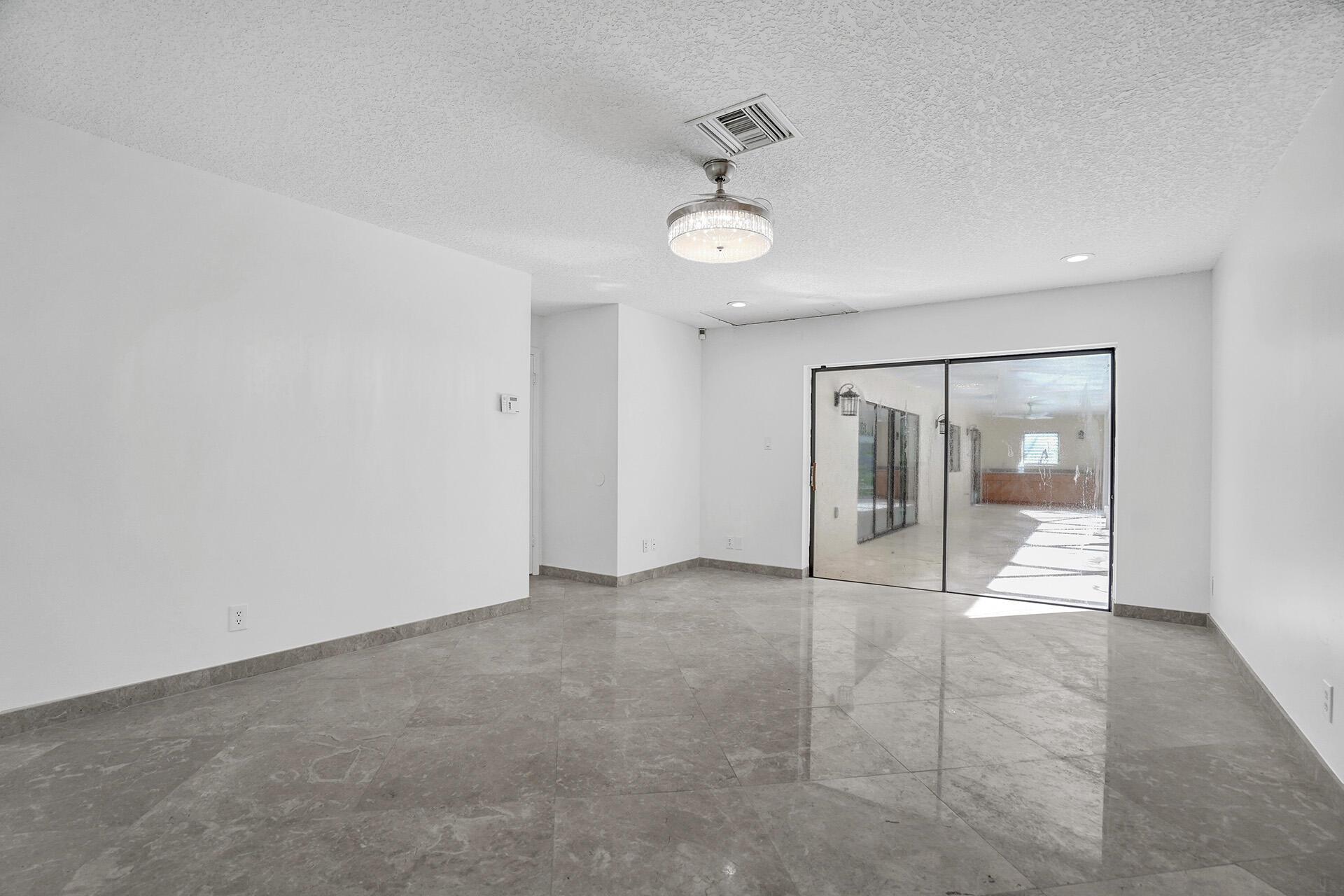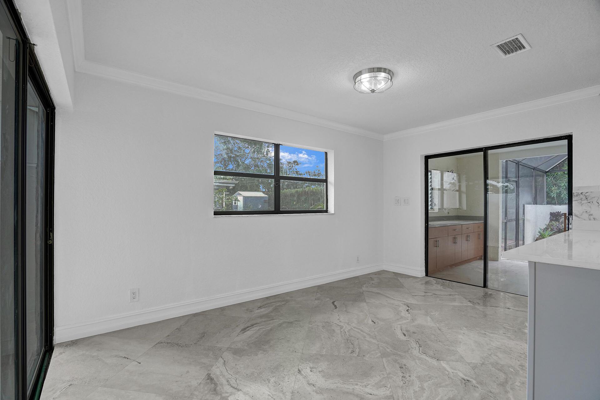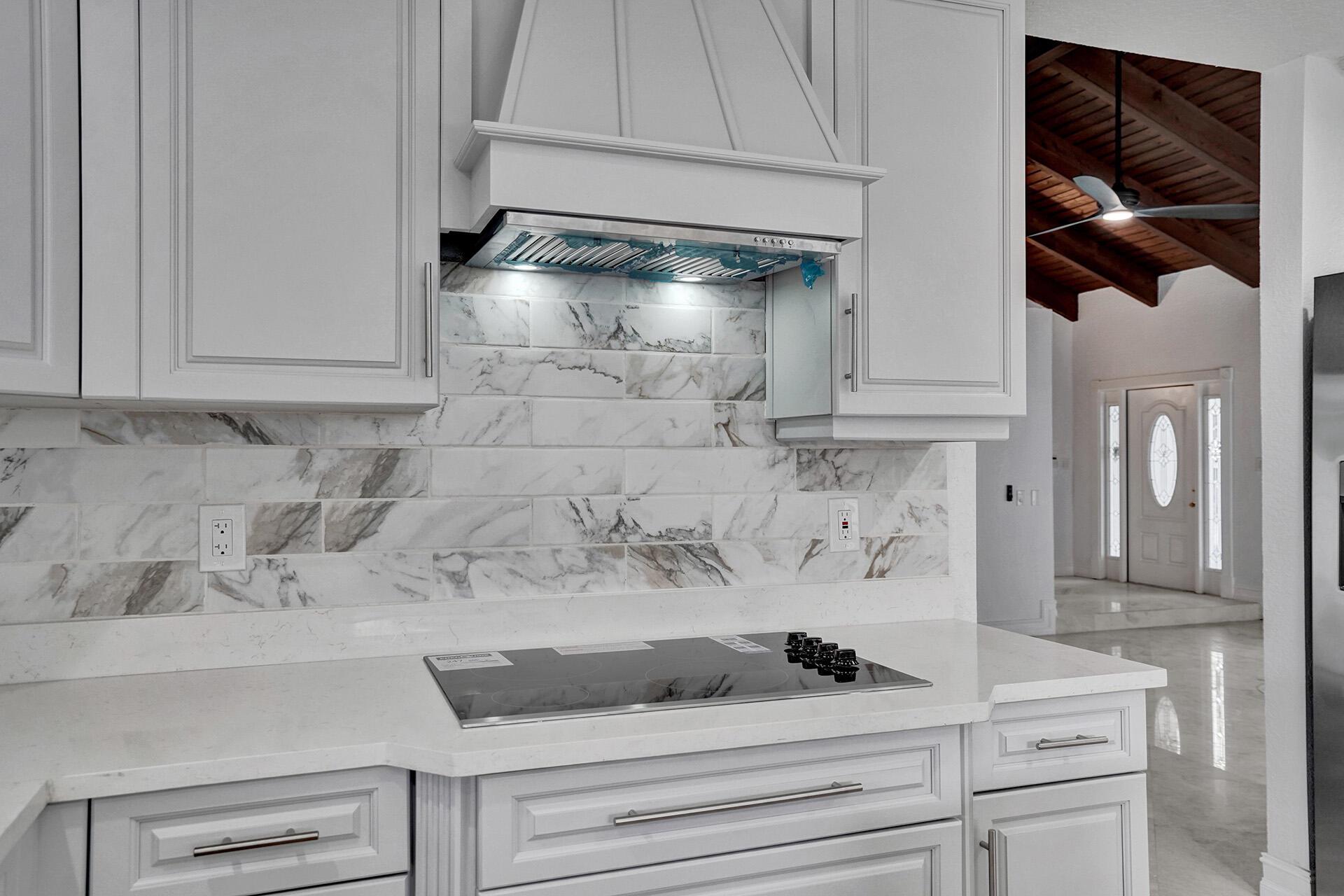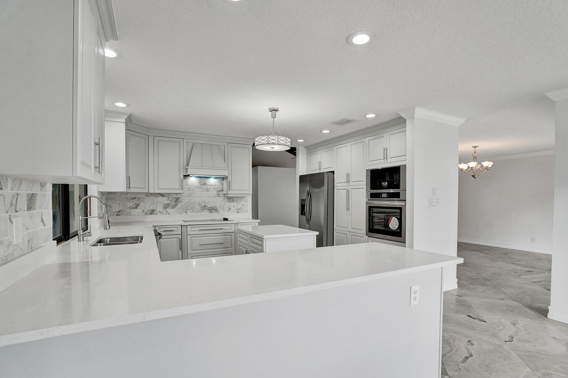 Seize the chance to view this recently renovated 4-bedroom, 2.5-bathroom home, nestled on an expansive lot, flaunting a generous circular driveway and a two-car garage. The newly installed flat tiled roof (April 2022) and partial impact windows and doors cannot be overlooked. Throughout, marble floors lead to stylish wooden cabinets in a contemporary layout, and the bathrooms feature dual sinks and modern touches. The refreshed kitchen boasts trendy paint tones, stainless steel appliances, and a breakfast nook adjacent to the formal dining area. An atrium off the kitchen offers an ideal space for a gym. Step outside to the vast pool deck, screened lanai, and serene waterfall adorning the pool patio.