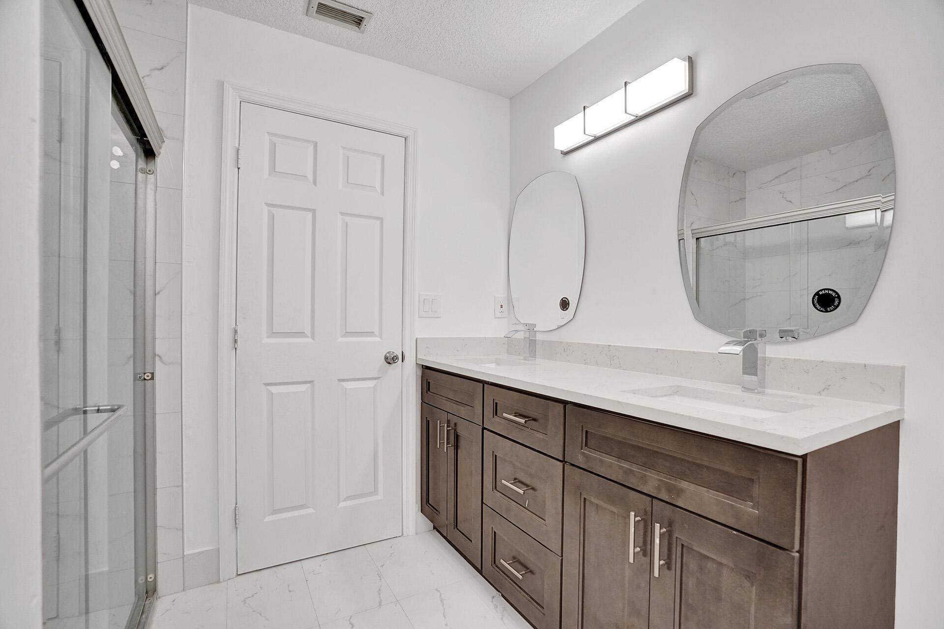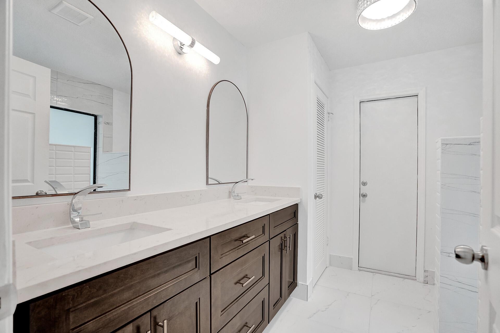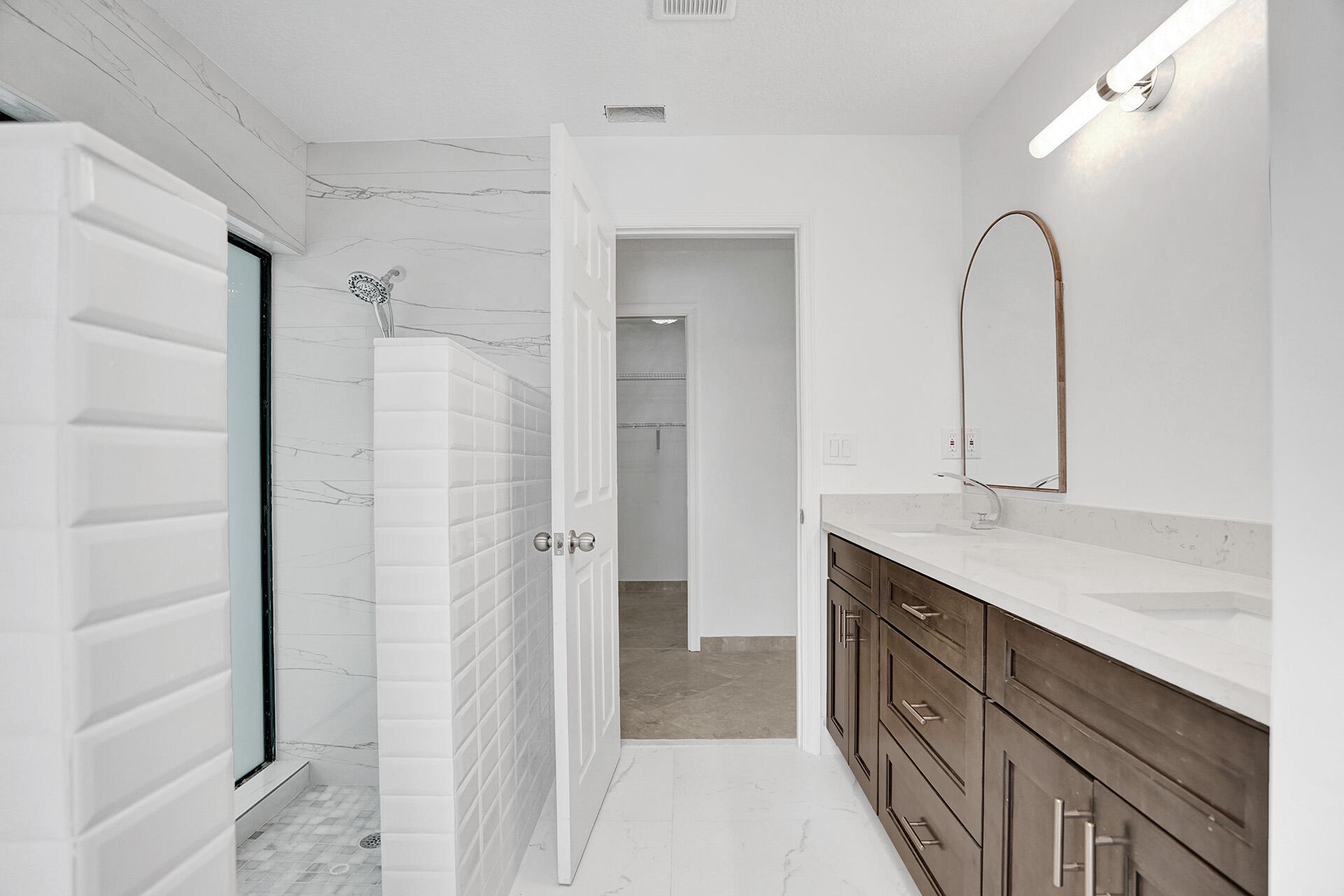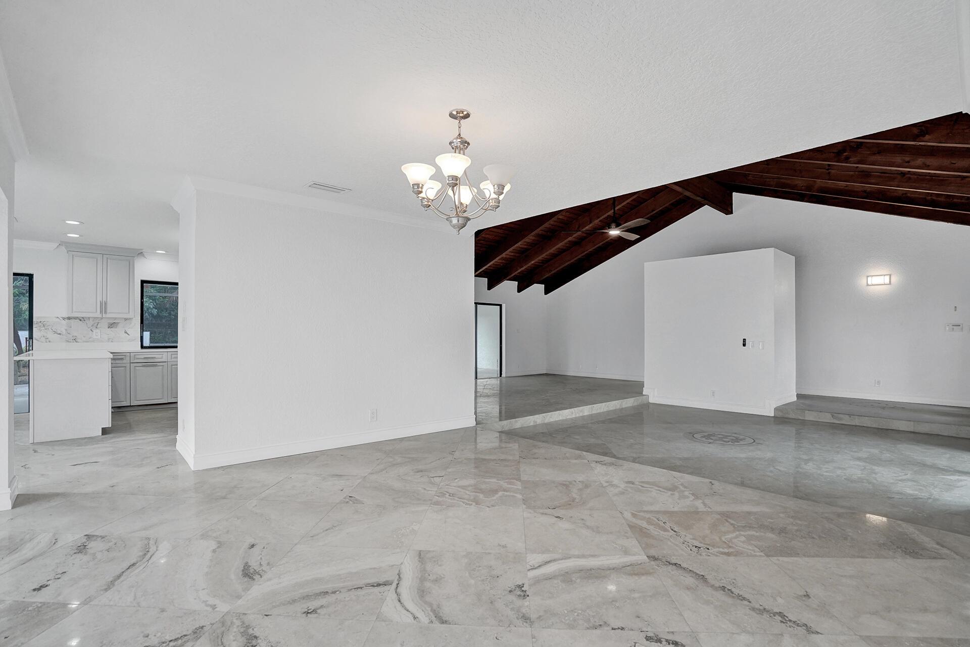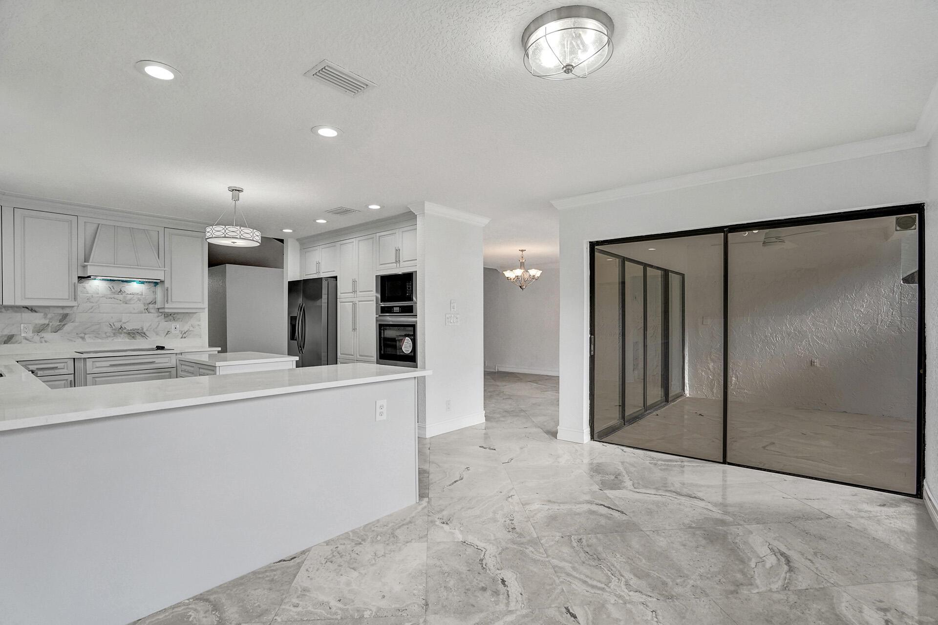 Seize the chance to view this recently renovated 4-bedroom, 2.5-bathroom home, nestled on an expansive lot, flaunting a generous circular driveway and a two-car garage. The newly installed flat tiled roof (April 2022) and partial impact windows and doors cannot be overlooked. Throughout, marble floors lead to stylish wooden cabinets in a contemporary layout, and the bathrooms feature dual sinks and modern touches. The refreshed kitchen boasts trendy paint tones, stainless steel appliances, and a breakfast nook adjacent to the formal dining area. An atrium off the kitchen offers an ideal space for a gym. Step outside to the vast pool deck, screened lanai, and serene waterfall adorning the pool patio.
