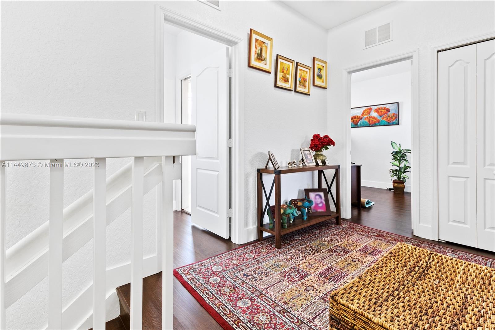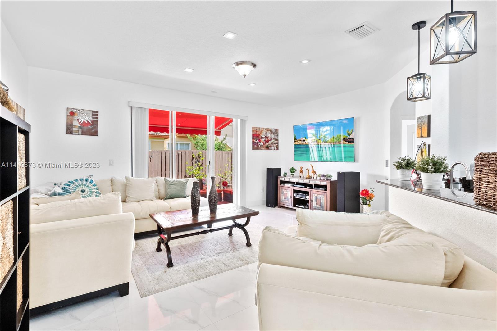 This modern townhome offers 4 bedrooms, 3 baths, with a convenient 1 bedroom and bath on the first floor. The property features elegant porcelanato flooring throughout and a beautiful kitchen with granite counters and a new refrigerator, Comfortable bedrooms, built-in closets for ample storage, laundry room, 2 car garage, patio, accordion shutters. This community offers a range of amenities, including a pool and gym. Plus, it's located in a top-rated school district, making it ideal for families.