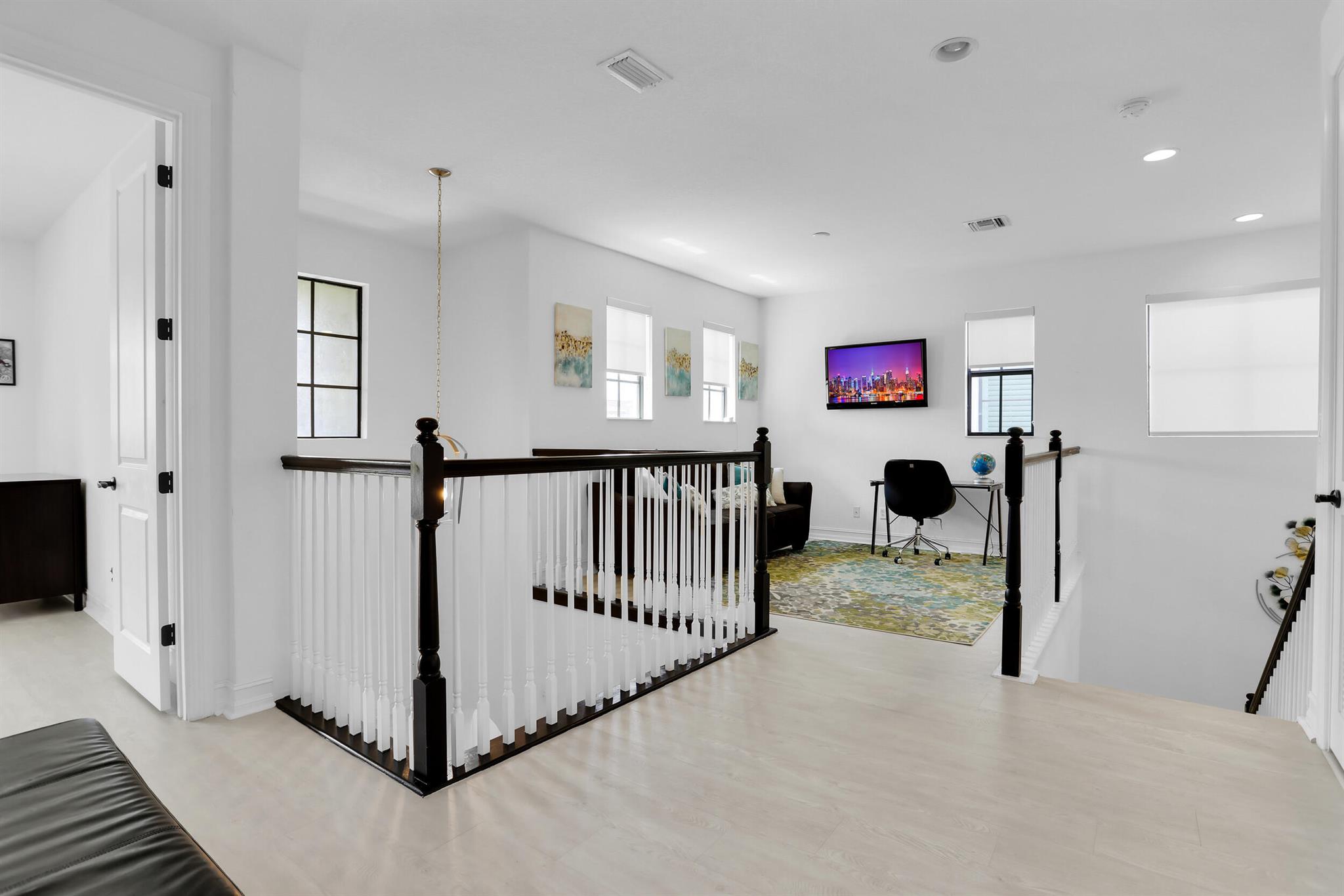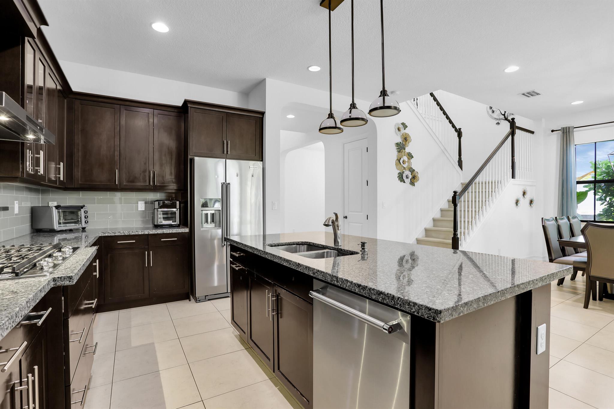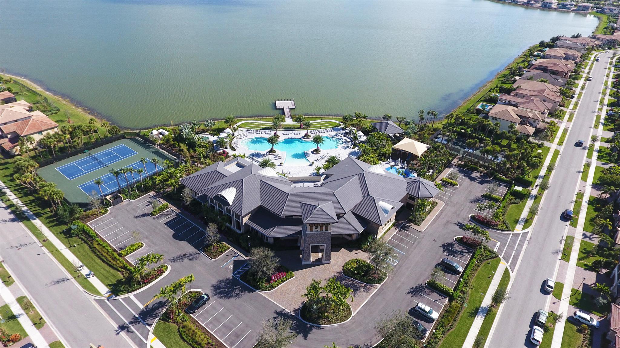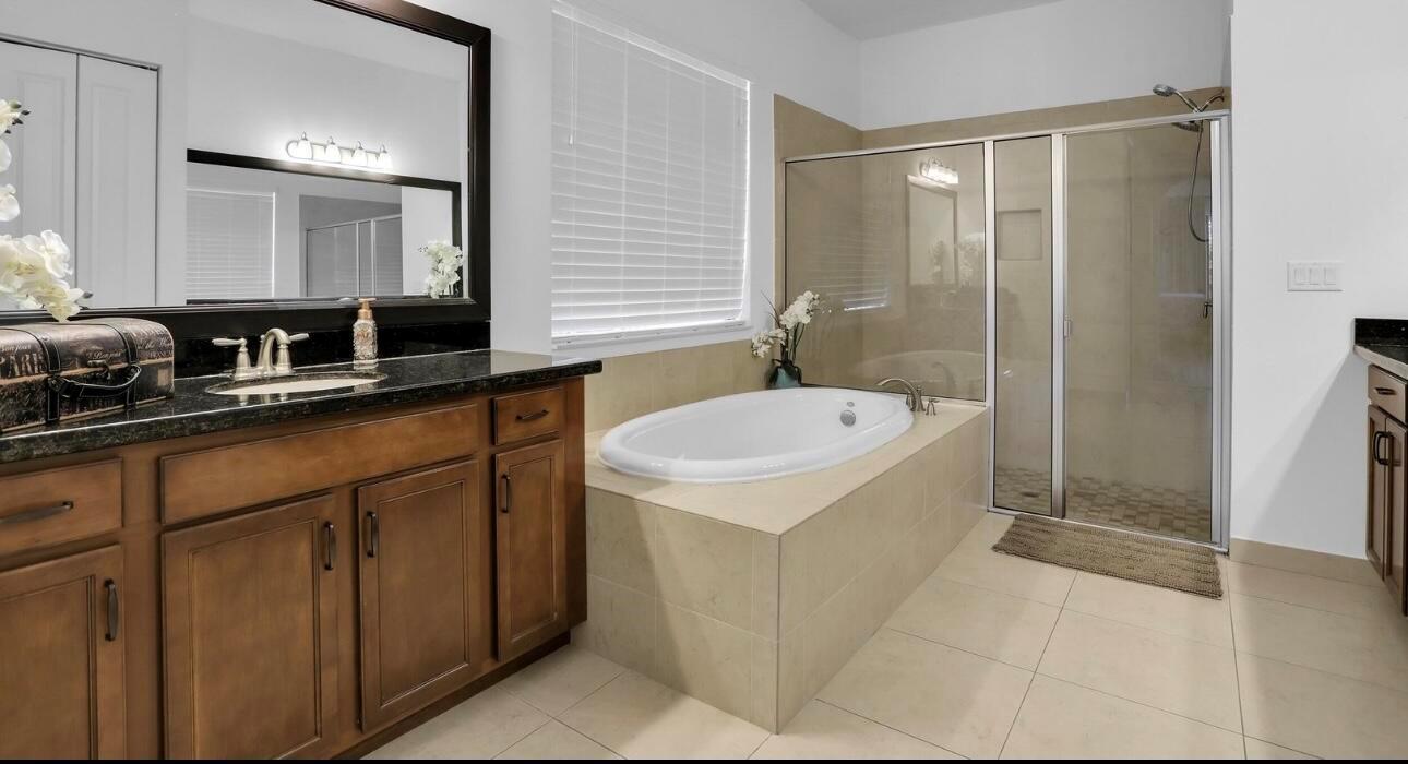MOTIVATED SELLER! MODERN & SPACIOUS 4 bedroom 4.5 bathroom POOL home with Open Floor Plan. PRIMARY BEDROOM DOWNSTAIRS. Office/Den downstairs. This home features designer detaiils. Ceramic tile, custom arches & exposed beam ceilings. Hurricane impact windows & doors. Gourmet kitchen features stainless steel appliances, granite countertops & oversized island with bar seating. Ground floor owner's suite offer bath with dual vanities, sep tub & shower. 2 walk-in closets. Outdoor space includes covered terrace, sundeck & pool with water feature. Fencing & lush landscaping offer added privacy. Upstairs bonus loft area plus expansive outdoor balcony. Resort-style community amenities include lakeside pool & spa, clubhouse, fitness studio, tennis,/basketball courts, dog park, A Rated schools