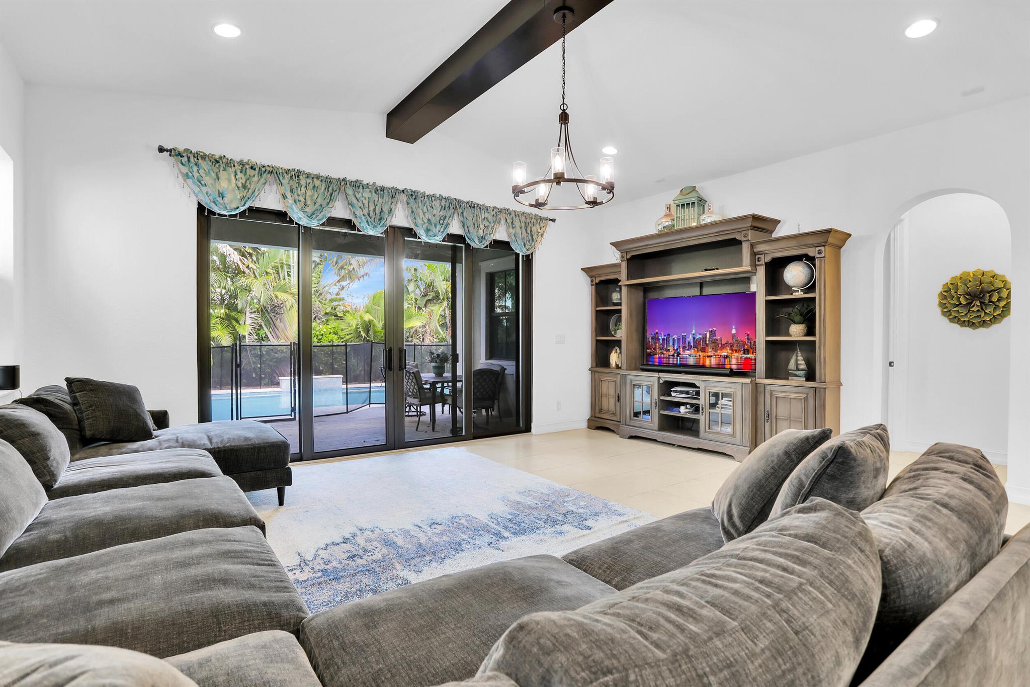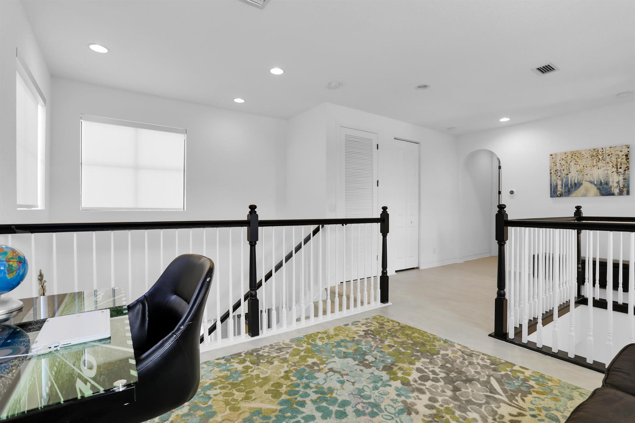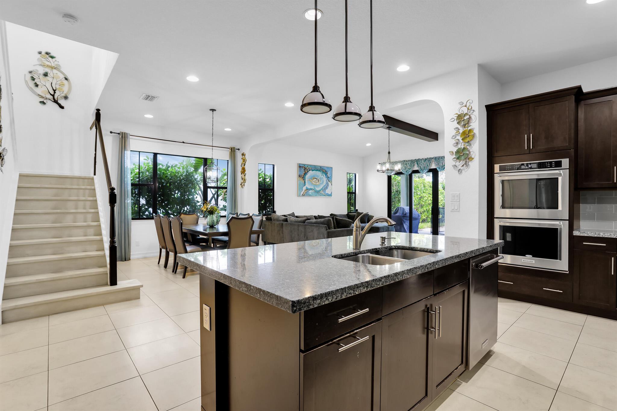 MOTIVATED SELLER! MODERN & SPACIOUS 4 bedroom 4.5 bathroom POOL home with Open Floor Plan. PRIMARY BEDROOM DOWNSTAIRS. Office/Den downstairs. This home features designer detaiils. Ceramic tile, custom arches & exposed beam ceilings. Hurricane impact windows & doors. Gourmet kitchen features stainless steel appliances, granite countertops & oversized island with bar seating. Ground floor owner's suite offer bath with dual vanities, sep tub & shower. 2 walk-in closets. Outdoor space includes covered terrace, sundeck & pool with water feature. Fencing & lush landscaping offer added privacy. Upstairs bonus loft area plus expansive outdoor balcony. Resort-style community amenities include lakeside pool & spa, clubhouse, fitness studio, tennis,/basketball courts, dog park, A Rated schools
