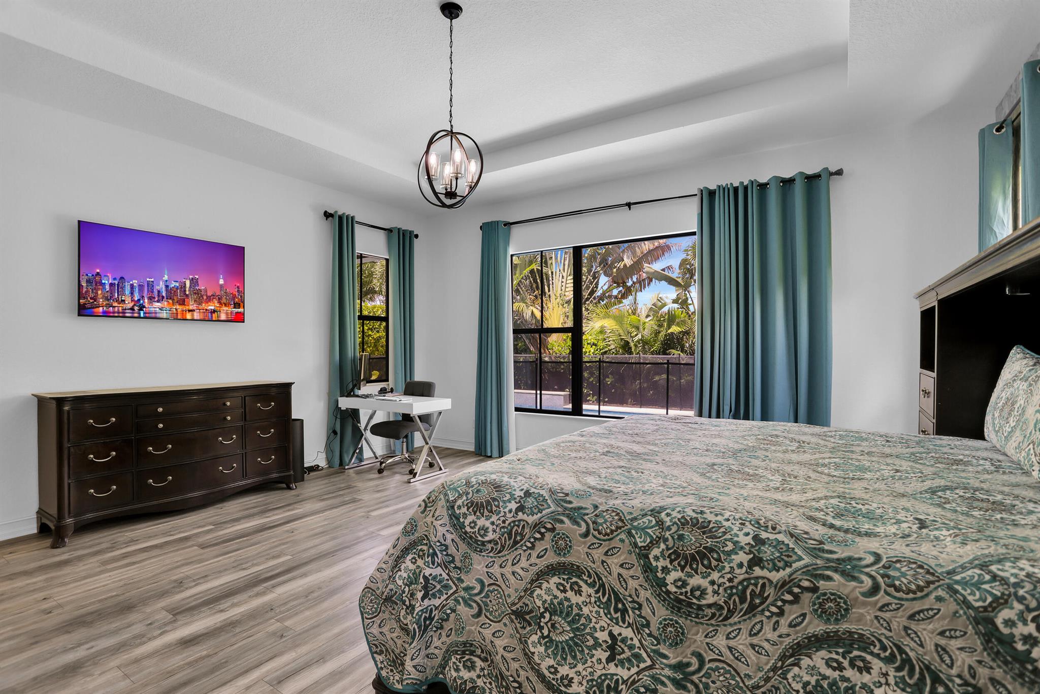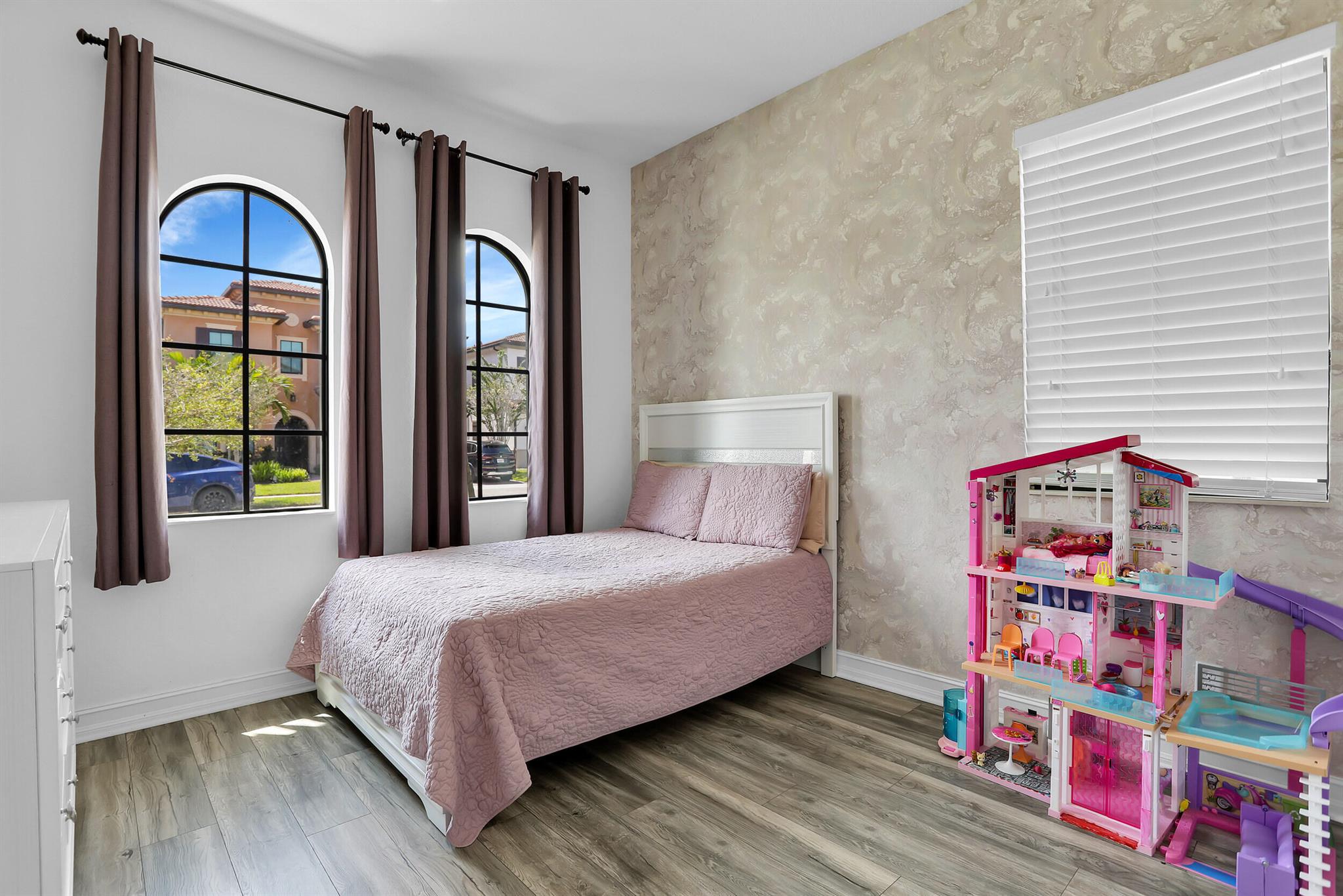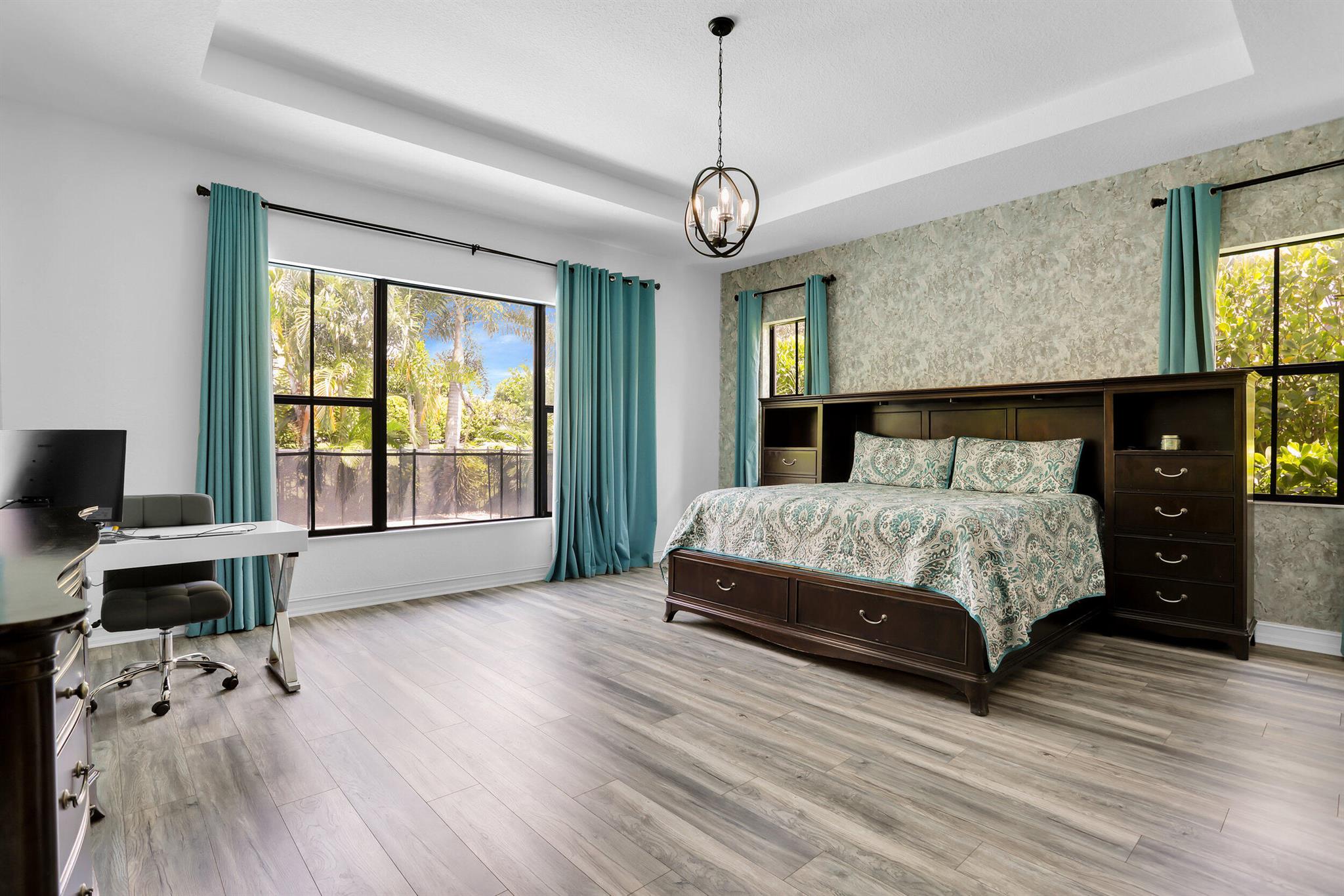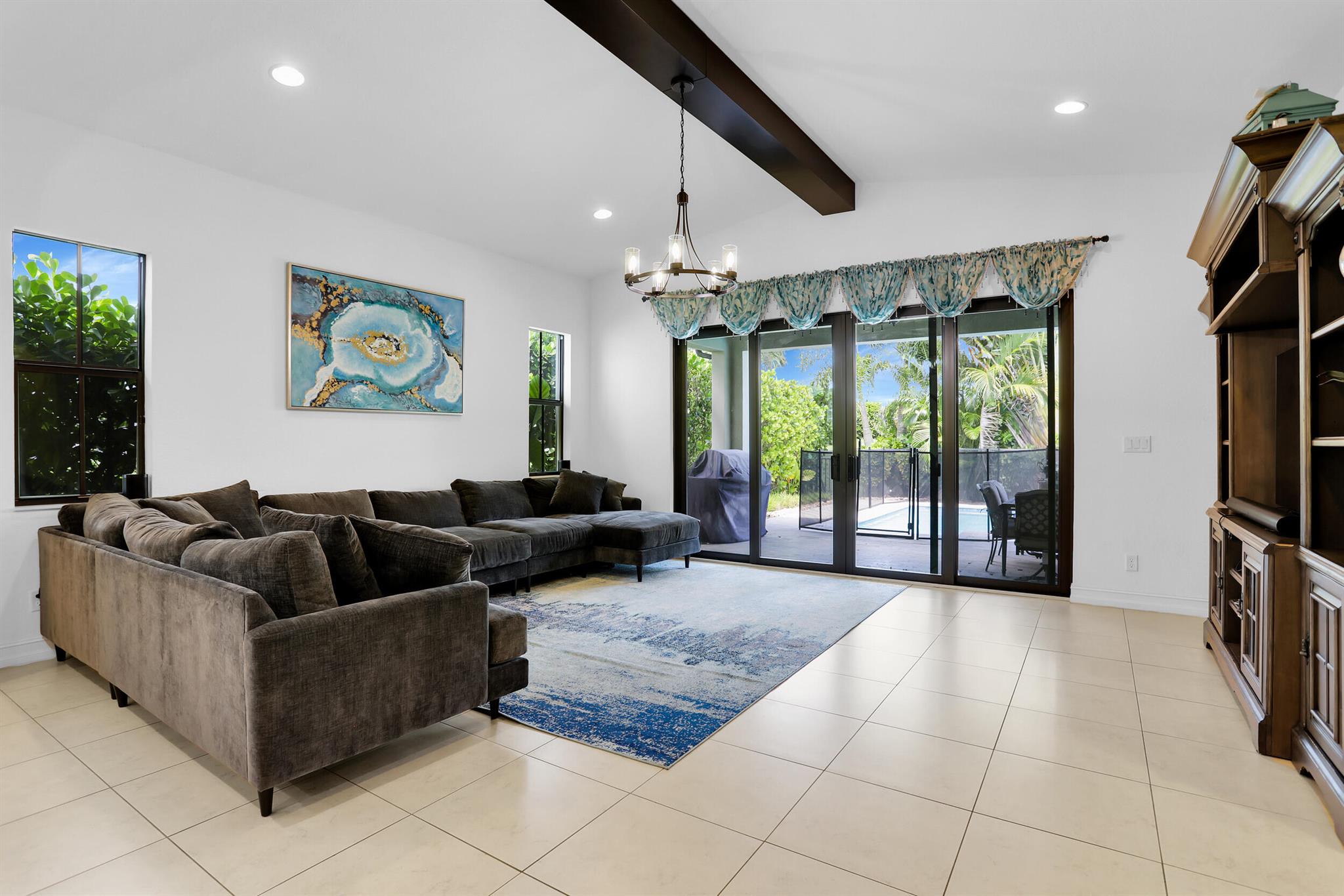 MOTIVATED SELLER! MODERN & SPACIOUS 4 bedroom 4.5 bathroom POOL home with Open Floor Plan. PRIMARY BEDROOM DOWNSTAIRS. Office/Den downstairs. This home features designer detaiils. Ceramic tile, custom arches & exposed beam ceilings. Hurricane impact windows & doors. Gourmet kitchen features stainless steel appliances, granite countertops & oversized island with bar seating. Ground floor owner's suite offer bath with dual vanities, sep tub & shower. 2 walk-in closets. Outdoor space includes covered terrace, sundeck & pool with water feature. Fencing & lush landscaping offer added privacy. Upstairs bonus loft area plus expansive outdoor balcony. Resort-style community amenities include lakeside pool & spa, clubhouse, fitness studio, tennis,/basketball courts, dog park, A Rated schools
