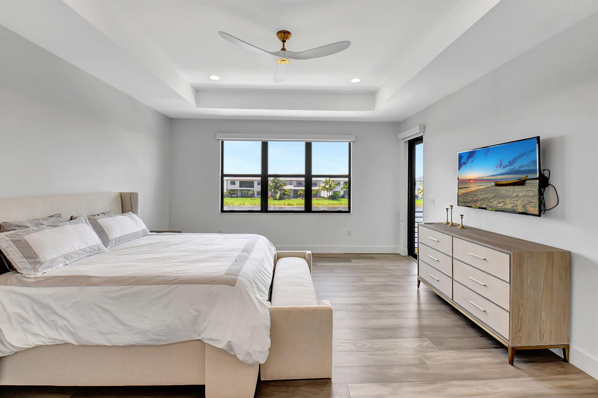 Professionally decorated 5-bedroom + office + bonus room home with one of the best views in Lotus! Barely lived-in Maldives model complete with window treatments and full-house generator. Gourmet kitchen has a double waterfall island and all Wolf & Sub Zero appliances. Master suite has 2 custom walk-in closets, and a master bath with 2 sinks, large shower, and stand-alone tub. All guest bedrooms are ensuite with built-out closets. Outside, enjoy sunsets with Western exposure in the backyard, an oversized pool, and stunning lake views. Furniture is negotiable.