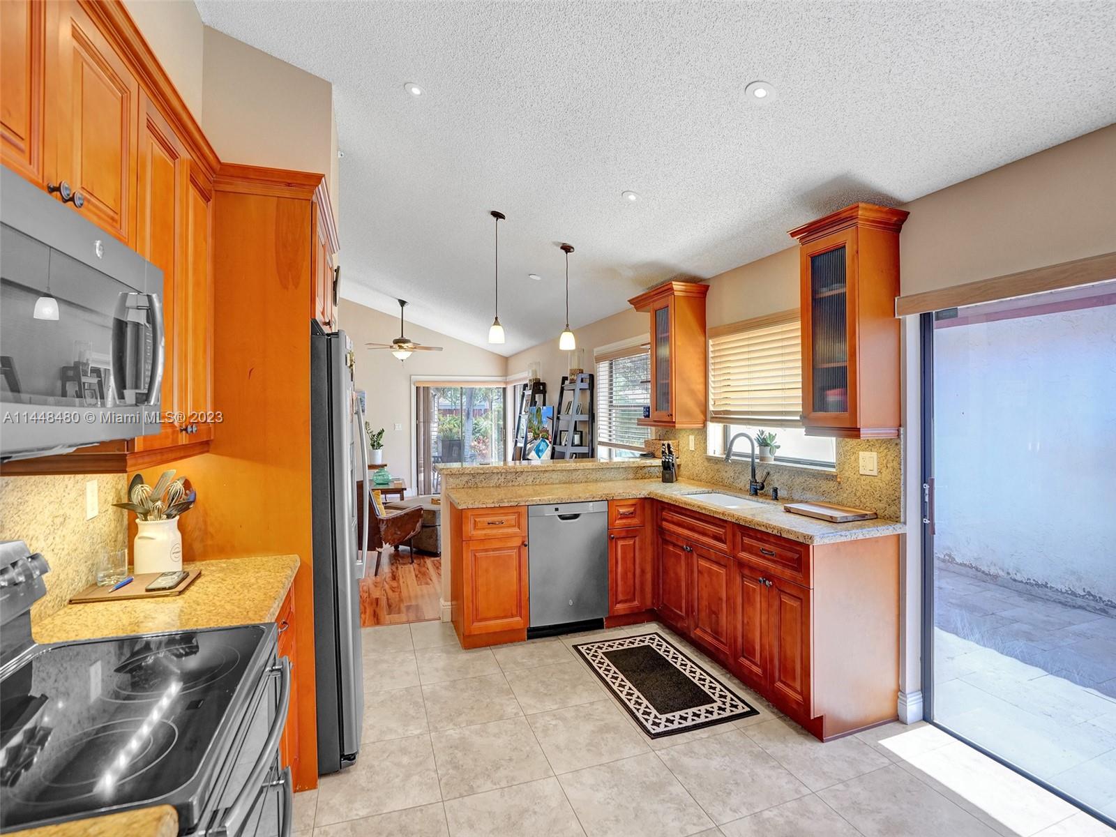 This 3 Bed, 2 Bath pool home in Pembroke Pines' Pasadena community is move-in ready with a brand new roof! This home offers commercial grade vinyl flooring, an open layout, high vaulted ceilings, and many windows which welcome in the natural light. The primary bedroom has an en-suite bathroom, 2 walk-in closets, and sliding doors out to the pool. You will find two additional and spacious bedrooms which are perfect for families and/or a work from home environment. Step outside to a gorgeous travertine tiled patio overlooking the pool and enjoy a low-maintenance backyard with new landscaping and artificial turf. With excellent schools, shopping, and dining nearby, this home is your tranquil oasis in Pembroke Pines—schedule a showing today!