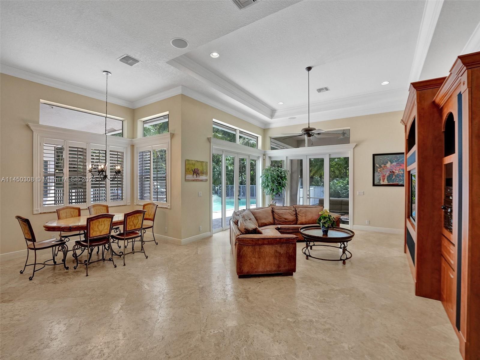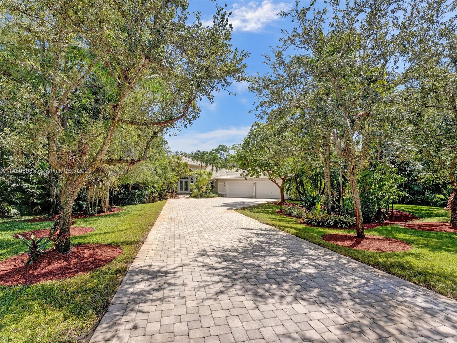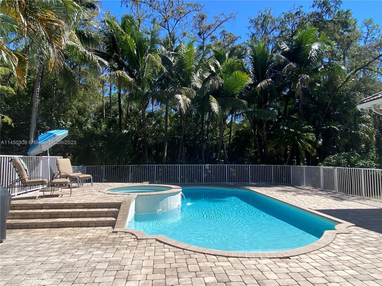 Pristine 5/4 in PINE TREE ESTATES on 1.09 acres of lush tropical landscaping w/ secluded yard to enjoy cook outs w/ family and friends. 3700+ sq ft under air -split floor plan. No HOA! Brand NEW DIAMOND BRIGHT pool and jacuzzi surface. Beautiful plantation shutters on interior windows. Whole home Impact windows. Breakfast nook in large family room w/ extra bar height seating in kitchen. Kitchen has wood cabinets w/ roll outs and granite. SS appliances. Primary bedroom offers ample space to relax w/ aesthetically pleasing views of pool and backyard. Extra large bathroom has two bright white vanities w/ large jacuzzi tub. Two bedrooms share Jack/Jill bathroom and one additional bedroom w/ ensuite bathroom. Screened back porch. Freshly painted exterior. 3.5 car garage w/ 2 E V chargers.