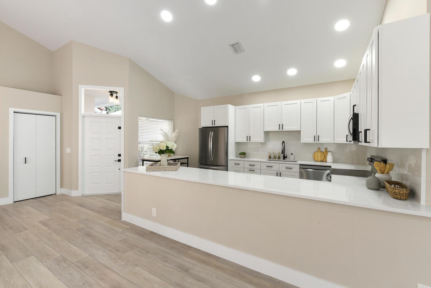 PRICE REDUCTION. HIGHLY MOTIVATED SELLER!! Best value in Banyans / Broken Sound Charming & tranquil completely remodeled home located on a quaint cul-de-sac in the Banyans of distinguished Broken Sound Country Club awaits your arrival! Mandatory Membership Fee and Mandaroty Membershio This 3 bedroom, 2 bath home has an abundance of natural light and an open floor plan where high-volume ceilings seamlessly connect all living & dining spaces. The heart of the home is the white shaker cabinet kitchen, stainless steel appliances & quartz waterfall countertops. Floor to ceiling sliders both in the living room & master bedroom open to a very private garden pool. NEW A/C & water heater. $30 Mil clubhouse renovation completed All A rated school