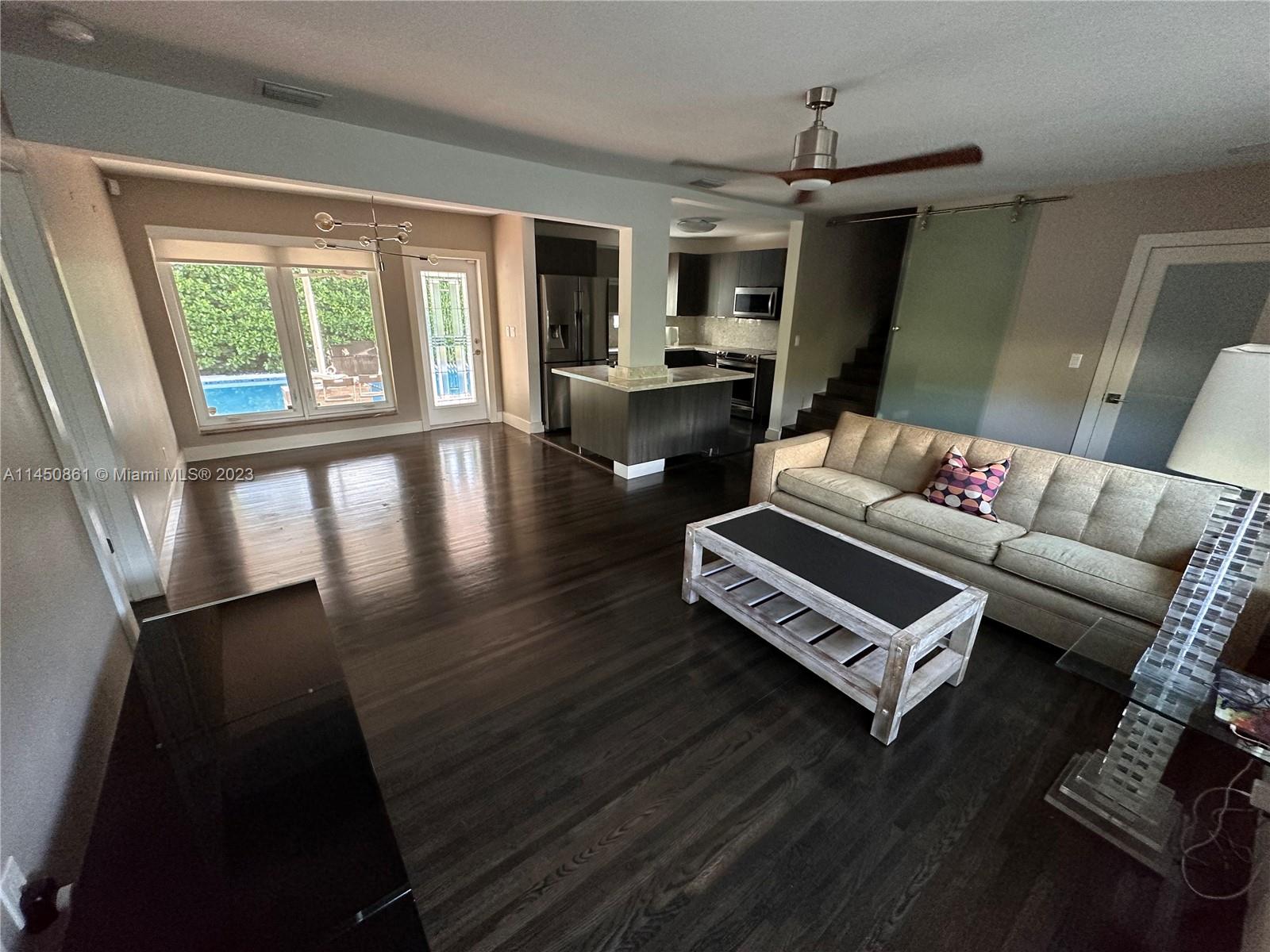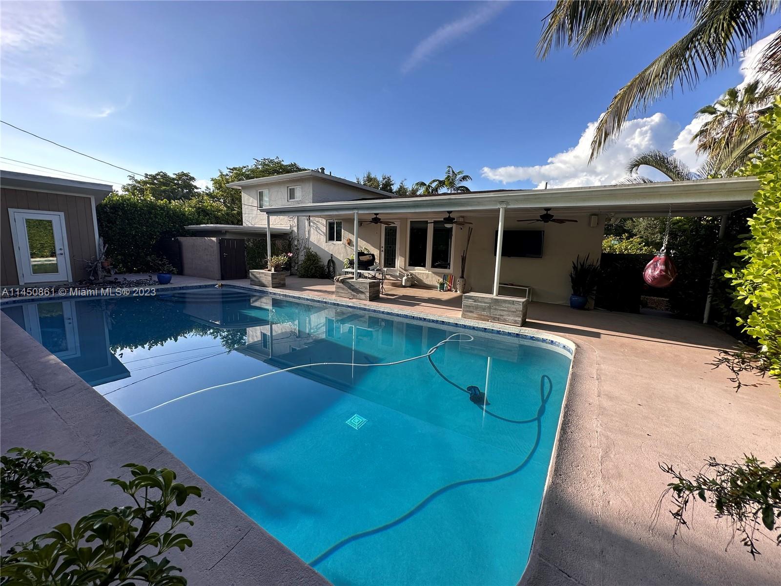 Home has undergone extensive renovations to give it a contemporary ambiance. The master bedroom has been converted into a luxurious master suite. The backyard serves as a secluded paradise, where you'll find yourself wanting to spend all your leisure hours. Abundant green hedges surround the property, and there is a separate she shed located at the back. This versatile space can be utilized as an exercise room, office, craft room, man cave, and many other possibilities. Additionally, all windows and doors are hurricane impact resistant. The living room is filled with ample natural light and exudes a sense of openness. There is a camera system, alarm system, and special variance that allows one recreation vehicle. INLAW QUARTERS is a separate 1/1 on property to the side very private.