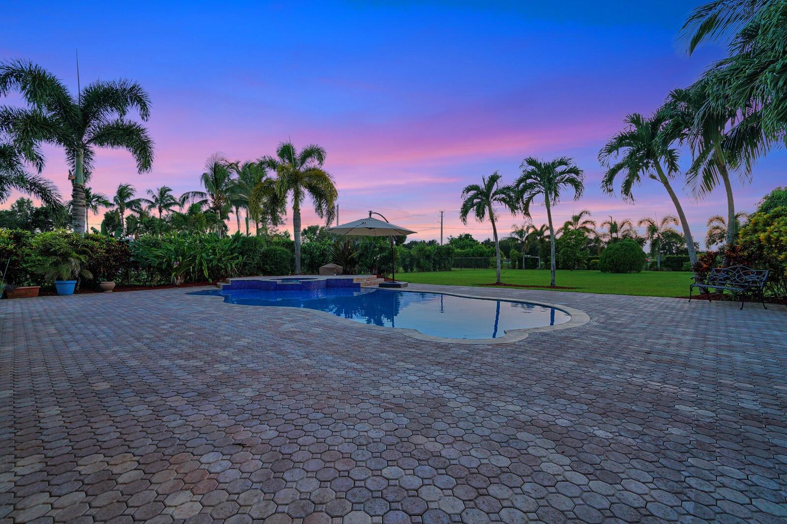 WHAT A SUNSET!!!!!!!!!! The expansive backyard of this oversized lot frames the open spaces of this home like a painting. The Builder's Acre lot can house a barn (with up to 3 horses) or a structure for mobile home, boat, etc. given you can access your lot from Boy Scout Road and the Equestrian Trail along the canal. The custom pool and house sits on about 1/3 of the lot with access to drive into the backyard from the front of house. The open floor plan of the interior of the house flows from room to room while providing divisions that can be embellished or removed. The wide/deep driveway can accommodate multiple vehicles with easy access via cul-de-sac plus 3 car garage provides protection/additional space for your prized possessions. COME BY AND BE WOWED BY WHAT THIS HOME HAS TO OFFER!!!