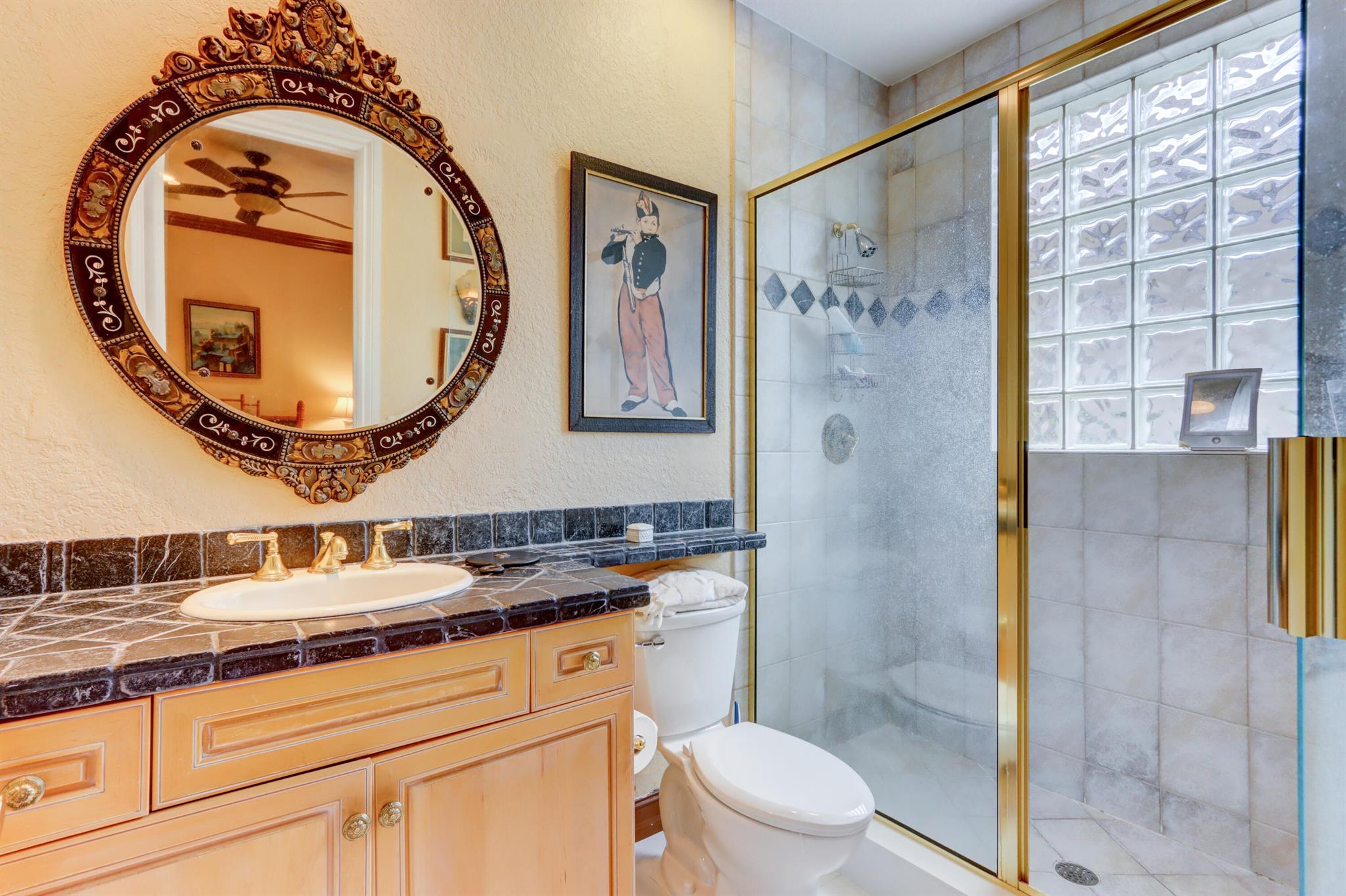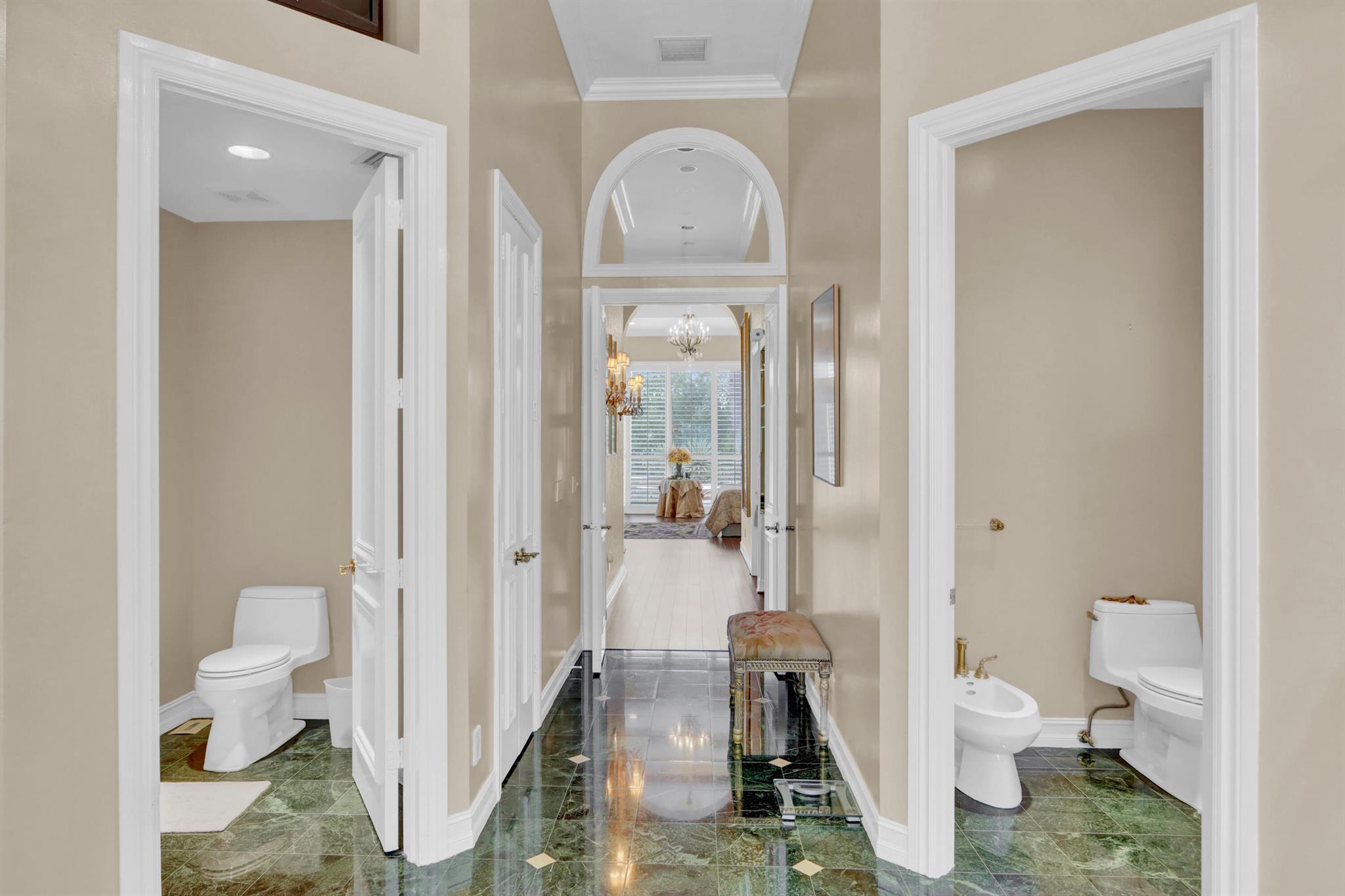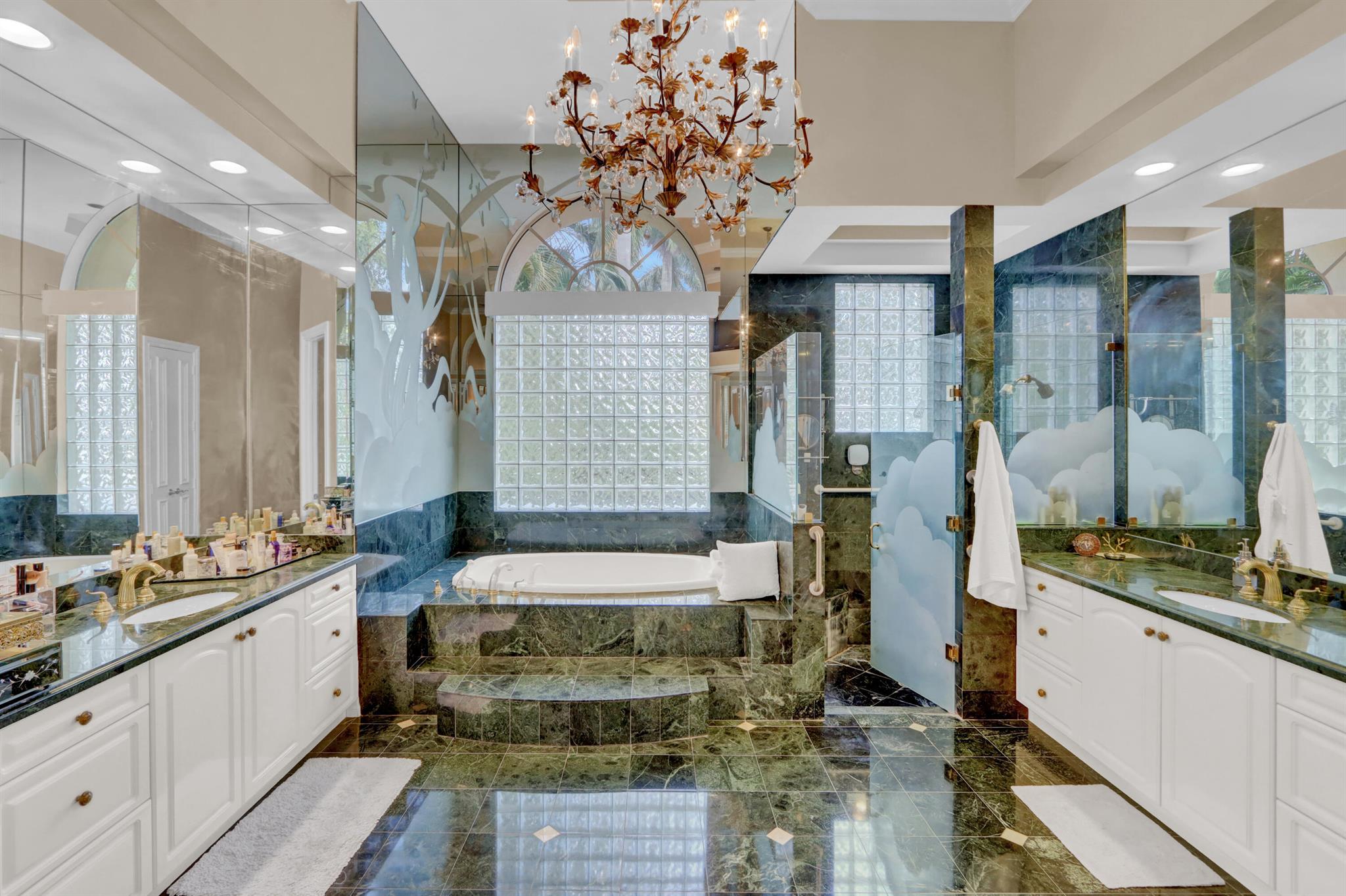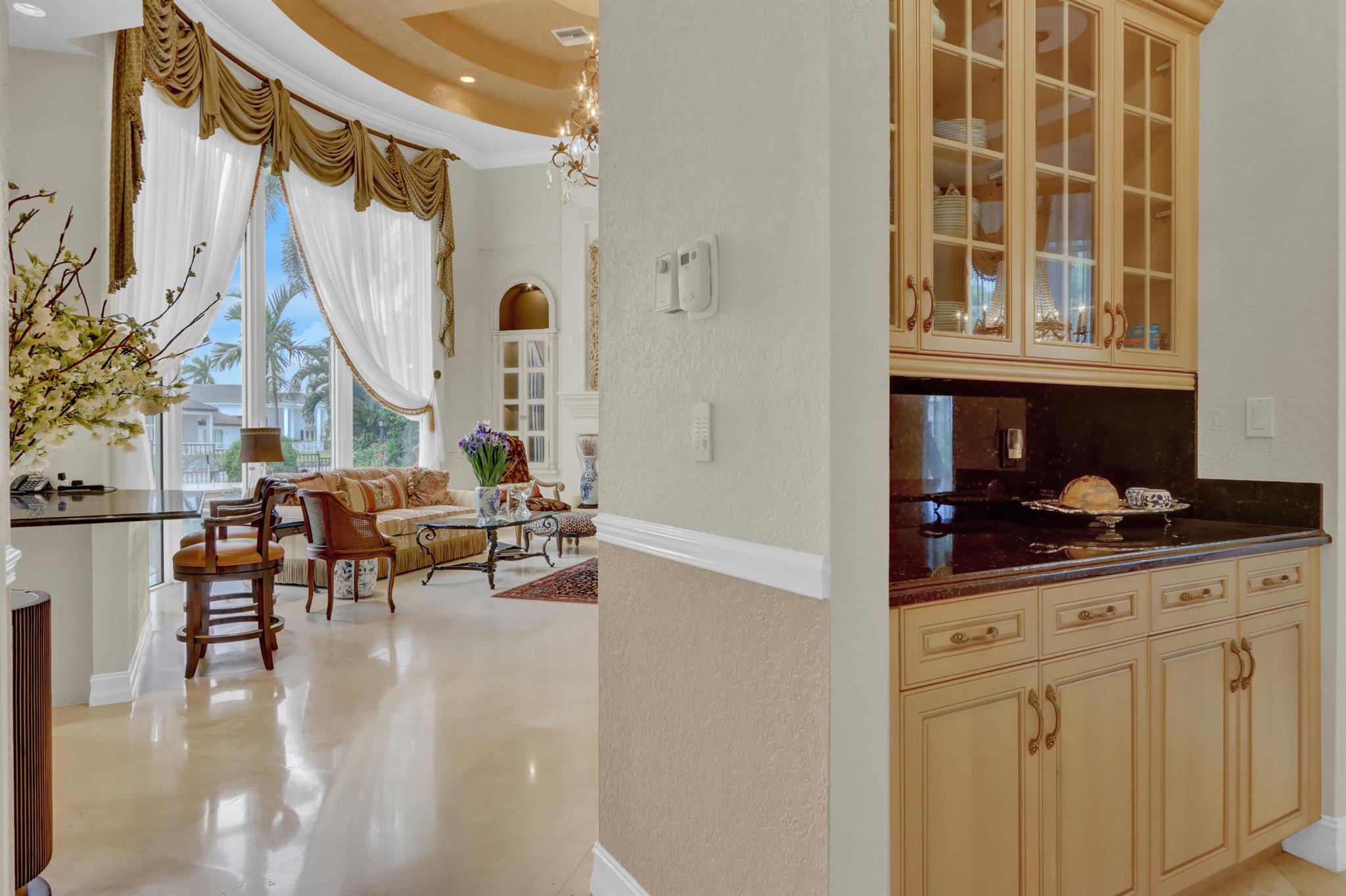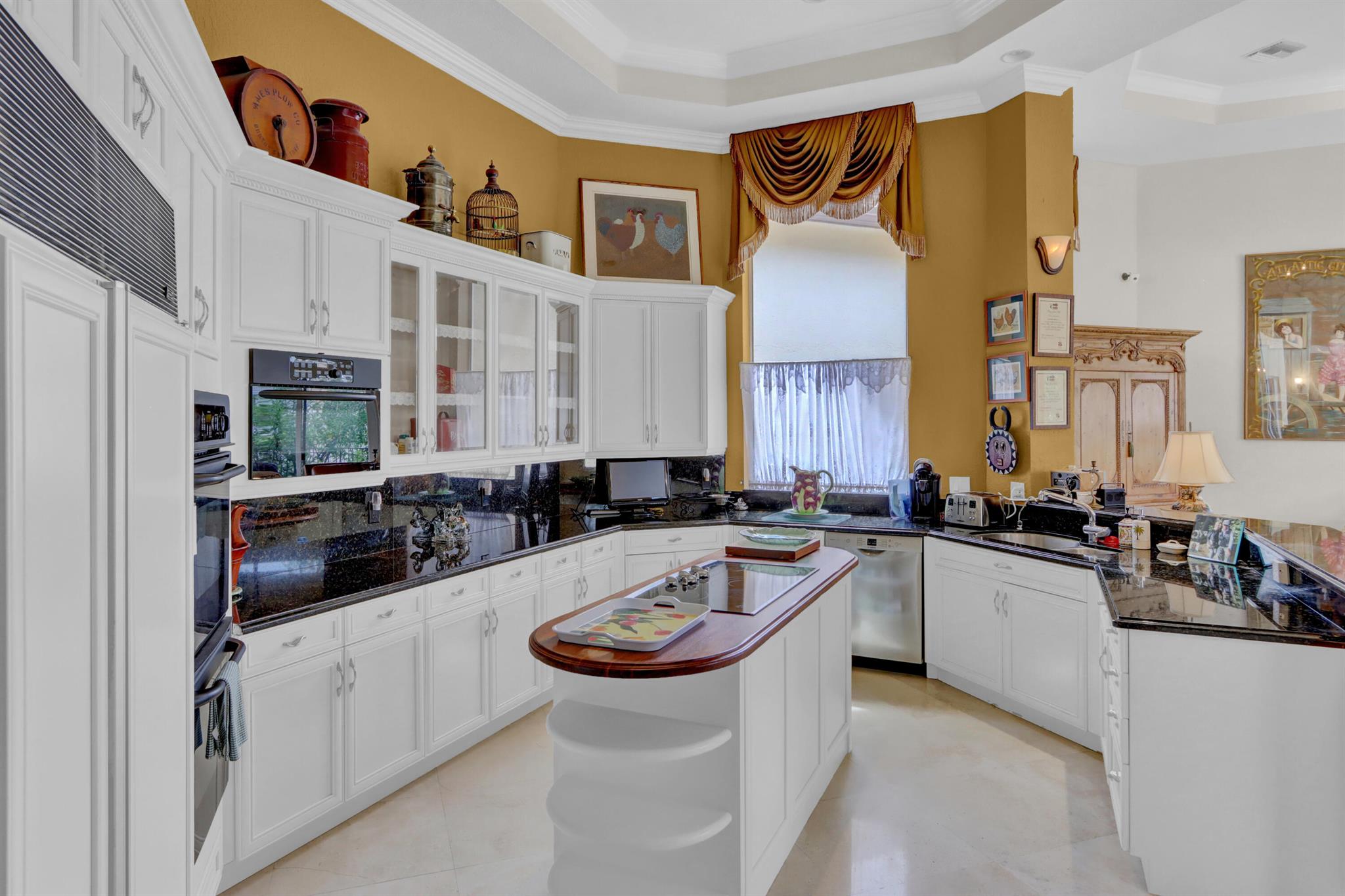 GOLF MEMBERSHIP TRANSFERABILITY! Don't miss this opportunity to play golf immediately! Lake views fill this sprawling custom one-story estate of Mediterranean old-world charm with 4 bedrooms plus an office,hobby room, 3-car garage & circular driveway featuring volume ceilings with crown moldings; Saturnia marble, hardwood & luxury vinyl floors; plantation shutters, wood blinds & custom shades; spacious Living Room with a fireplace & wet bar; elegant built-in library; island kitchen with white 42' cabinetry,black granite countertops & backsplash & a lovely breakfast nook overlooking the pool area & lake. The rear patio offers spacious open, covered & phantom screened areas with an oversized pool & spa and beautiful lake vistas!