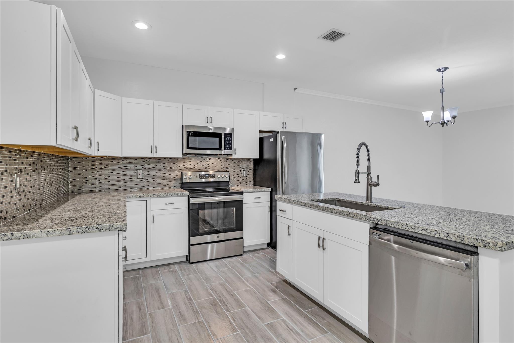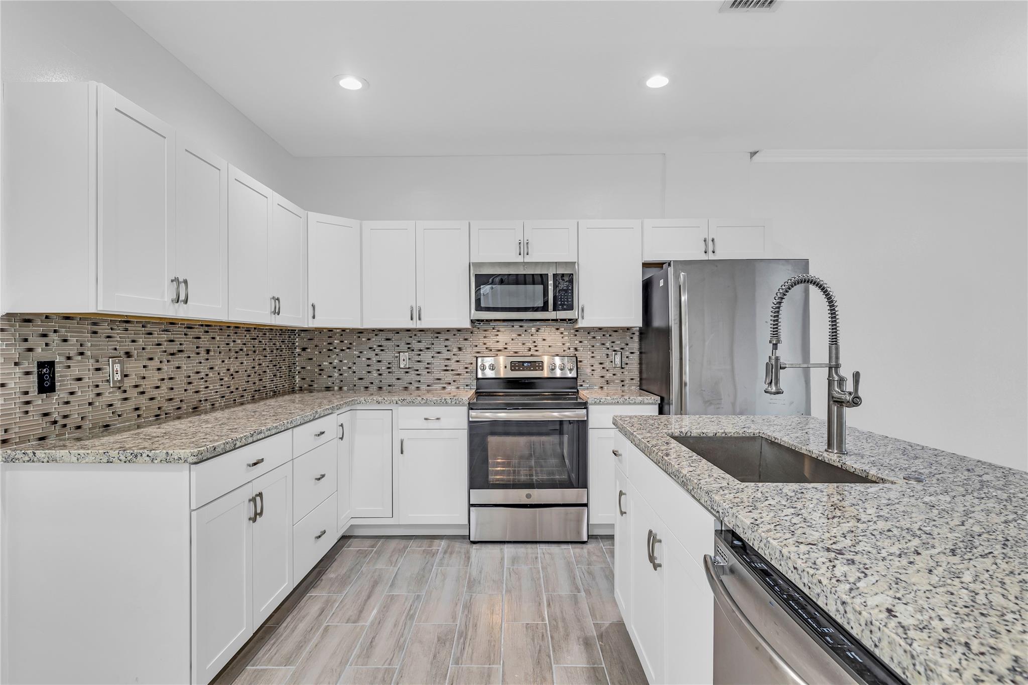 Beautifully updated 3 beds 2.5 bath 2 story townhouse in a gated, well-manicured, all ages community of Pine Bay. Located next to Discovery Elementary School this spacious townhouse features new kitchen, new appliances, new wood look tile throughout, new washer and dryer upstairs, second and third bedrooms with Jack and Jill bathroom, covered back patio with screen enclosure, one car garage and two car driveway, brick paver driveway. Community offers swimming pool and low maintenance fees. Investor friendly - rent right away. Pet friendly. Owner will install new AC before the closing.