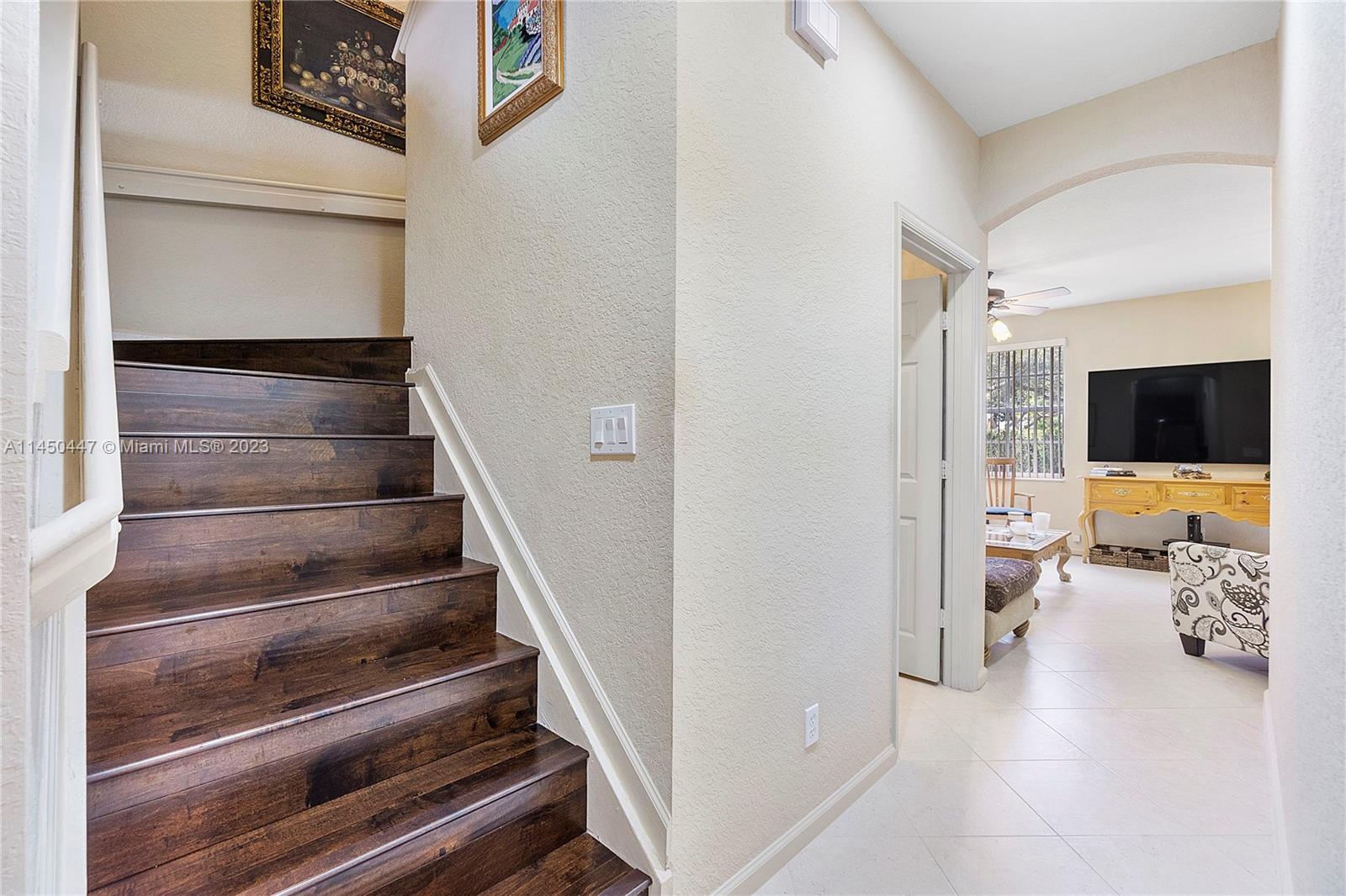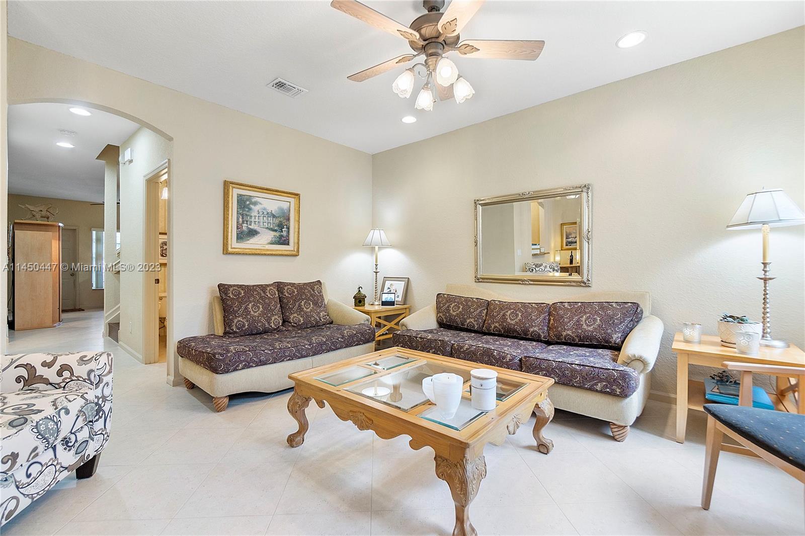 Immaculate 3/2.5 Key West-style townhome offers maintenance-free living! Upgraded, tasteful, and neutral finishes throughout. Enter via a lovely screened front porch – perfect for morning coffee. Downstairs features living room, family room/dining area, and kitchen with all stainless appliances and generous counter space plus breakfast area overlooking back patio. A half bath, pantry and laundry area round out the highly livable floor plan. Upstairs, a large primary suite has walk-in closet and bath with jacuzzi tub, separate shower and dual sinks. Two nicely proportioned secondary bedrooms sit across the open loft – excellent space for office, library, or play area. New roof and exterior paint in 2022, 2-car garage, hurricane shutters and A+ location near schools, parks and expressway.