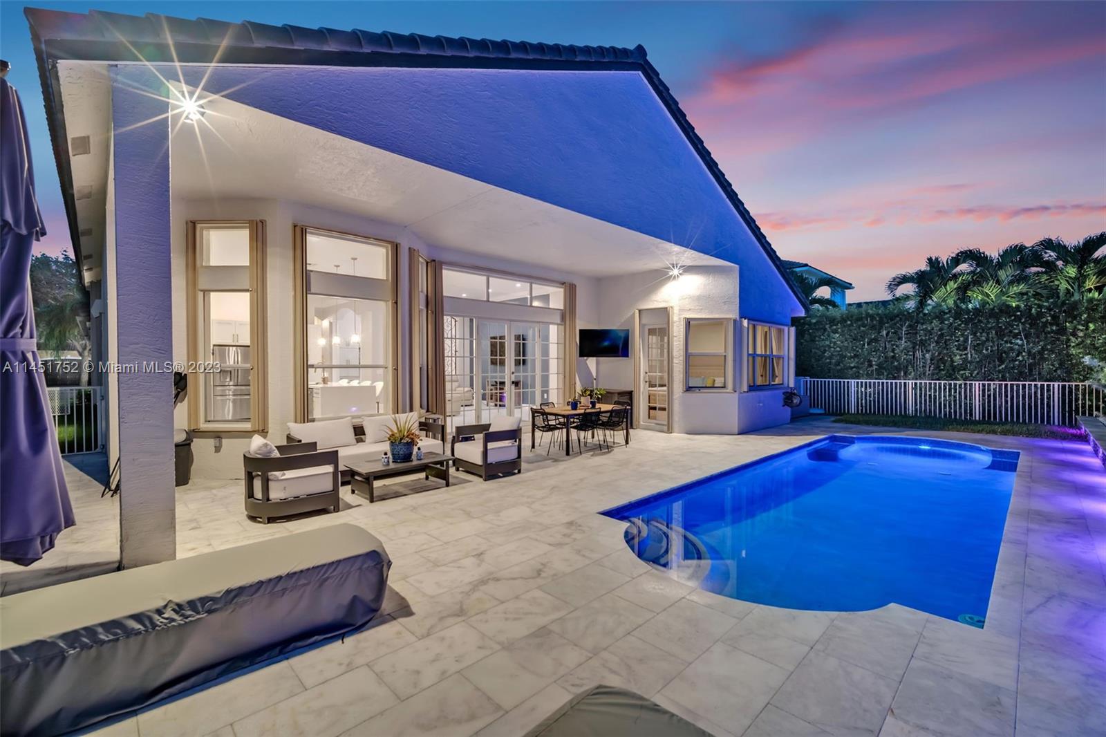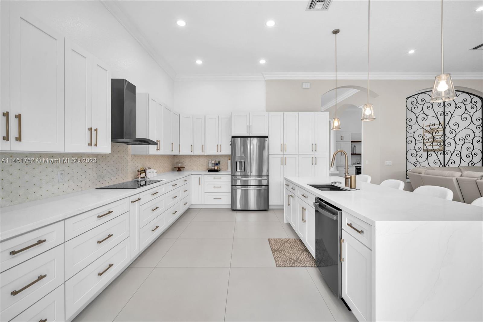 Stunning move-in ready home in Sunset Lakes, this 5/3 ONE STORY magnificent home has been completely renovated with the most exquisite taste. Newer roof (2019) New AC units (2023), Newer WH 2019, All brand new kitchen with GE profile appliances (2023) Custom Bar, perfect for entertainment. Fantastic floor-plan with enough social areas, high ceilings, renovated bathrooms, built in closets, elegant pool, resurfaced with pebble tech, Marble stone pavers around pool area. Privacy landscaping in the backyard with ambient lighting, entire home has been re-piped in 2022 with PEX plumbing. Freshly painted in and out. Complete accordion shutters. Located in the most desired neighborhood in Miramar fl, on a quiet street.