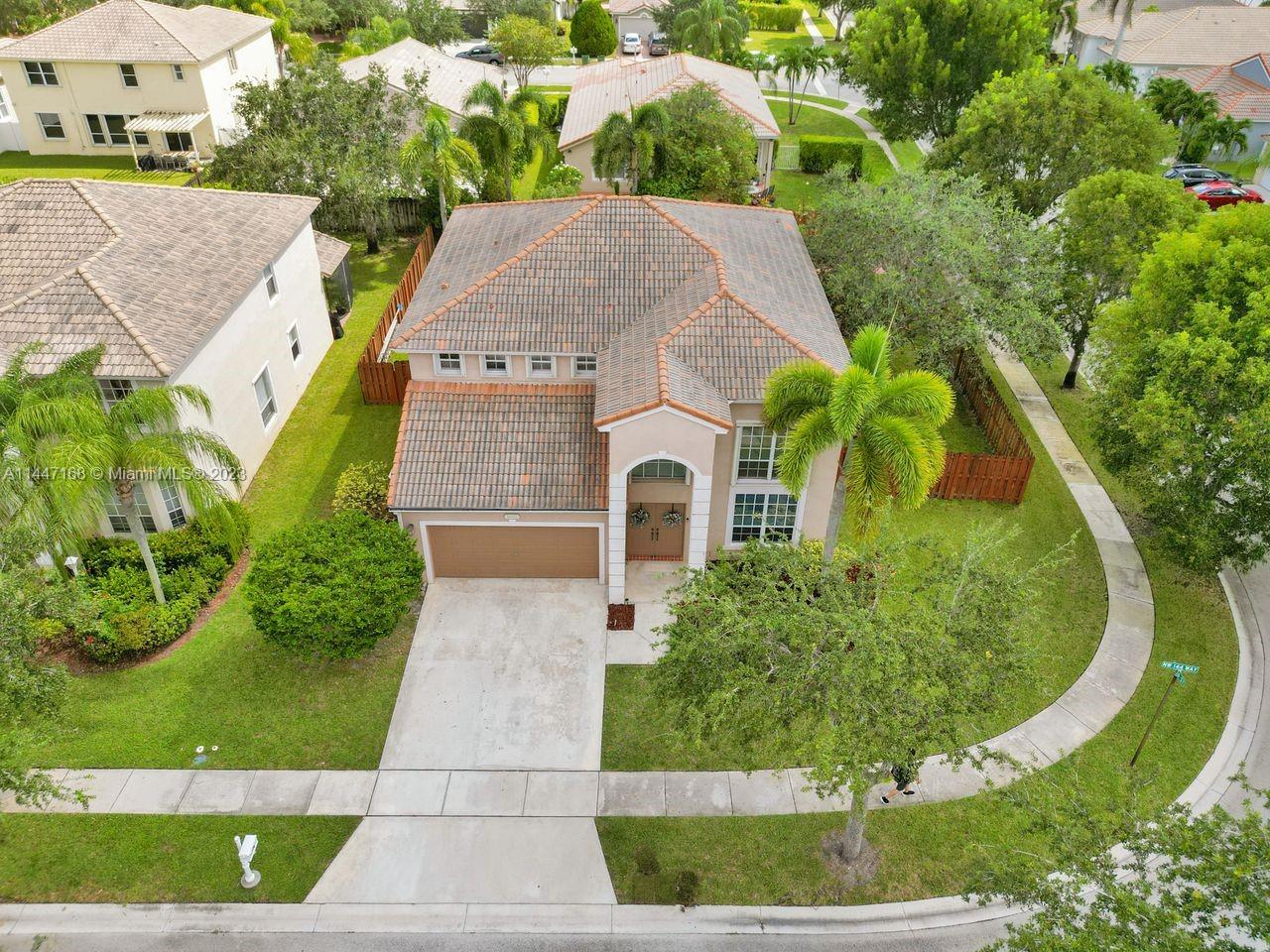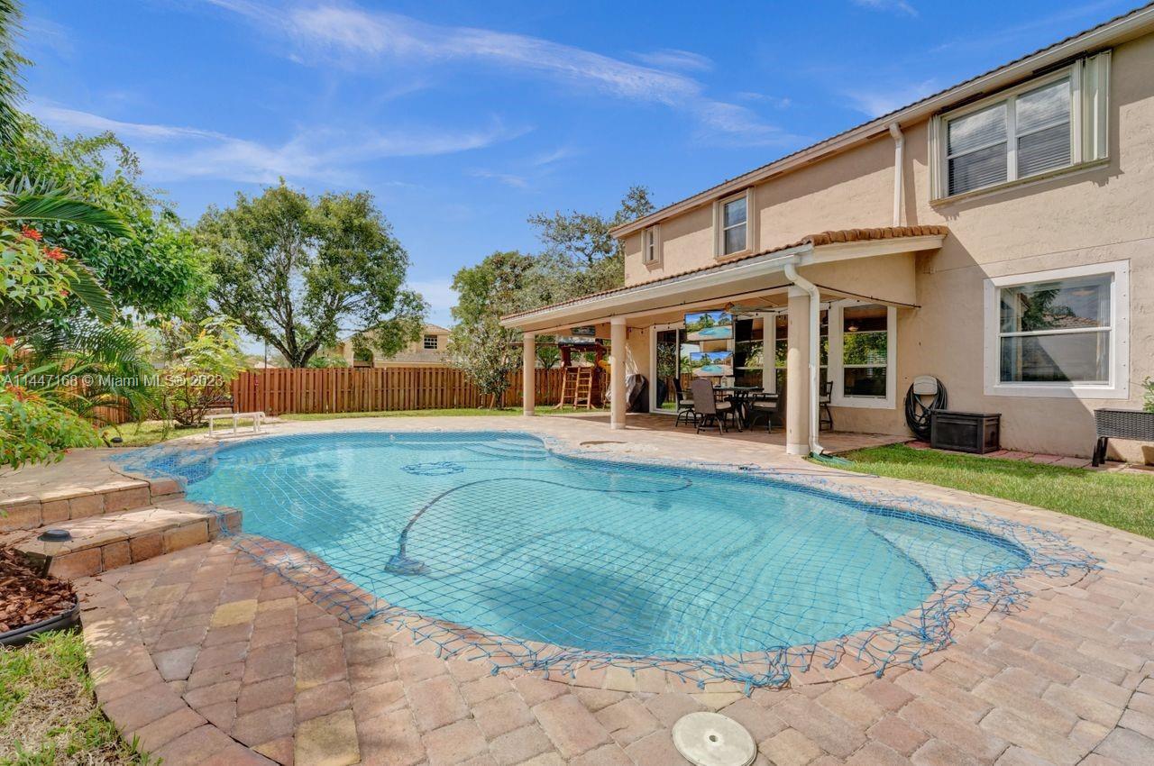 Corner lot paradise! Welcome home to this 2-story, 4BR/3BA pool home. Plenty of room for kids & pets to play. Renovated kitchen w/2022 appliances, quartz counters, new lights, white cabinets & prep island. Room to entertain indoor or outdoor. Step inside: vaulted ceilings, large formal dining area & living area. Natural gas stove, grill, & water heater. 2022 AC. Large master suite w/dual sinks, roman tub, separate shower & vanity area. Jack & Jill bath new dual sink vanity & lighting with tub/shower. 1st floor guest suite w/new vanity & lighting. Laundry room w/new cabinets, sink & washer/dryer. Outdoor features: fenced-in yard, fire pit area, covered porch w/fan & TV hookup. Pool has new pump, motor, vacuum & safety net. Gated community. Amenities incl. pool, clubhouse & tennis courts.