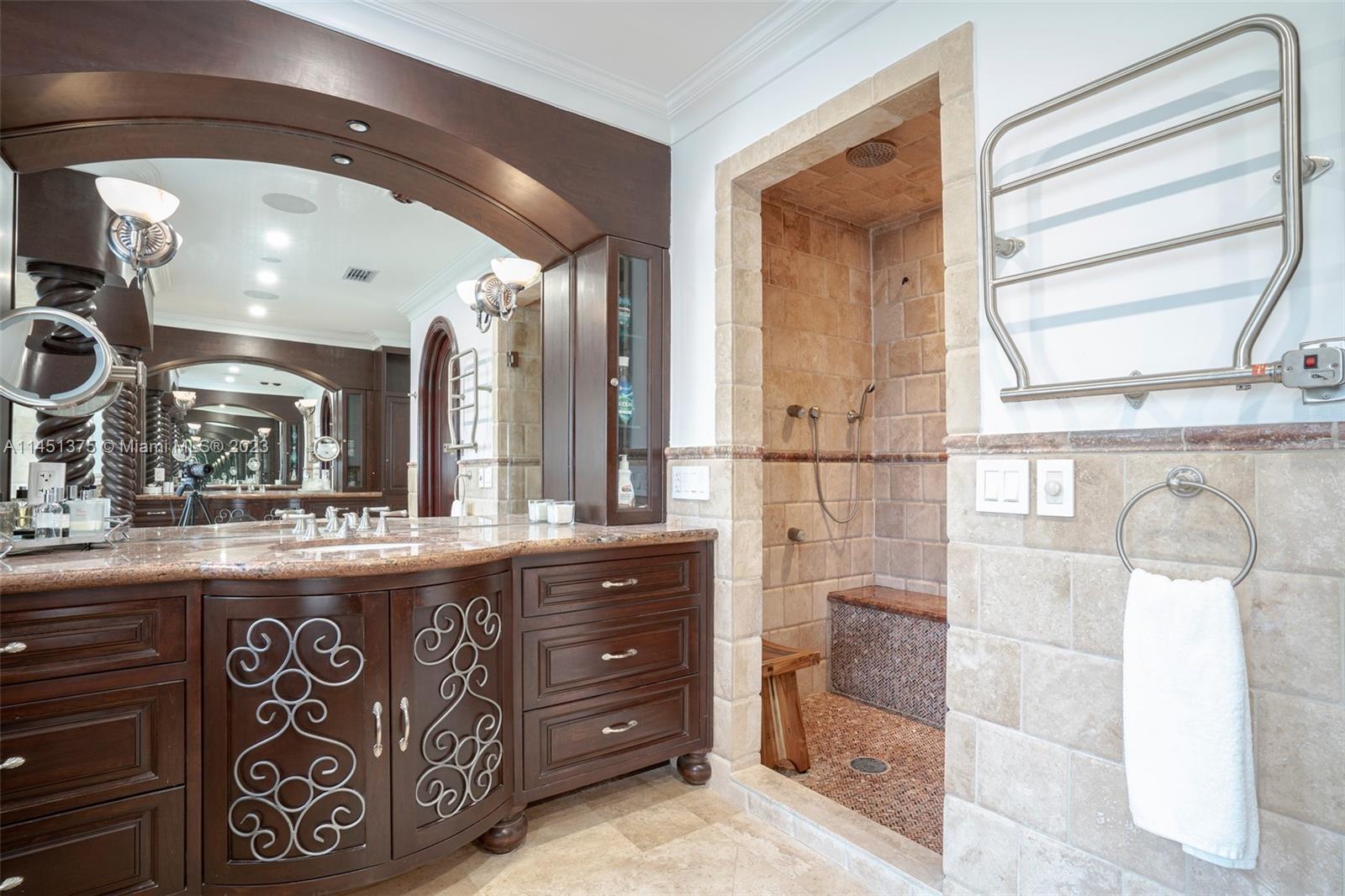 Welcome to your One-Story Mediterranean Tropical Retreat in the heart of Coral Gables! As soon as you enter the gates to this estate, you're greeted with a spacious and private front yard with beautiful Oak Trees. The perfect place to relax on your front porch and enjoy the view of your mature landscaping. The 5,087 SF estate features 5 ensuite bedrooms w/ oversized formal dining room, updated kitchen w/ breakfast nook overlooking the pool, & family room w/ telescopic doors that lead to your pool - this is the PERFECT home to entertain. Impressive primary suite with seating area / den, large custom built closet & elegant bathroom. Sonos speakers, electric blinds, & cameras throughout the home. Brand New Roof. Close to Riviera & Biltmore Golf Course.