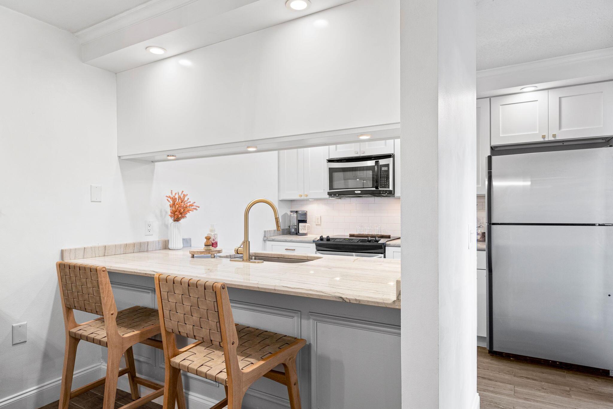 Welcome to 203 Second Way! This charming home offers a blend of style and functionality that will captivate you from the moment you step inside. With seamless tile and laminate flooring throughout, this residence exudes a modern and easy-to-maintain appeal. The heart of this home is its updated kitchen featuring soft-close cabinets that combine both practicality and elegance. You'll love the beautiful granite countertops, soft close cabinetry, recessed lighting, subway tile backsplash and brand new LG refrigerator. This townhome offers well appointed bedrooms with a lot of storage. The primary bedroom boasts a large walk-in closet and large en-suite. The second bedroom offers a large closet and beautifully updated bathroom.