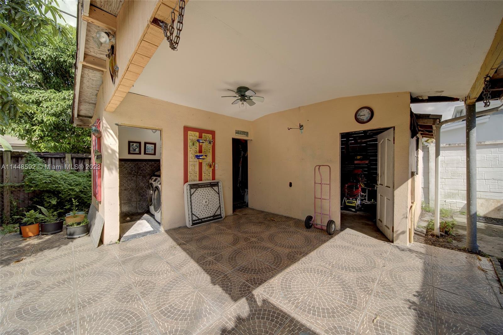 Centrally-located gem in Hialeah. This 3-Bd/2-Ba home welcomes you with tastefully-designed landscaping creating a serene and inviting atmosphere and ample parking for multiple vehicles and even your boat. Covered carport serves as a versatile space, ideal for carpentry work, hobbies, or additional covered parking. For added convenience, a separate storage building houses a laundry room and tools, ensuring your home stays organized and clutter-free. Impact windows and doors throughout for added safety and insurance discount. The kitchen has been thoughtfully remodeled, featuring sleek granite countertops, offering both style and functionality. Visit YouTube or Zillow for video.