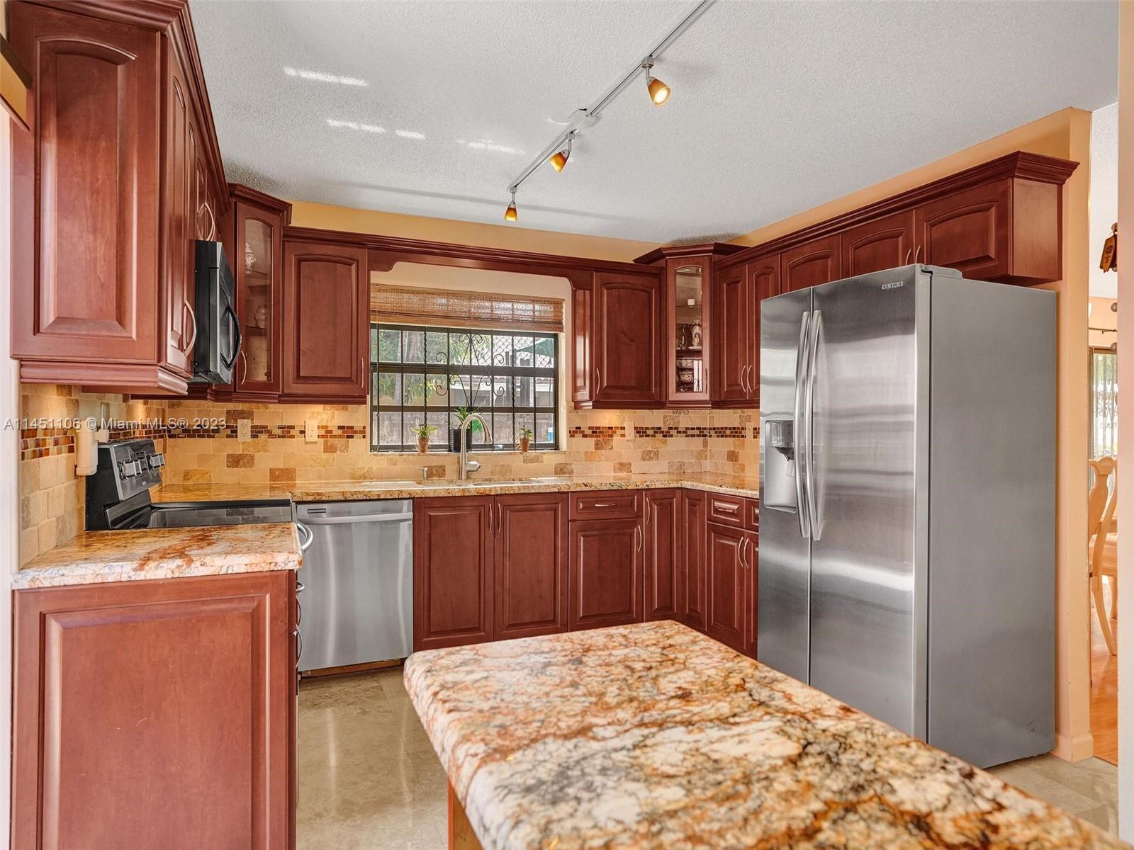 Original homeowners lovingly maintained and updated this 4-bedroom, 2-bathroom plus family room residence nestled in the charming community of Country Lake Manors. The spacious kitchen boasts elegant granite countertops, rich cherry wood cabinetry, stainless steel appliances, countertop seating, while the generously proportioned living, dining and entry areas showcase flawless maple laminate flooring. Situated on a spacious lot, the backyard is designed to provide the perfect setting for both entertaining and relaxation. Country Lake Manors offers quick access to major transportation arteries such as the Florida Turnpike and the Palmetto Expressway. Nearby, you'll find a plethora of shopping centers, including Target and Walmart, as well as the community’s stunning lake and beautiful park.