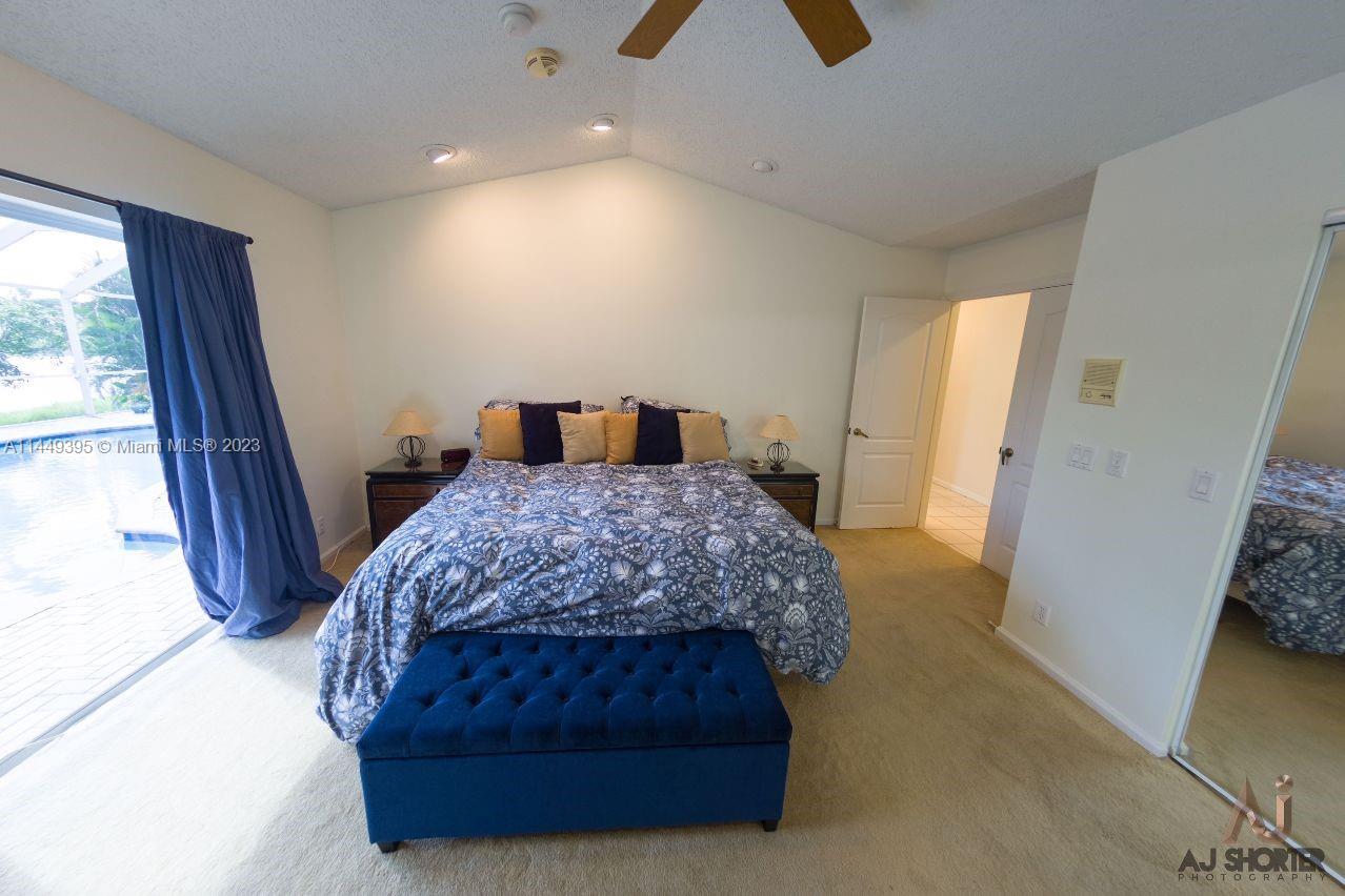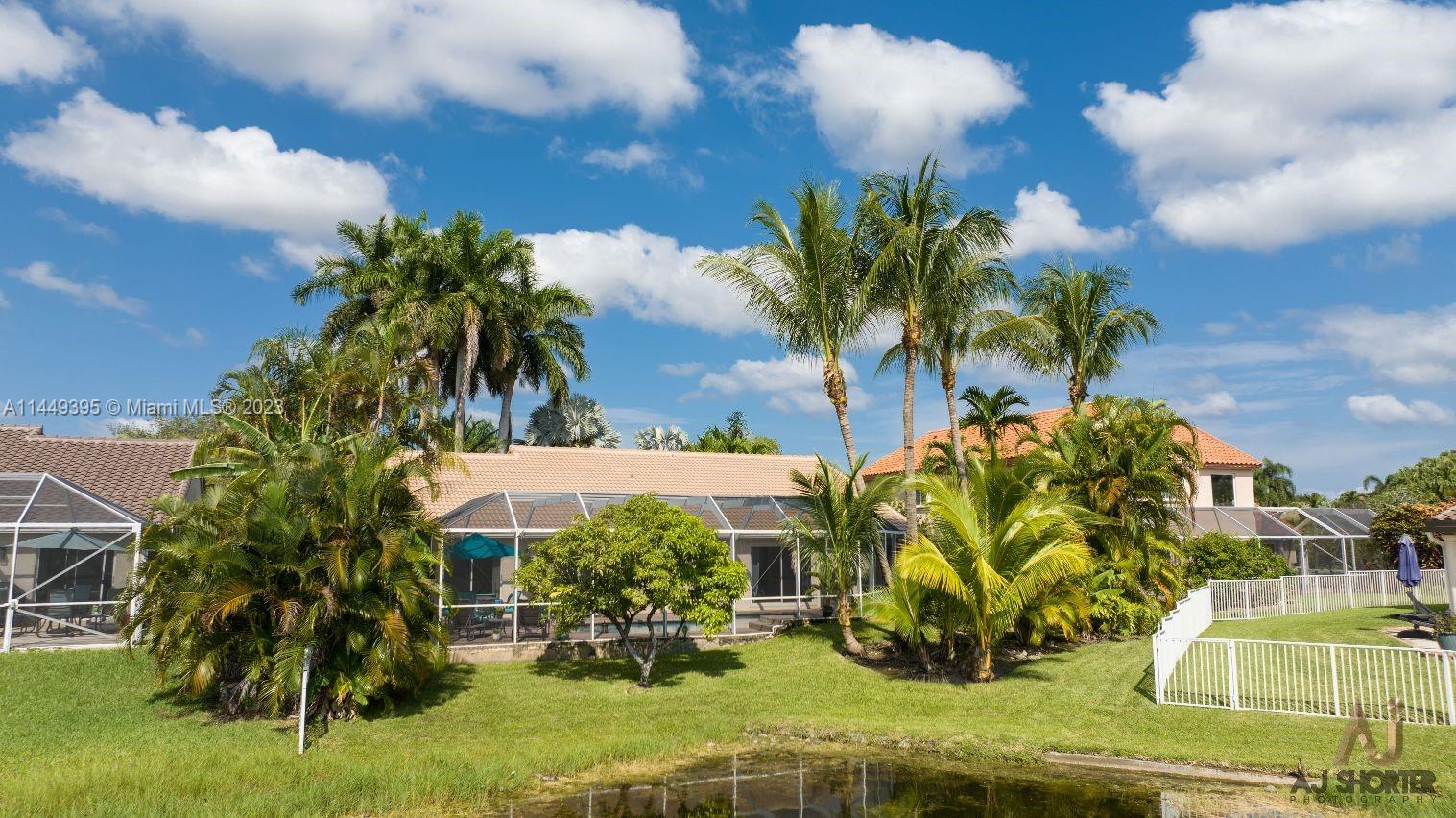 This stunning 4-bedroom, 2-bathroom home is located in the highly desired gated community of Chapel Trail Estate. Enjoy the 30 ft warm pool with a salt generator overlooking a tranquil waterfront. The home has vaulted ceilings, a spacious floorplan and floor to ceiling windows and doors allowing natural light and air flow throughout the home. The yard has several fruit trees and a lovely landscape. The home has a NEW Roof and a NEWLY installed Air Conditioning System! The garage is equipped with an electric car outlet and adapter and Hurricane shutters. Low Homeowners Association fees, $490 quarterly, which include cable & Internet. Don't miss this opportunity to own this GEM!!!