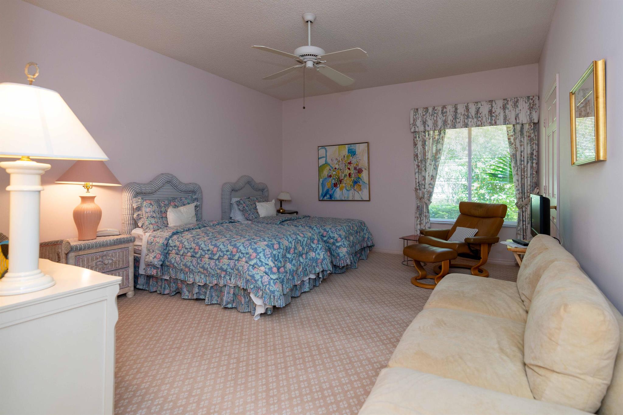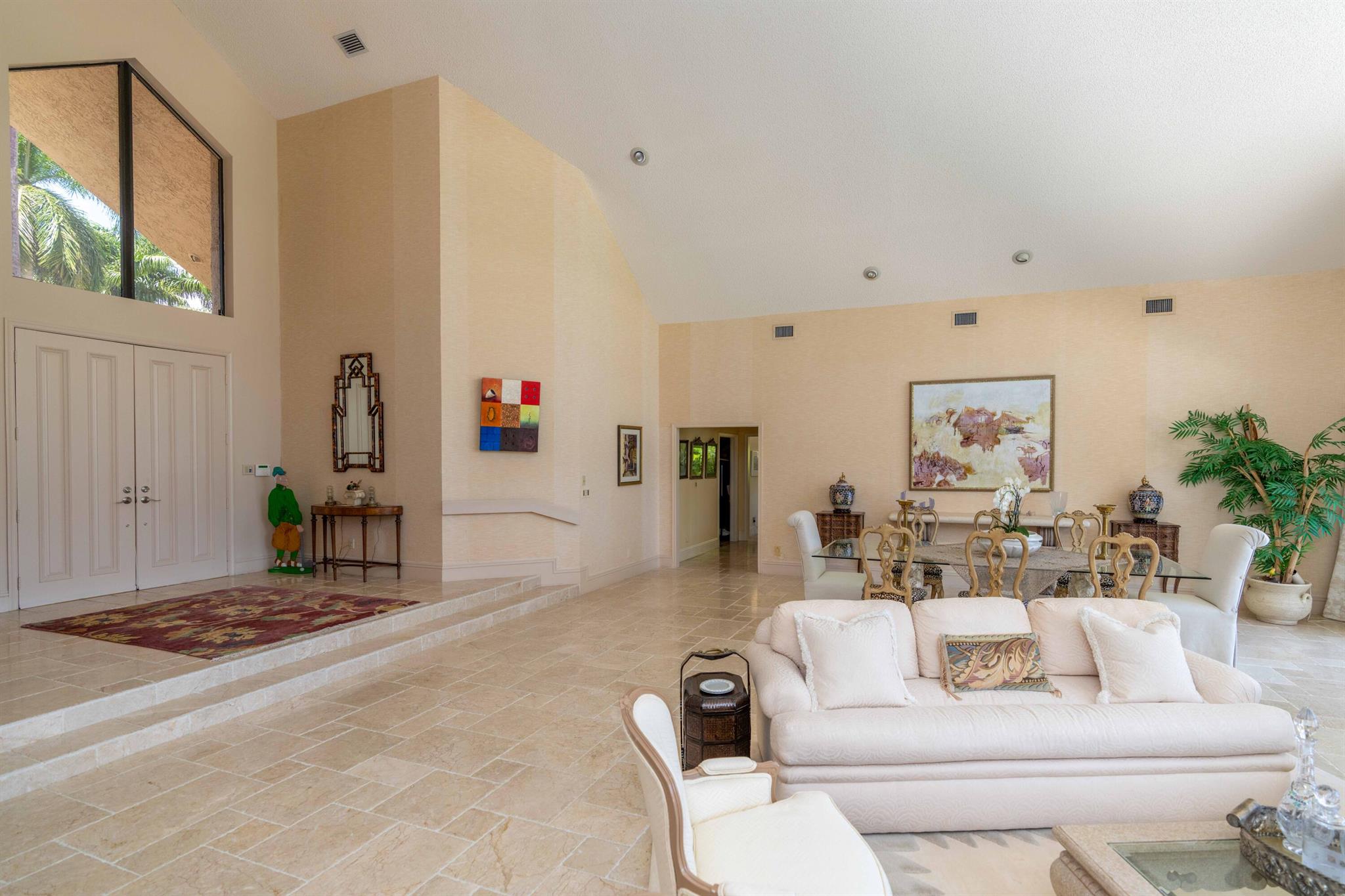 Country club living like no other. Home situated in a Parklike setting with lush landscaping on over a quarter acre lot with desirable, private and peaceful golf course views. This 3 bedroom with office/ bedroom and 4.5 baths. This spectacular home features an open & spacious floor plan boasting volume ceilings and closets galore. The kitchen is outfitted with double wall oven, stainless steel refrigerator, gas stove, & island that opens to the breakfast area. No expenses spared in the main floor primary suite & bath decorative tile, private double door glass entry leading to oversized step down stall shower and jacuzzi tub, his and her vanities and water closets.Fees attached