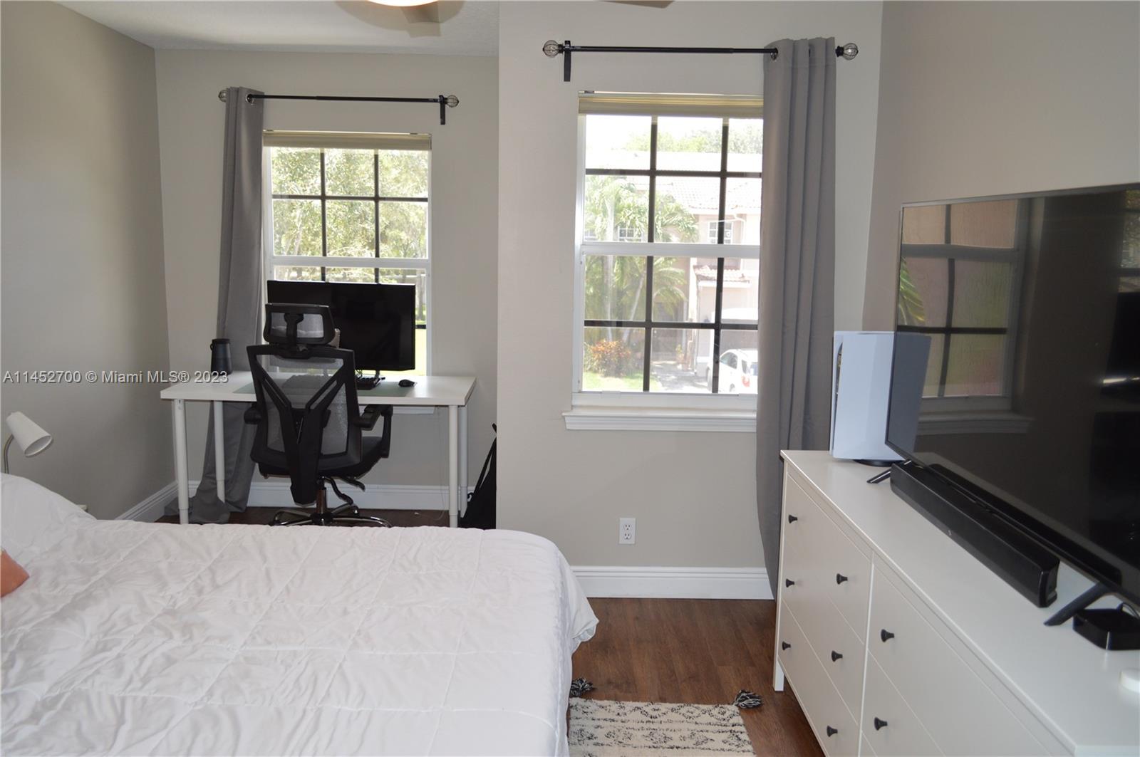Modern corner unit Townhouse with all high-end finishes. Kitchen is updated and has been opened up to add extra lighting and give off expanded feel. The countertops, appliances, and hardware are almost new. Master Bathroom is stunning. Enjoy the frameless shower doors, custom tile work, and modern dual vanity. Floors changed out upstairs giving the second level that wood feel. Secondary bathroom also has a classy vanity. Neutral Tile throughout downstairs. Washer and dryer are almost new. The 50-gallon water heater is almost new. Windows were tinted to keeps house cool and reduces energy bill and doesn’t take away from natural lighting. Outdoor patio for grilling and family gatherings. Driveway two car. Community pool. Model condition.