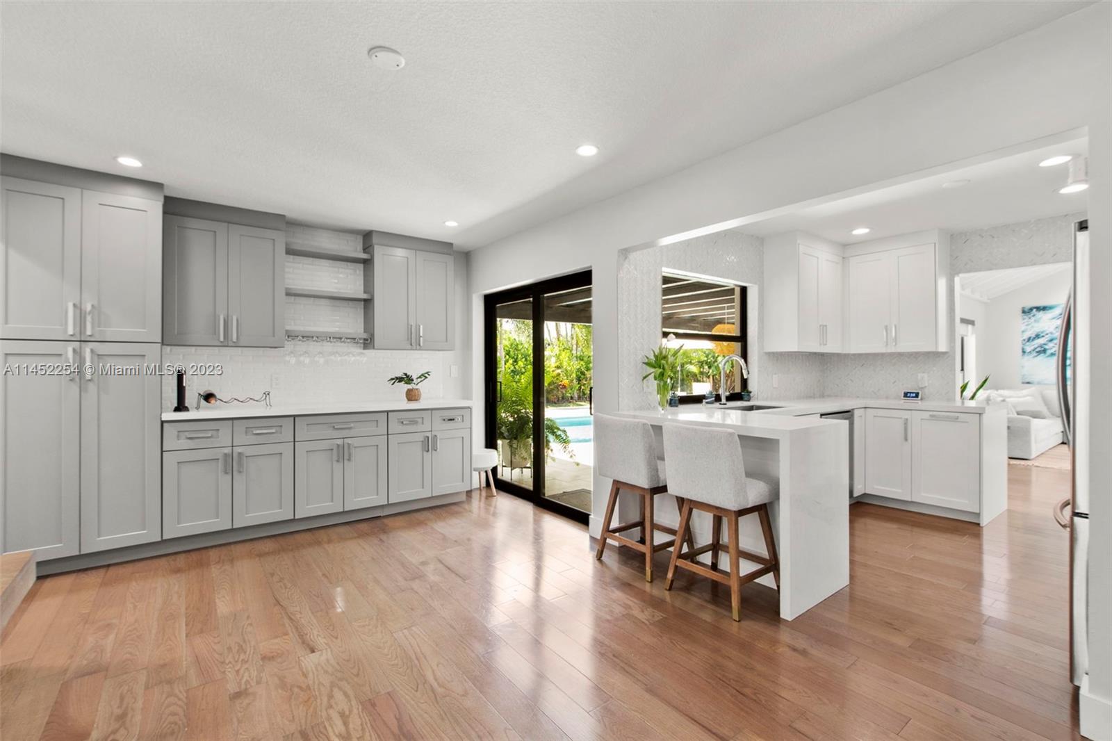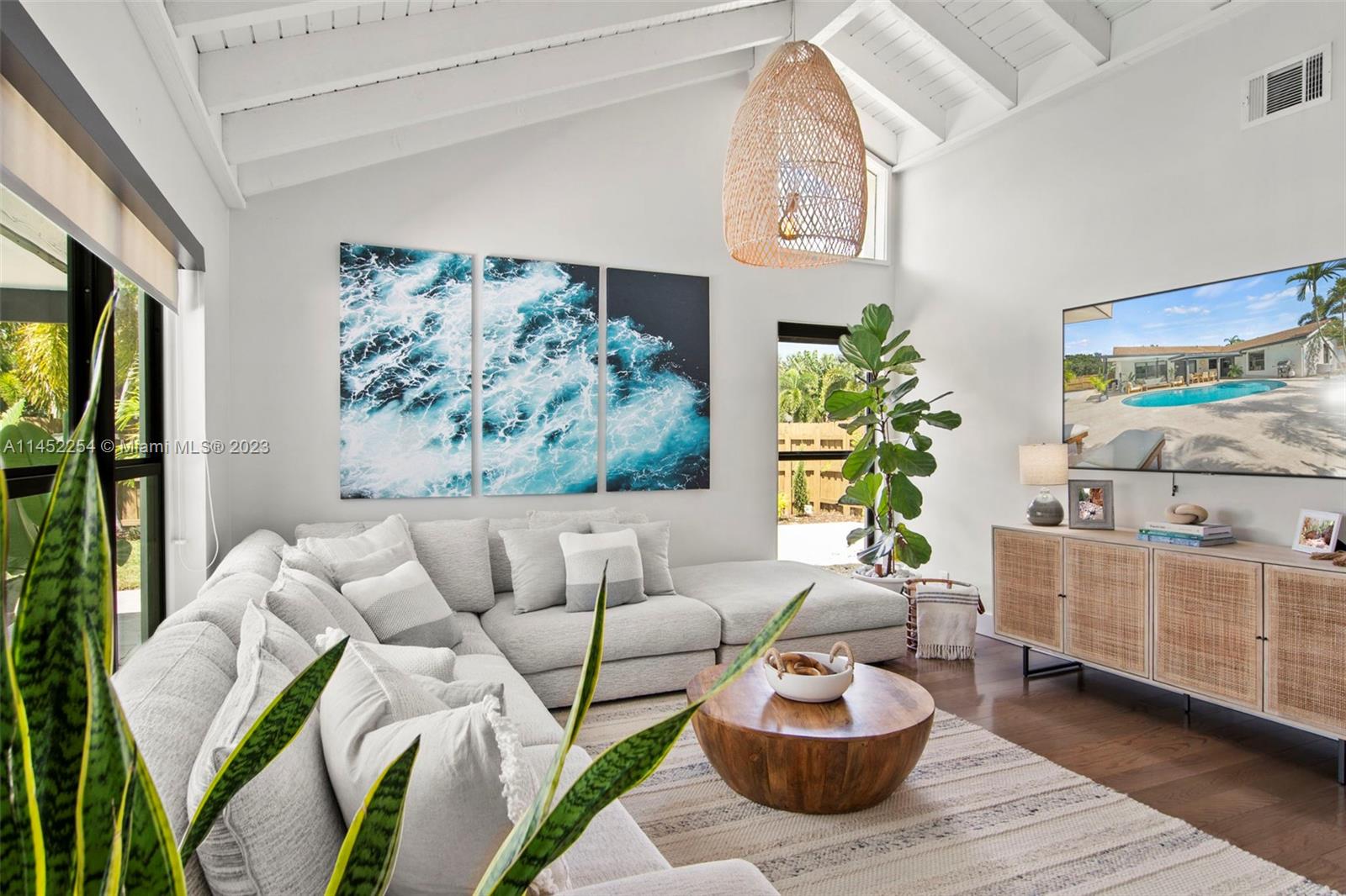 Beautiful & Completely Renovated 3 Bed 2.5 Bath Corner Lot Home In Prestigious Palm Aire. Vaulted Exposed Beam Ceilings Featuring A Large Open Split Floorplan W/ Living, Dining & Family Room. Impact Windows, Doors. All Exterior Walls Recently Smoothed, Refinished & Painted. Upgraded Custom Kitchen Has Quartz Large Waterfall Countertops W/ Storage, Stainless Steel Appliances, Pull Out Pantry & White Shaker Cabinets. Built-In Bar & Additional Cabinets In The Formal Dining. New Ceiling Fans & Lighting Throughout. Primary Suite W/ California Closets, Large Bathroom W/ Dual Sink Vanity & Shower. Fully Fenced In Backyard With Lush Landscaping, Low Voltage Lighting, Travertine Deck And Heated Salt System Pool W/ Color Changing Lights. Private Concrete Pad For RV Or Boat Parking. No HOA!