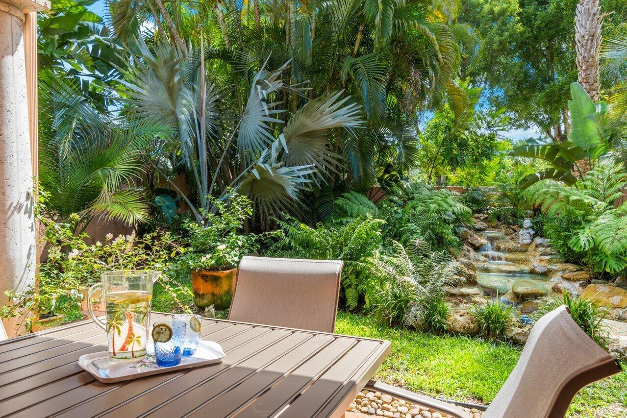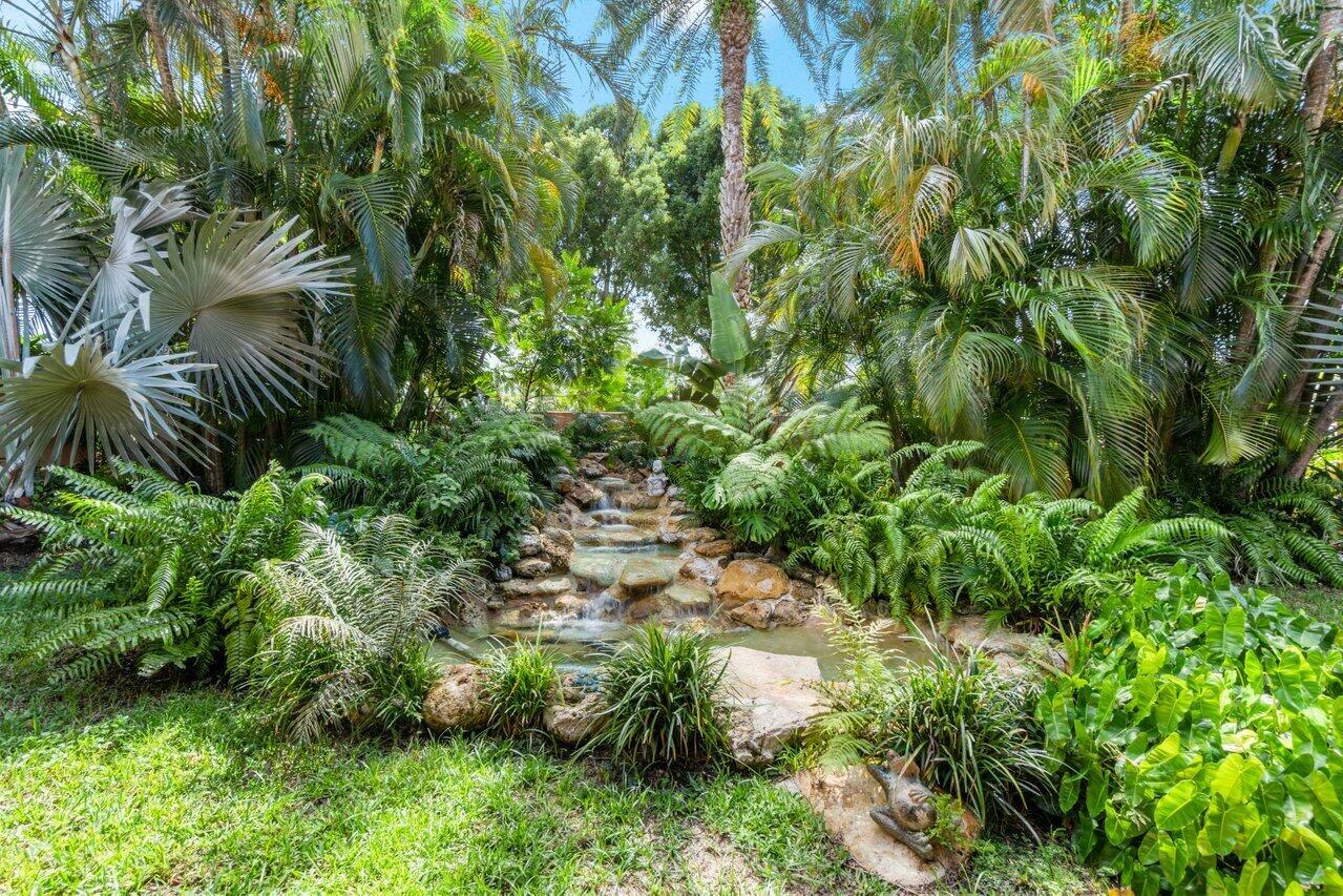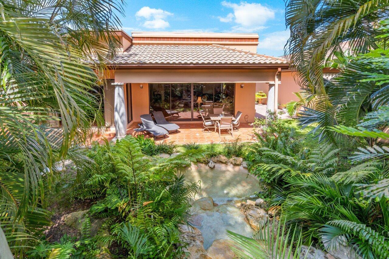Step into this Mediterranean courtyard paradise, where tropical gardens embrace every corner of this enchanting home. Approach through a set of iron gates & you're already transformed. Inside, you'll discover a warm & inviting ambiance w/ 12-14 ft ceilings, walls of sliders & high windows, filling the space w/ natural light. The backyard sanctuary is as inviting as the interior, w/ a cascading waterfall at its heart. Features include a grand double-door entry, raised doorways; adding a touch of elegance, LED recessed lighting, crown molding, custom sound system, custom pantry closet in the kitchen, 2022 A/C & 2020 ROOF. Freshly painted. This beautifully maintained home, with its Mediterranean charm & easy indoor/outdoor living, is undeniably a timeless forever home.