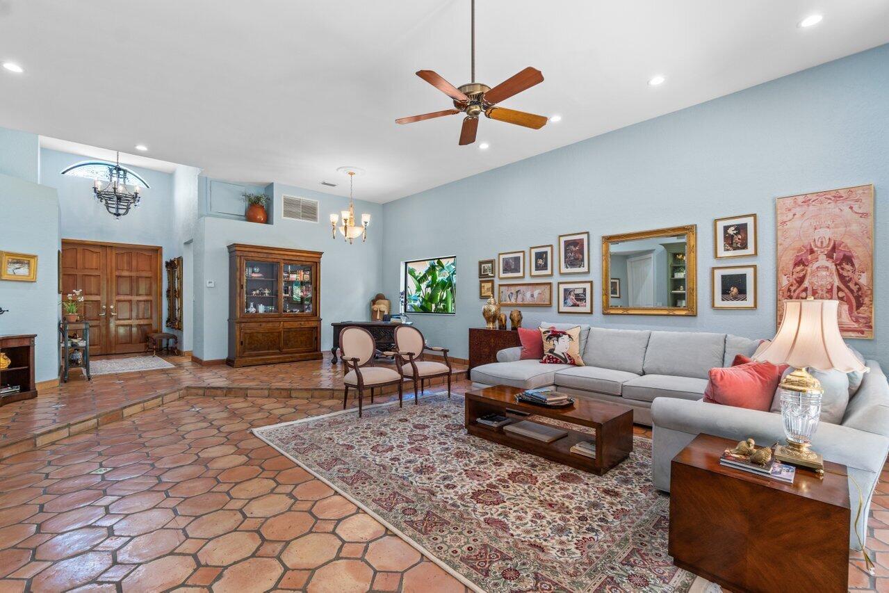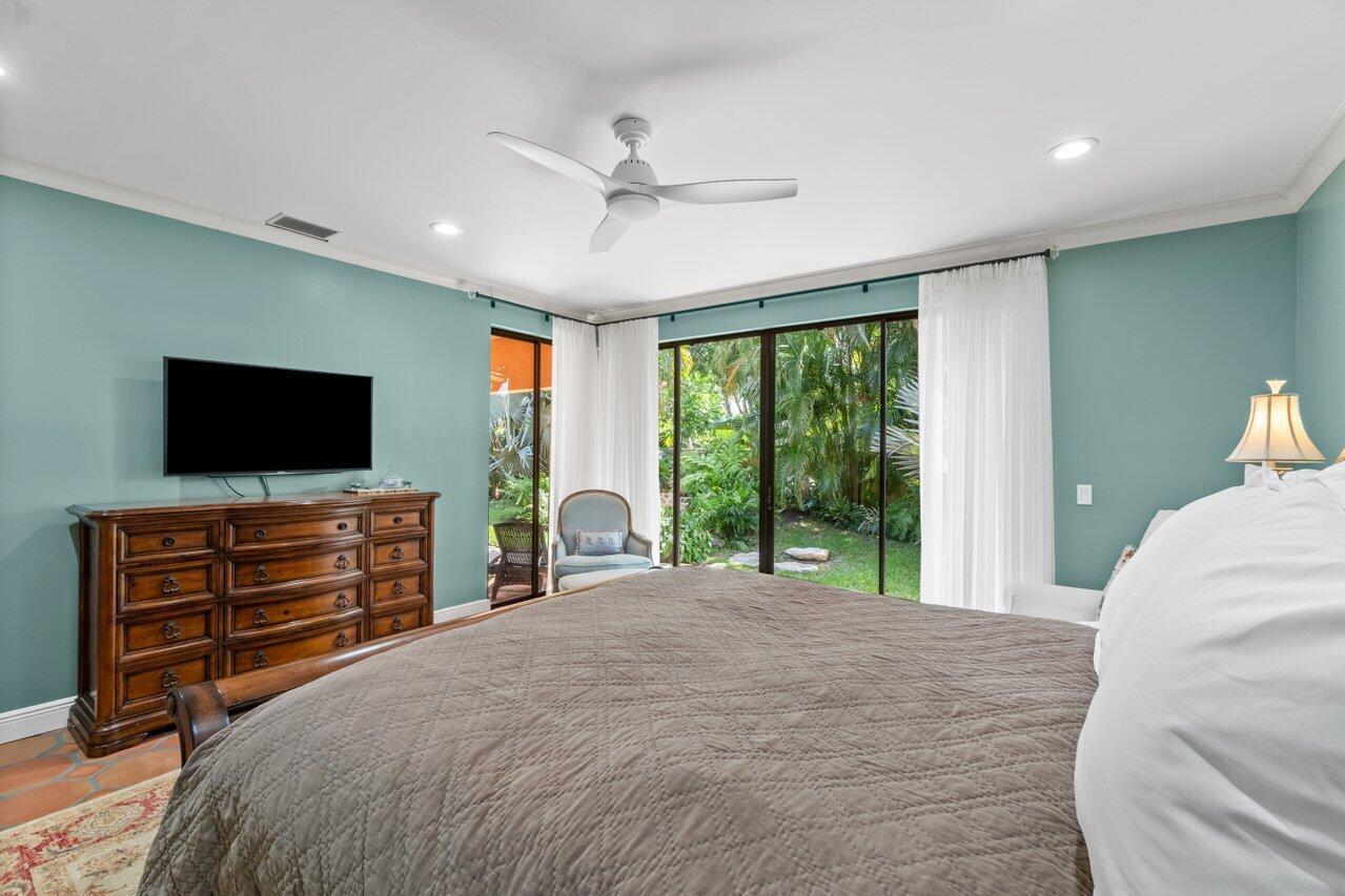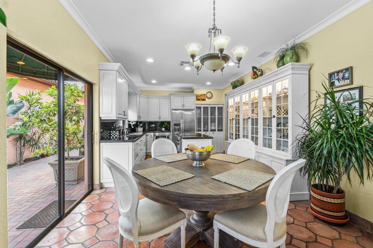 Step into this Mediterranean courtyard paradise, where tropical gardens embrace every corner of this enchanting home. Approach through a set of iron gates & you're already transformed. Inside, you'll discover a warm & inviting ambiance w/ 12-14 ft ceilings, walls of sliders & high windows, filling the space w/ natural light. The backyard sanctuary is as inviting as the interior, w/ a cascading waterfall at its heart. Features include a grand double-door entry, raised doorways; adding a touch of elegance, LED recessed lighting, crown molding, custom sound system, custom pantry closet in the kitchen, 2022 A/C & 2020 ROOF. Freshly painted. This beautifully maintained home, with its Mediterranean charm & easy indoor/outdoor living, is undeniably a timeless forever home.