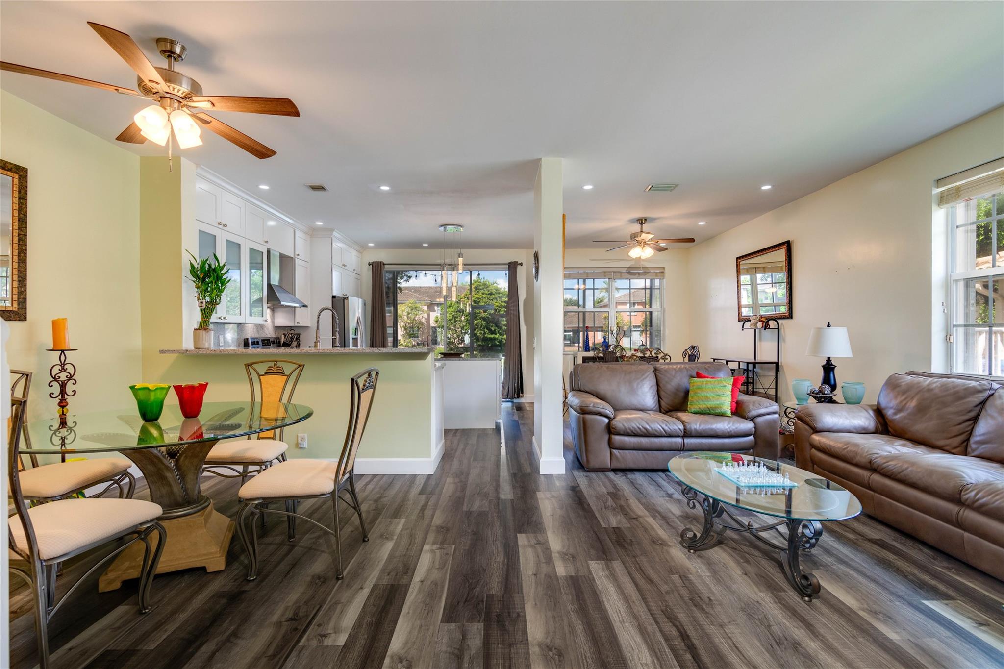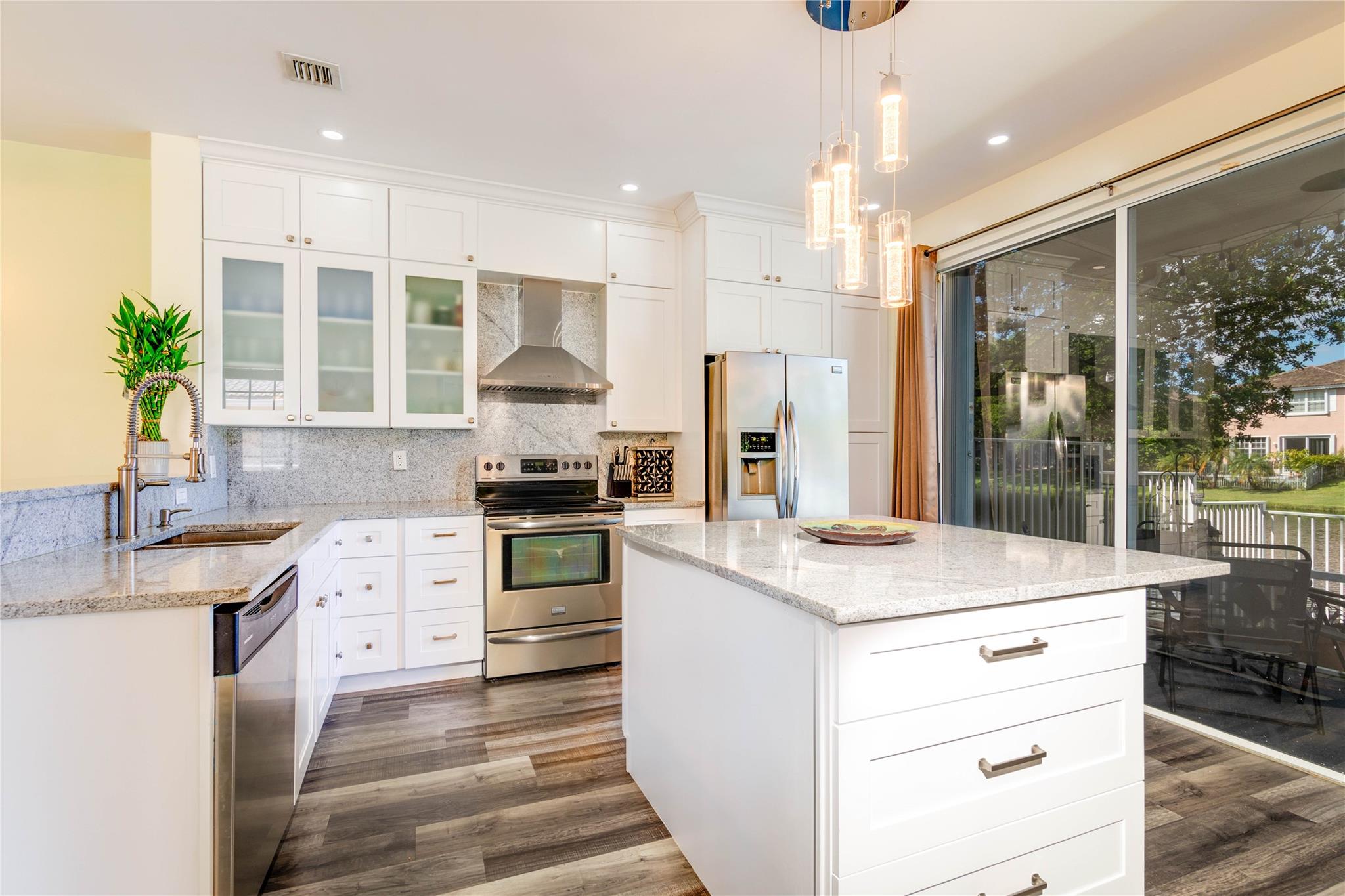 Wonderful lifestyle. Incredible Updated, Upgraded Waterfront home. Beautiful gated Lake Community with Pool, lovely landscaping and sidewalks. Your new home has 4 bedrooms 2.5 bathrooms, a garage, screened covered patio, fenced yard & tranquil water views. New Open kitchen with eat-at counter AND large island. High-end Cabinets w/rollouts, drawers and soft close, Quartz counters/full backsplash, Stainless Steel Appliances. Master Suite is large w/ upgraded ensuite Gorgeous bathroom. THREE other large bedrooms & beautiful bathroom. Updated Powder room, laundry room & under-stair storage. New electrical box, new recessed lighting, new electric, new locks & newly painted; Accordion shutters, 2-car driveway. HOA includes exterior & lawn/landscape care. Near restaurants, stores, schools, parks.