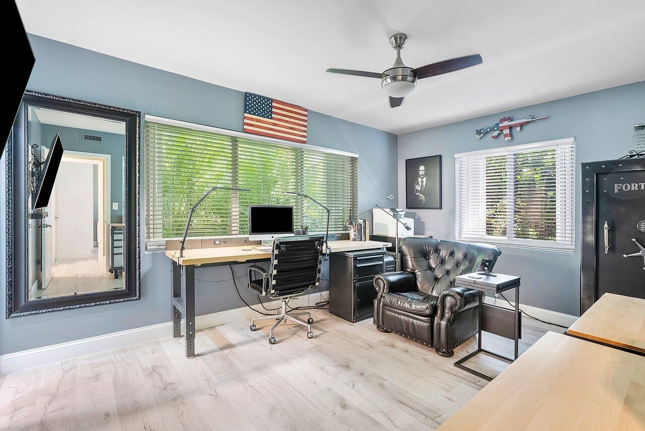 Extra large, corner lot with room for a pool, addition and/or enhanced tropical outdoor living. The options are endless.Renovated and well-maintained home with open living - dining - den. New kitchen appliances, new roof (2022), new water heater (2020), new sprinkler system (2023) and well-maintained central HVAC (2014) plus added HVAC split (2022). Full impact glass.Quiet, wide street with sidewalks and a neighborhood feel. Just a five minute walk to the intracoastal jogging trail and five minutes from I-95 for an easy commute North or South.